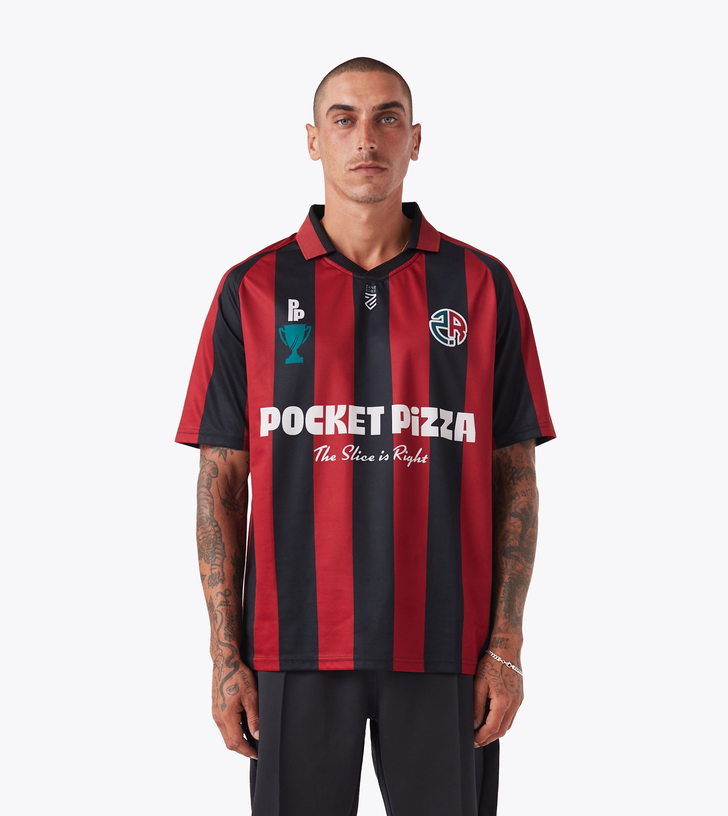 Sold outPocket Pizza Football Jersey Red StripePocket Pizza Football Jersey Red Stripe