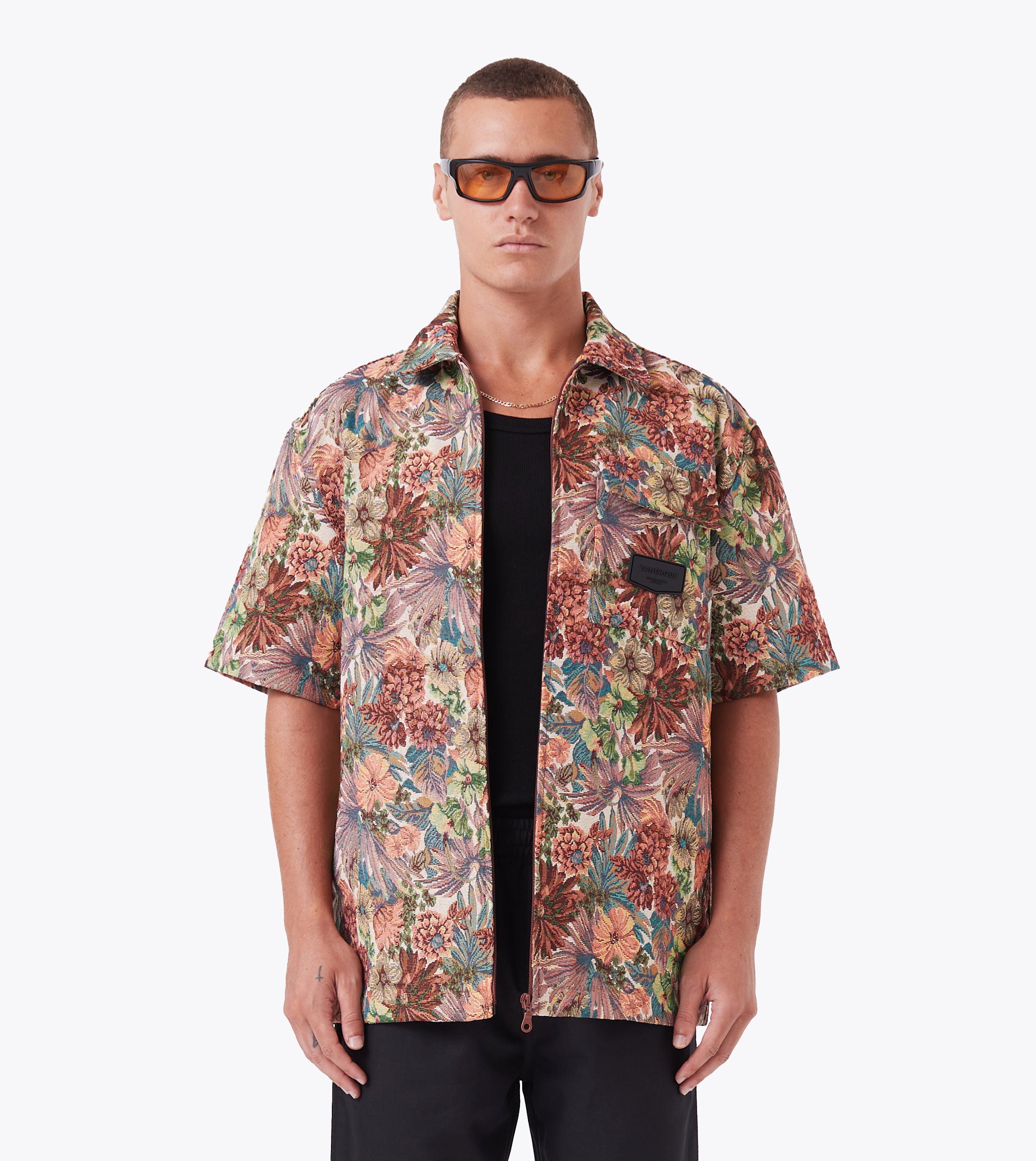 Sold outTapestry Boxy SS Overshirt Beige MultiTapestry Boxy SS Overshirt Beige Multi
