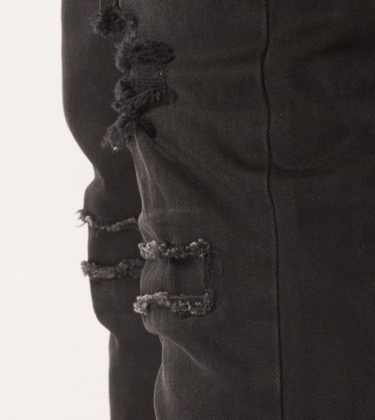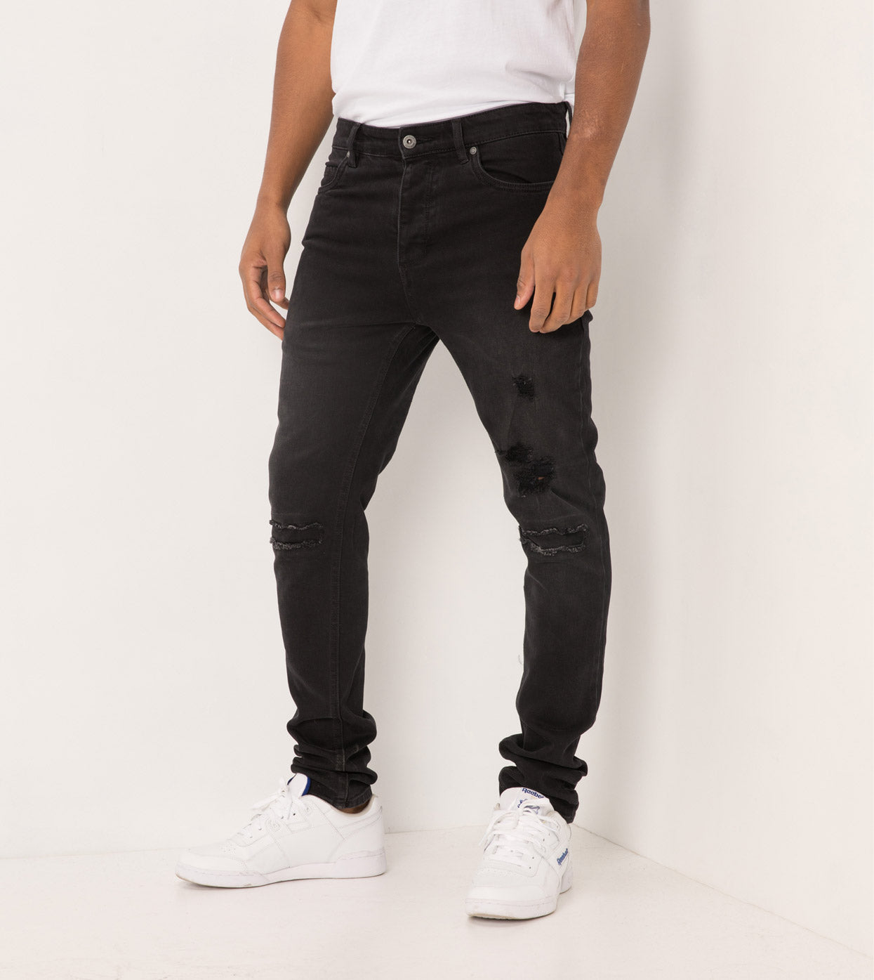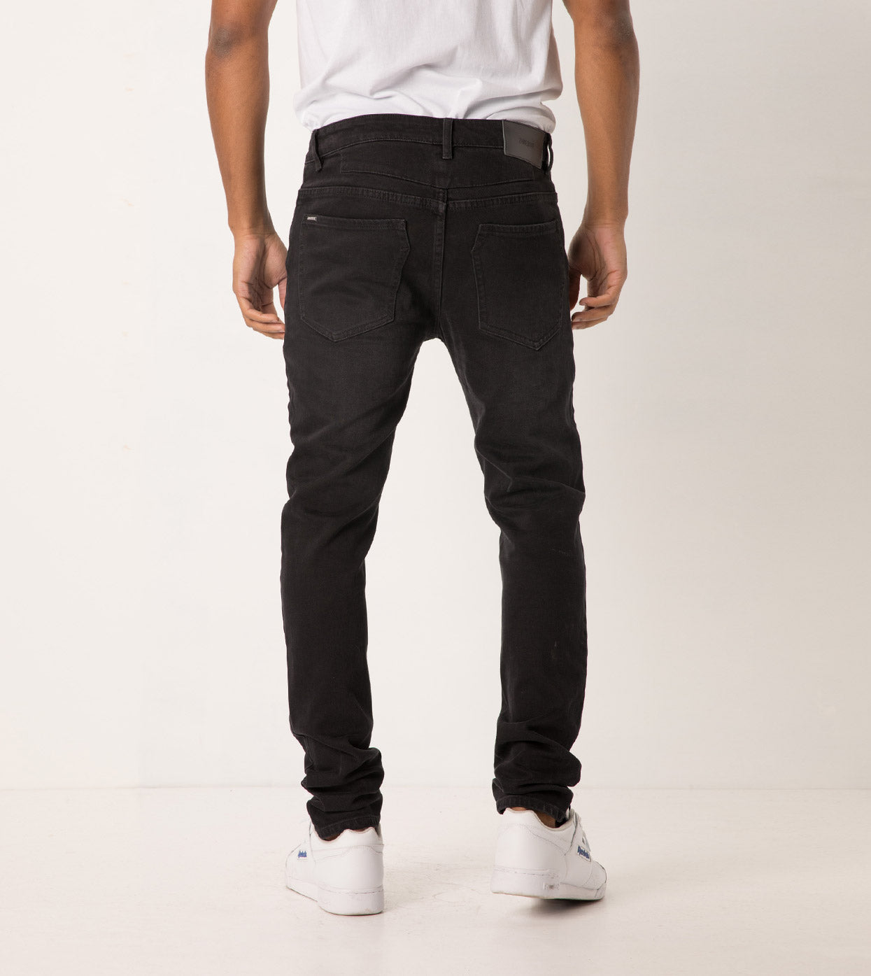 The ZANEROBE Joe Blow Denim in Archive Black Repair - ZANEROBE's signature Jean fit, classic 5-pocket construction, tailored straight fit, knee rips, regular rise and button fly. We wear with our classic Flintlock Tee.