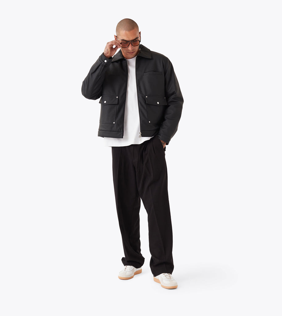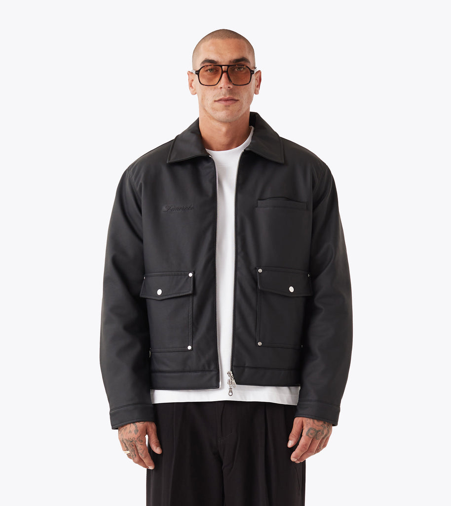 Faux Leather Aviator Jacket BlackFaux Leather Aviator Jacket Black