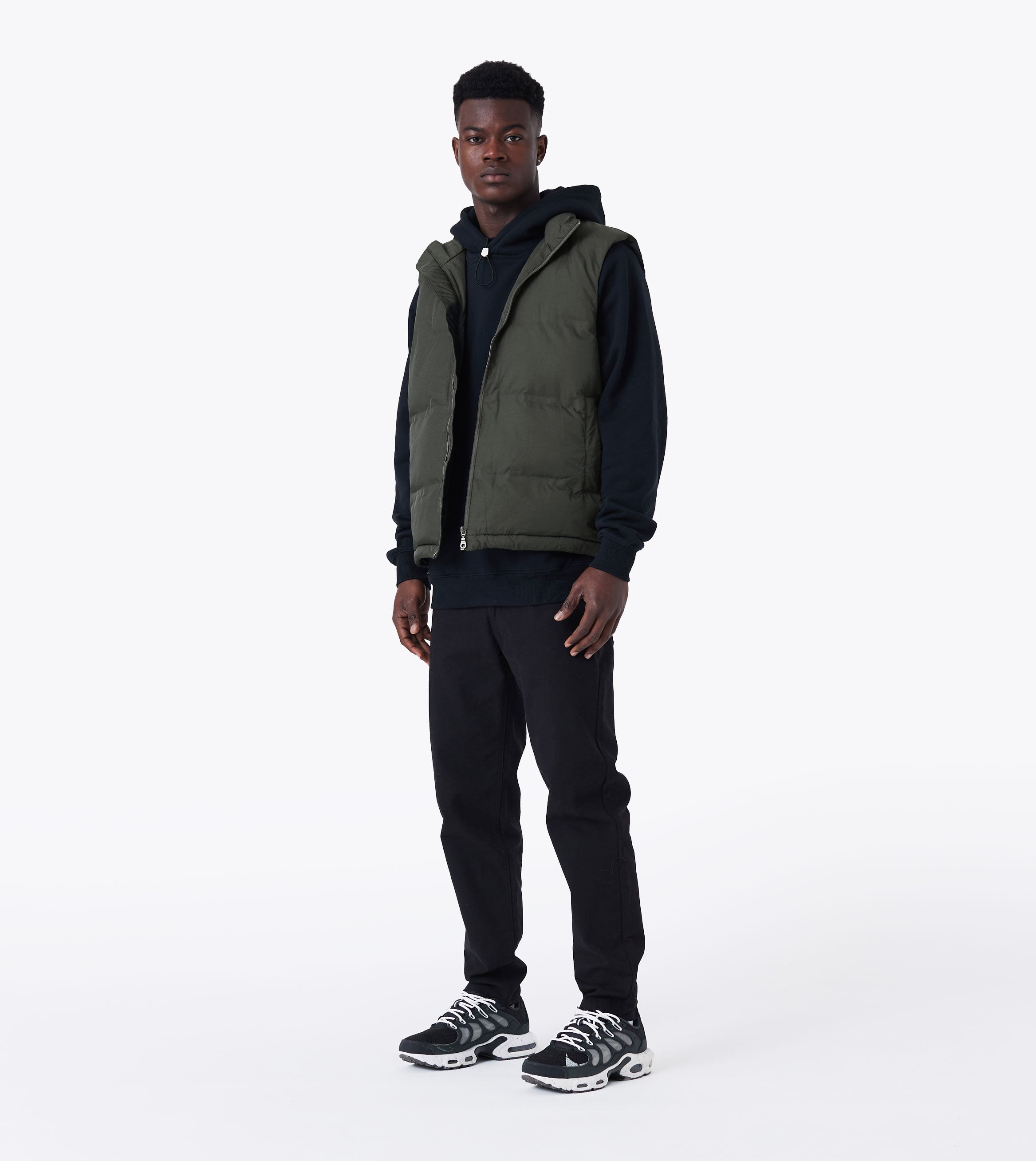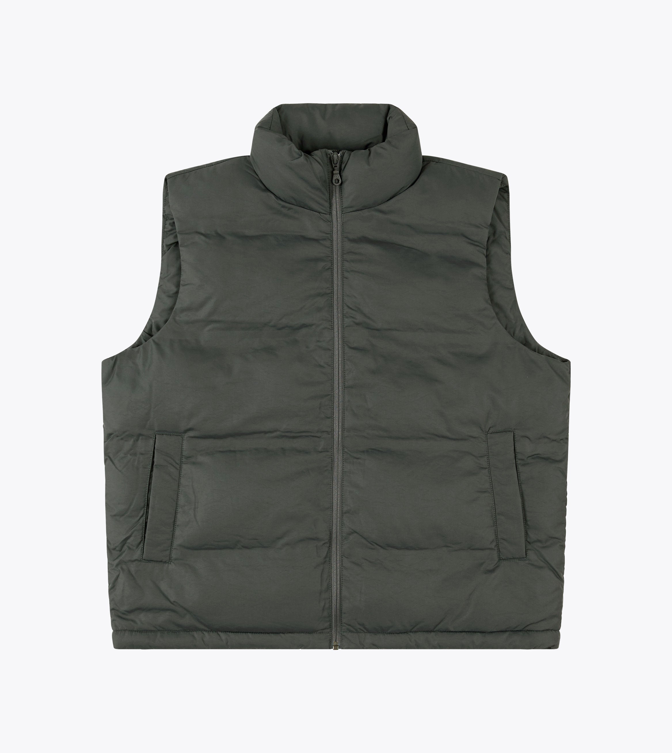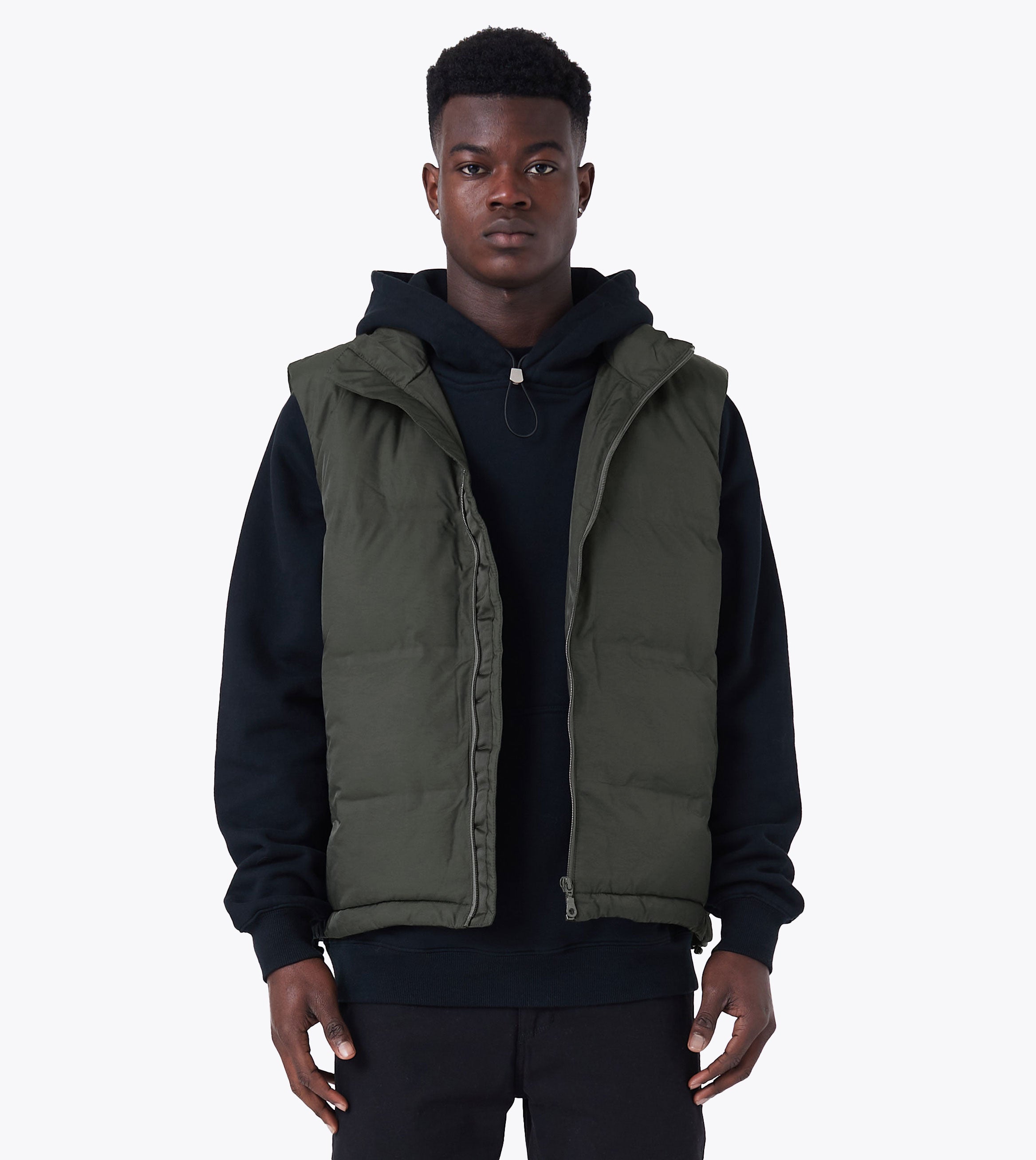 The ZANEROBE Powells Puffer Vest in Dk Army - Latest addition to our puffer program with luxe water resistant fabric. Layer with Lowgo Fleece, complete the look with our signature Sureshot Joggers.