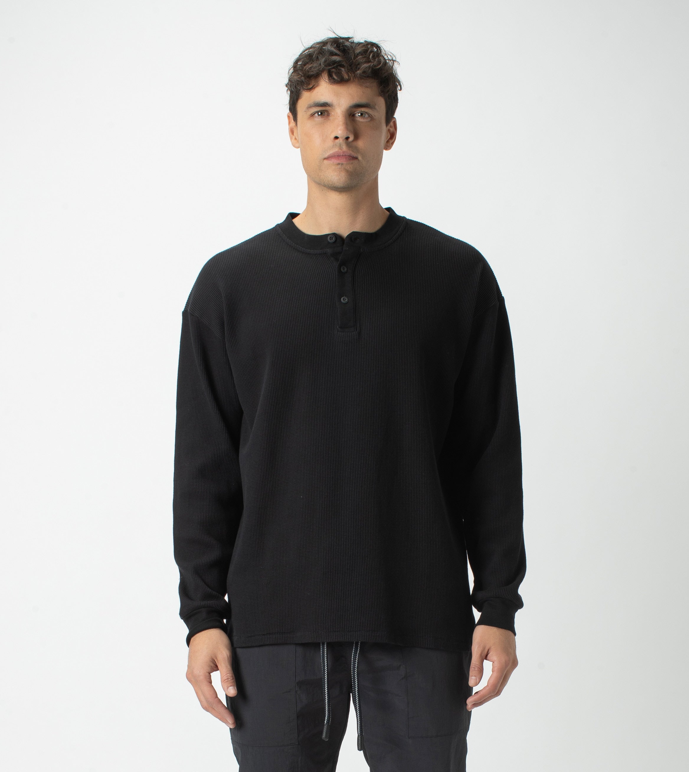 Sold outSave 69%Waffle Henley LS Tee BlackWaffle Henley LS Tee Black