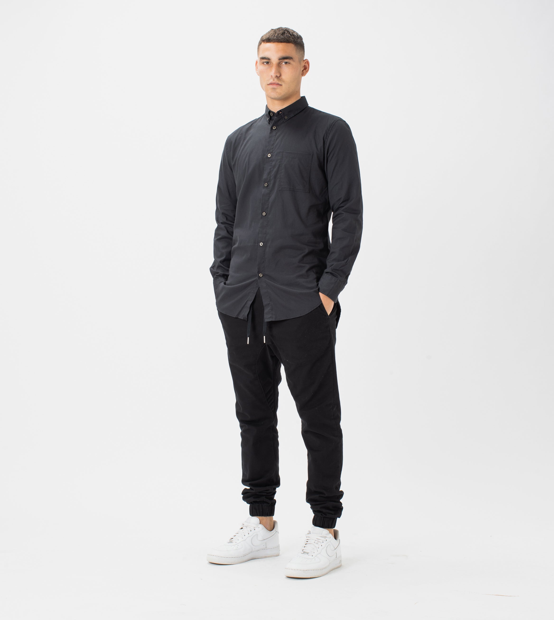 The ZANEROBE 7 Foot LS Oxford Shirt in Black - classically tailored we wear with our classic Snapshot Chinos