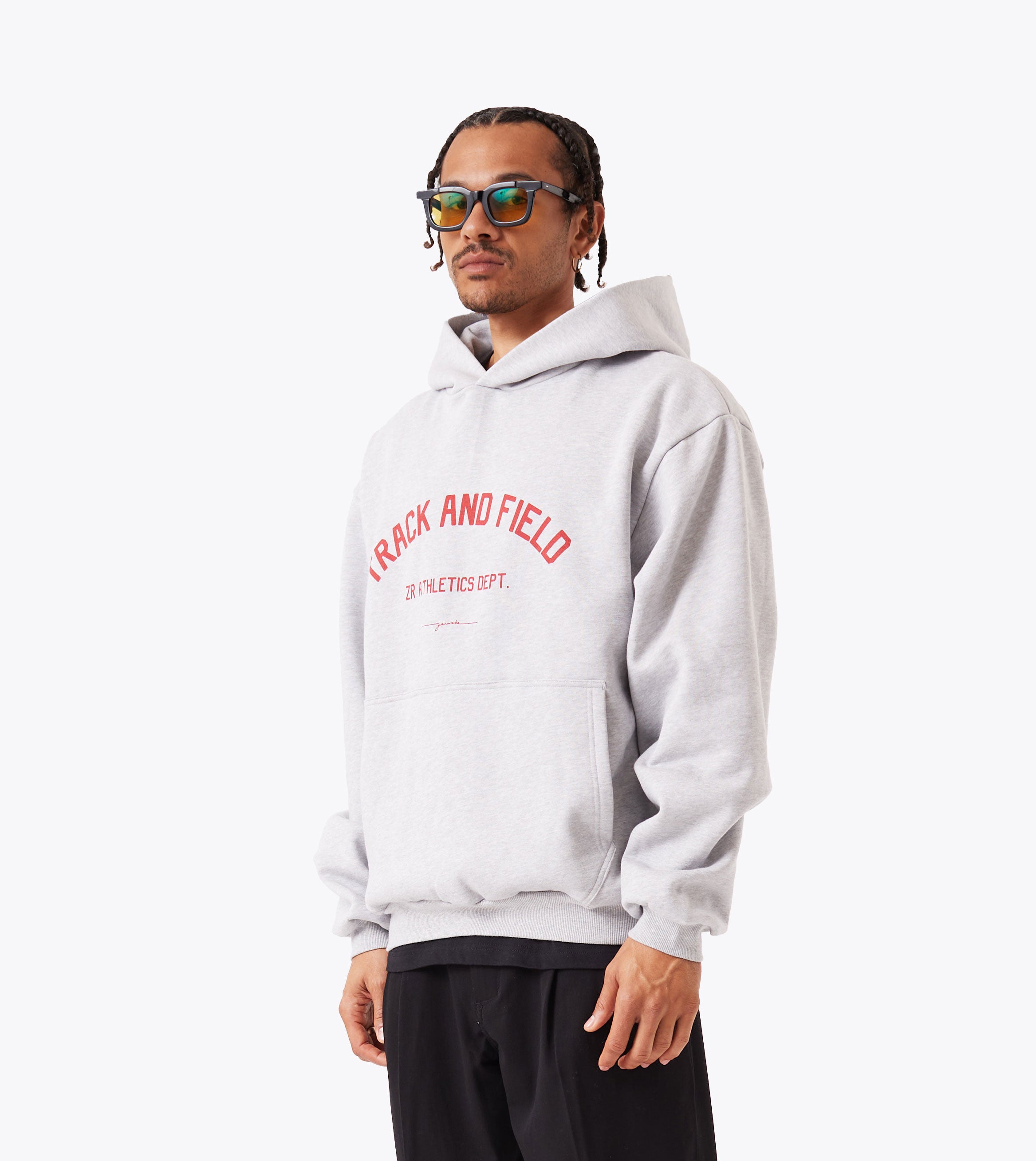 The ZANEROBE Ath. Box Hood in grey Marle is crafted from a durable heavy-weight 80% cotton, 20% polyester blend, designed to keep you comfortable and warm. Featuring a generously sized hood with clean, minimal detailing, this hoodie offers a modern, understated aesthetic. Its relaxed fit, paired with high-density ribbed cuffs and hem, ensures lasting comfort and structure. Finished with bold plastisol prints on the front and back and the signature 'X' stitch, this slightly cropped hooded sweater brings effortless style to your everyday look.