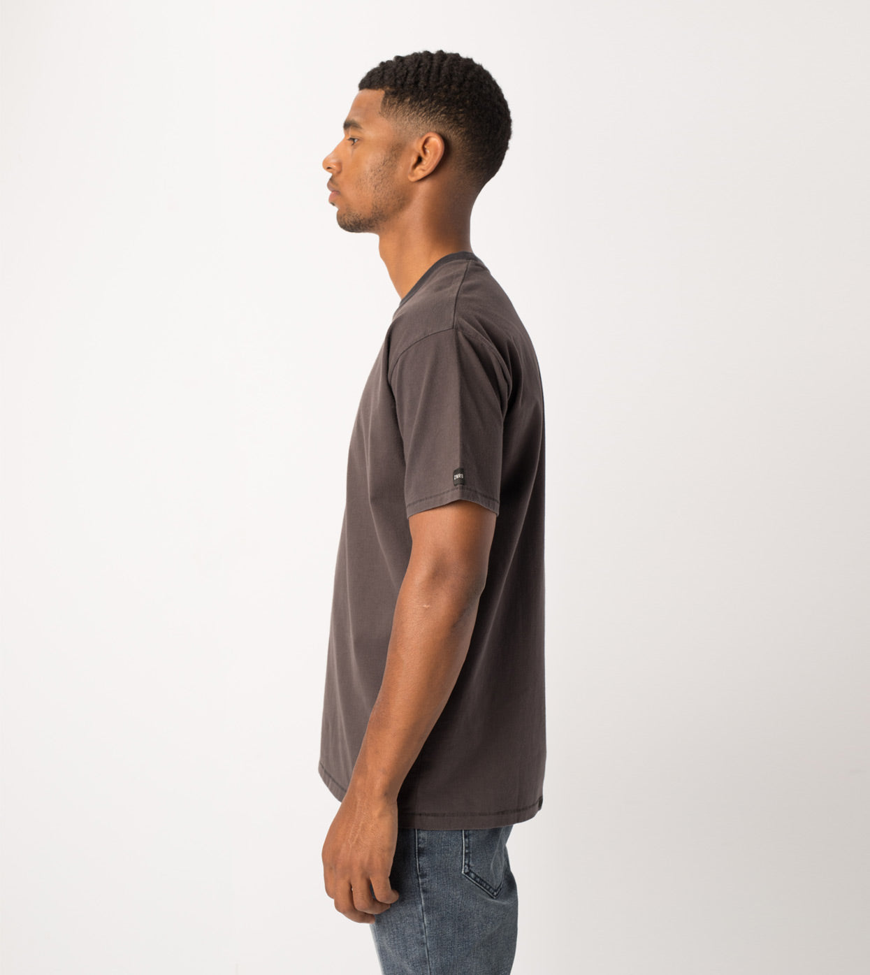The ZANEROBE Box Tee in Vintage Black - boxy fit, heavy-weight short sleeve tee featuring wider sleeves, standard length and a thick contrast neckline. Wear this tee with a pair of ZANEROBE Jeans or a classic pair of ZANEROBE Chinos.