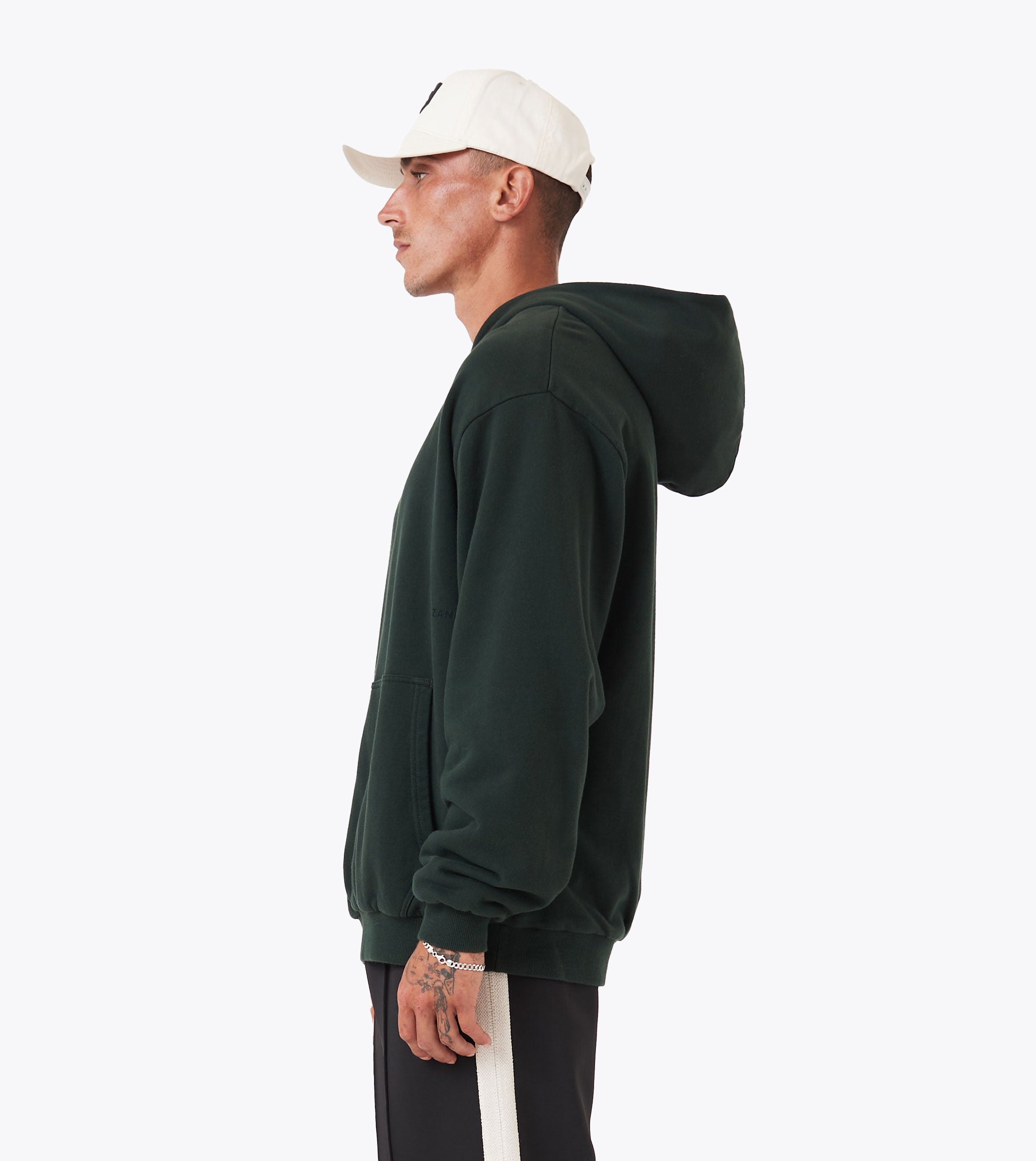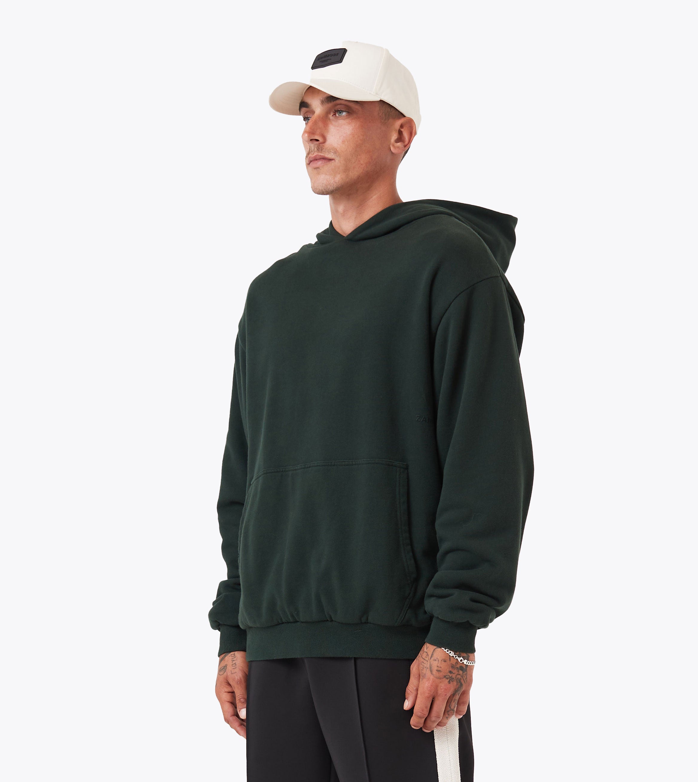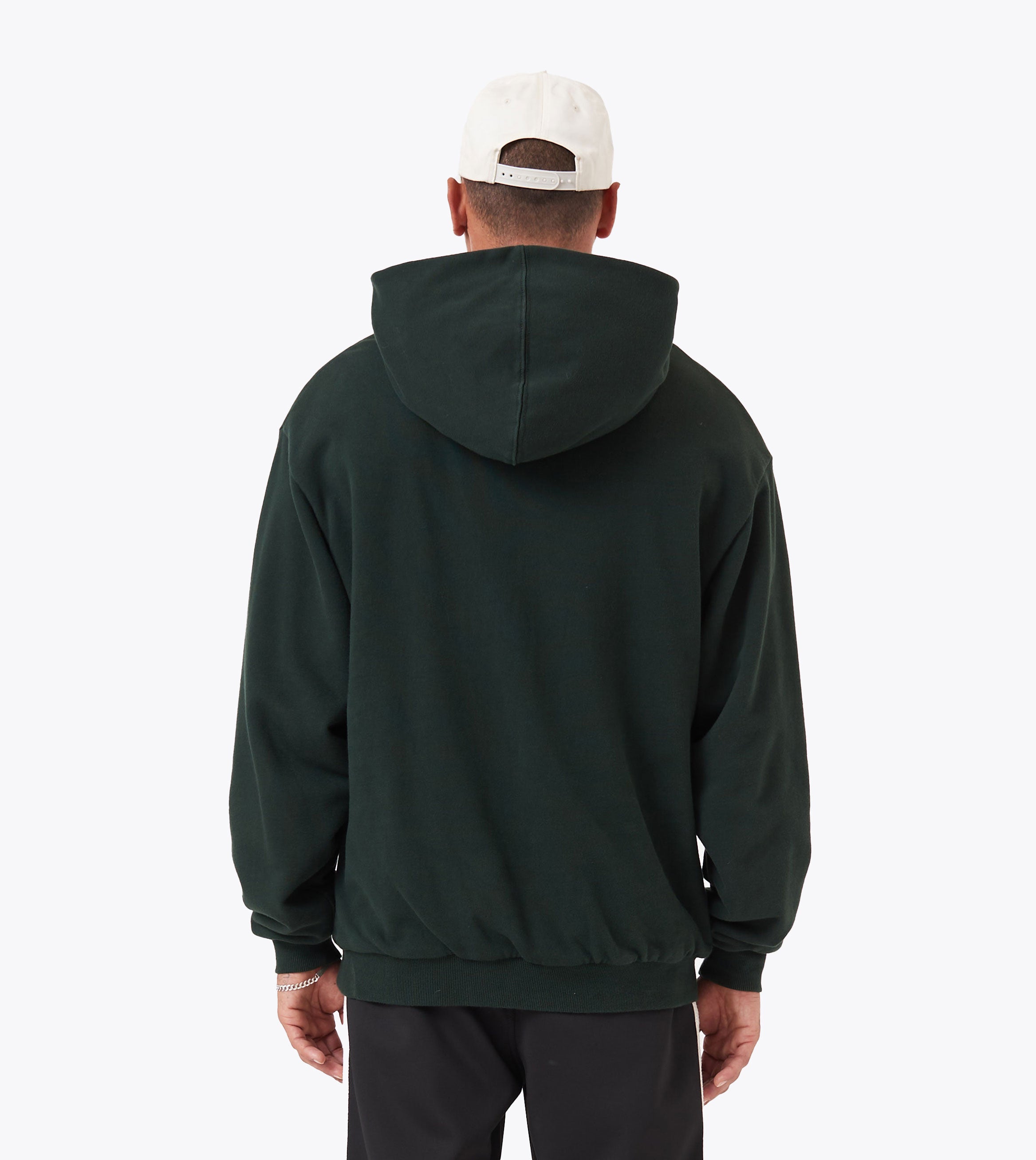 Elevate your style and comfort with the ZANEROBE Double-Down Hoodie in Forest. Crafted with double layered heavy-weight 100% organic cotton, this hoodie ensures ultimate durability. Its relaxed silhouette with drop shoulder and oversized fit offers unparalleled comfort. With its wide body and sleeves, you'll enjoy a comfortable and modern fit. Complete your outfit effortlessly by pairing it with our relaxed fitting Pants.