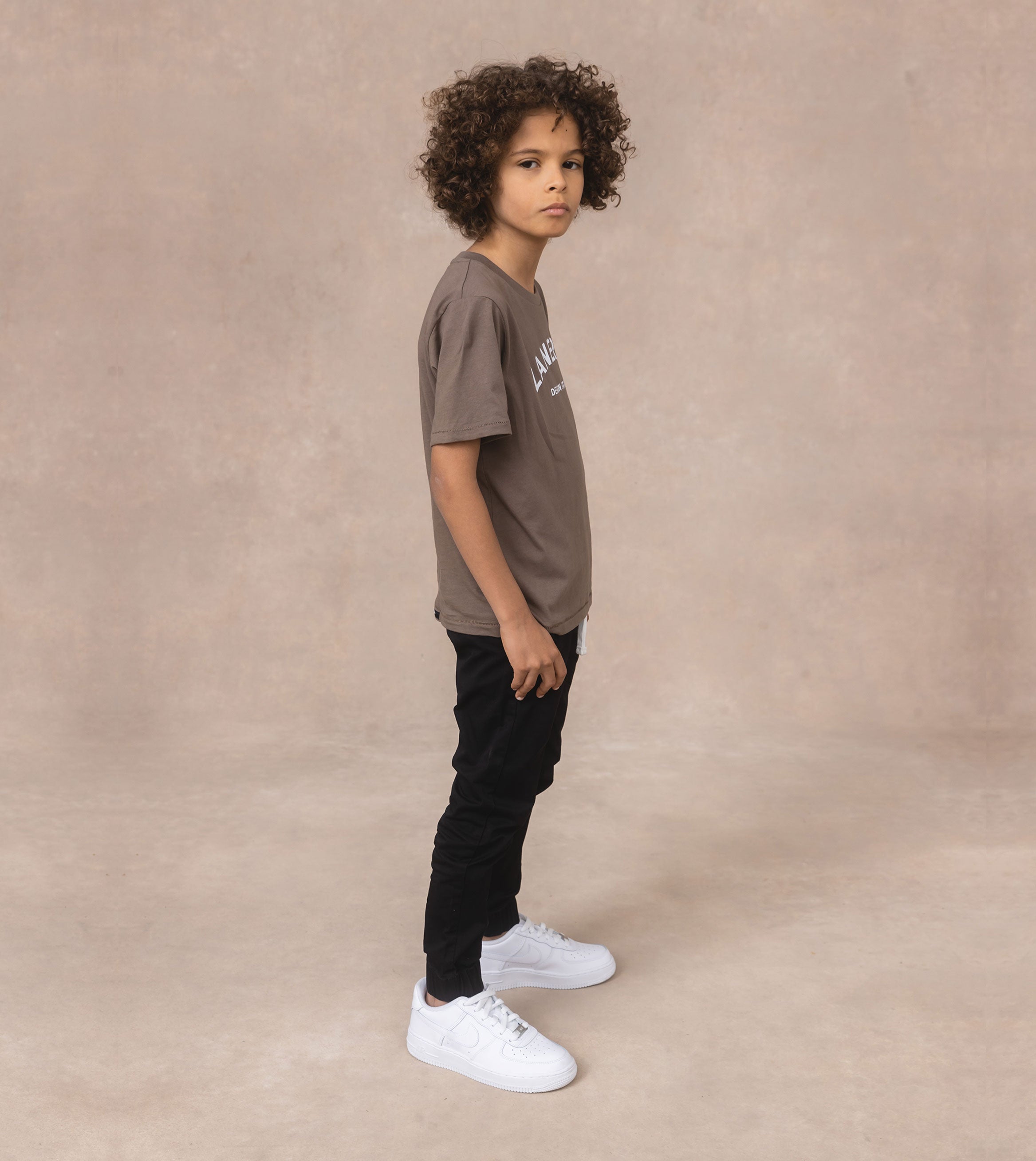 'LIL ZANE premium quality, organic tee with logo print. Sustainable, super-comfortable, ultra-durable construction - wear, play, wash, repeat with absolute confidence. Looks great paired with our Smallshot Orgo Jogger Black (featured) and Orgo Hoody GD Dk Grey.