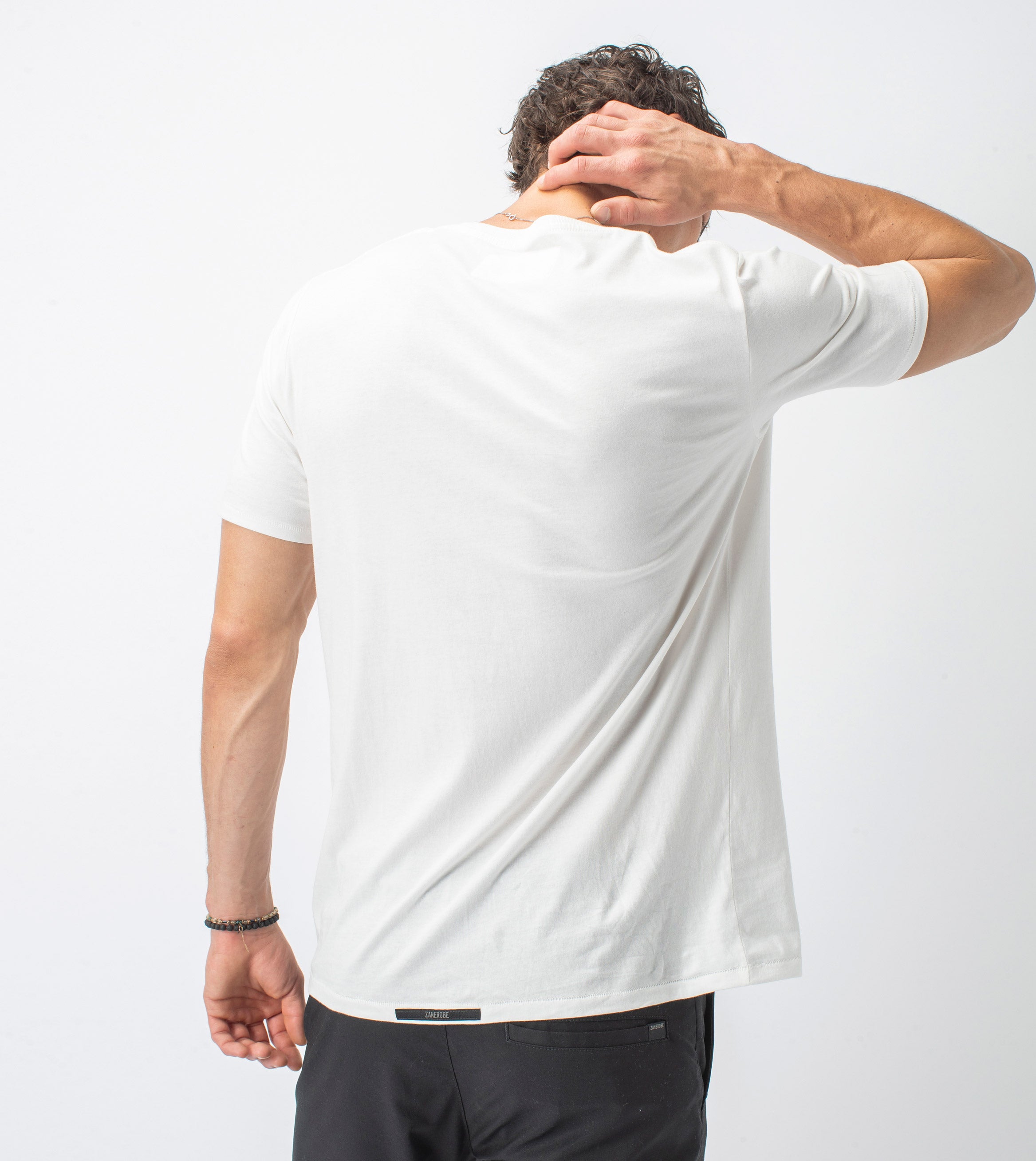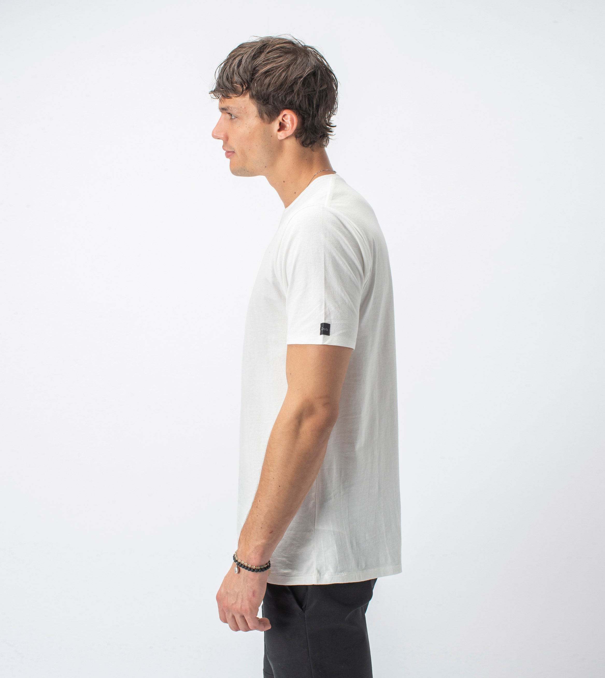 The ZANEROBE Flint Tee in Milk - an adaptation of our best selling Flintlock Tee, same great fit with a regular hem. We wear ours with our classic Sureshot Jogger or some skinny ZANEROBE Joe Blow jeans.