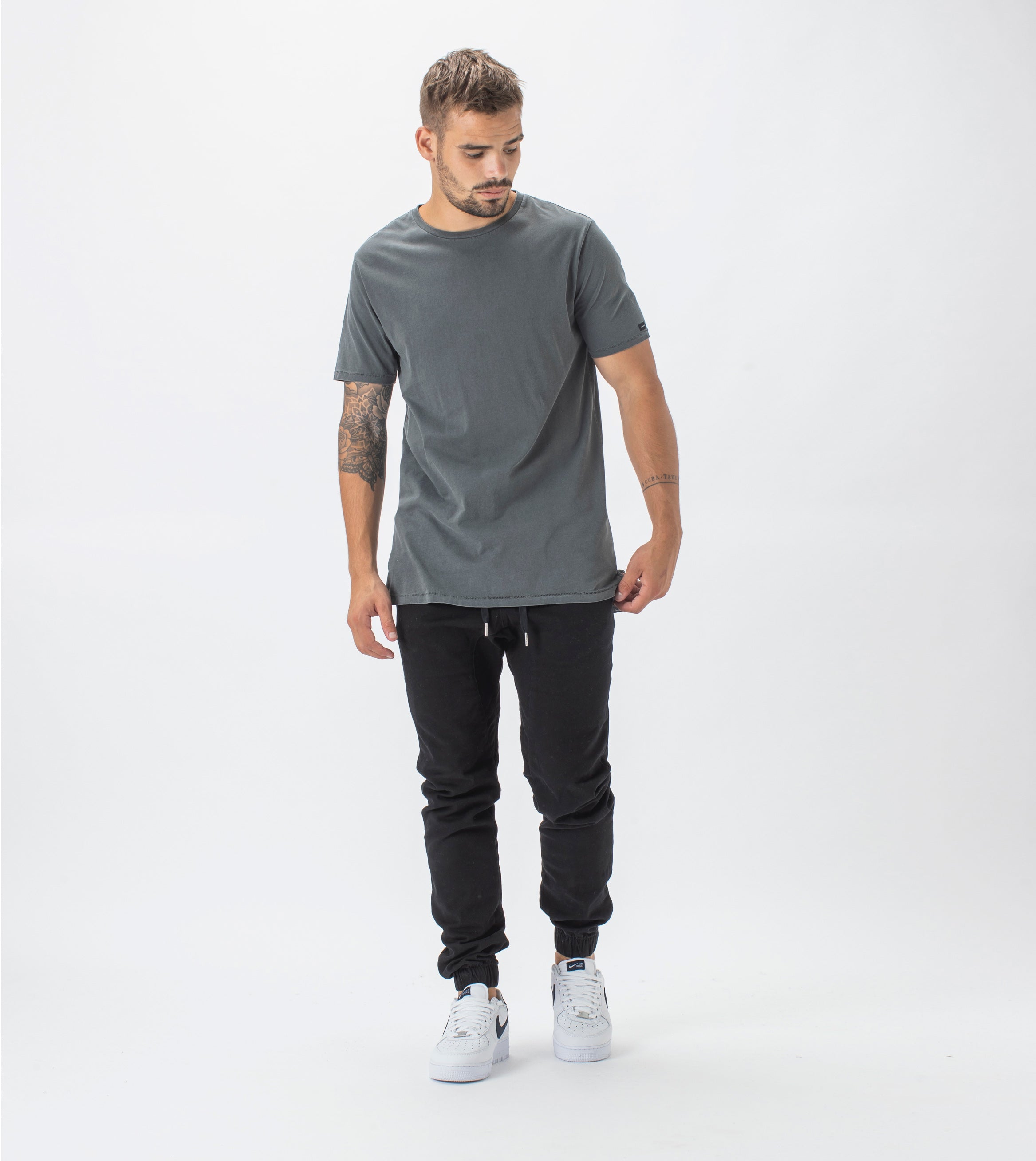 The ZANEROBE Flintlock Tee in GD Soot - best selling Tee silhouette that comes back season after season.  We wear ours with our classic Sureshot Jogger or some skinny ZANEROBE jeans.