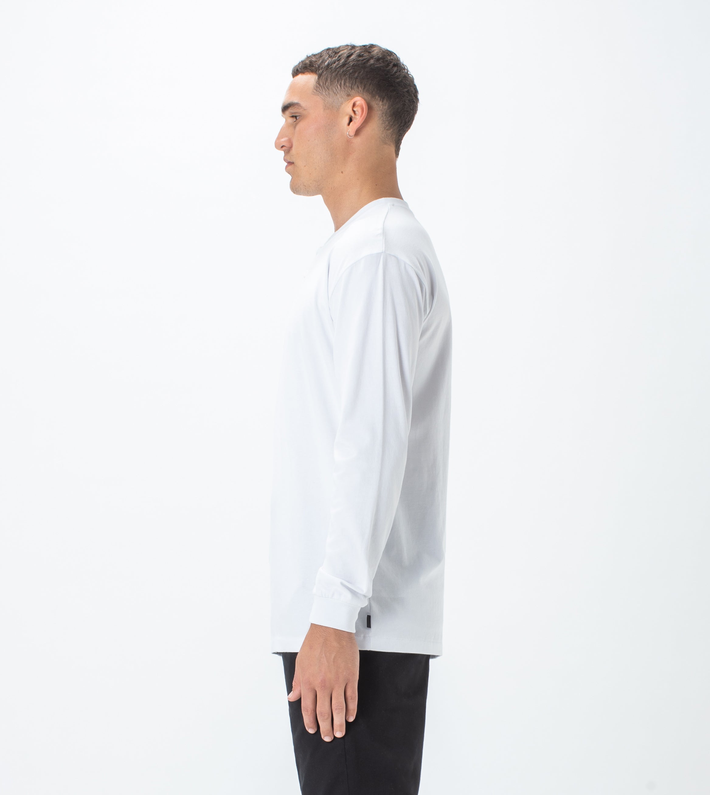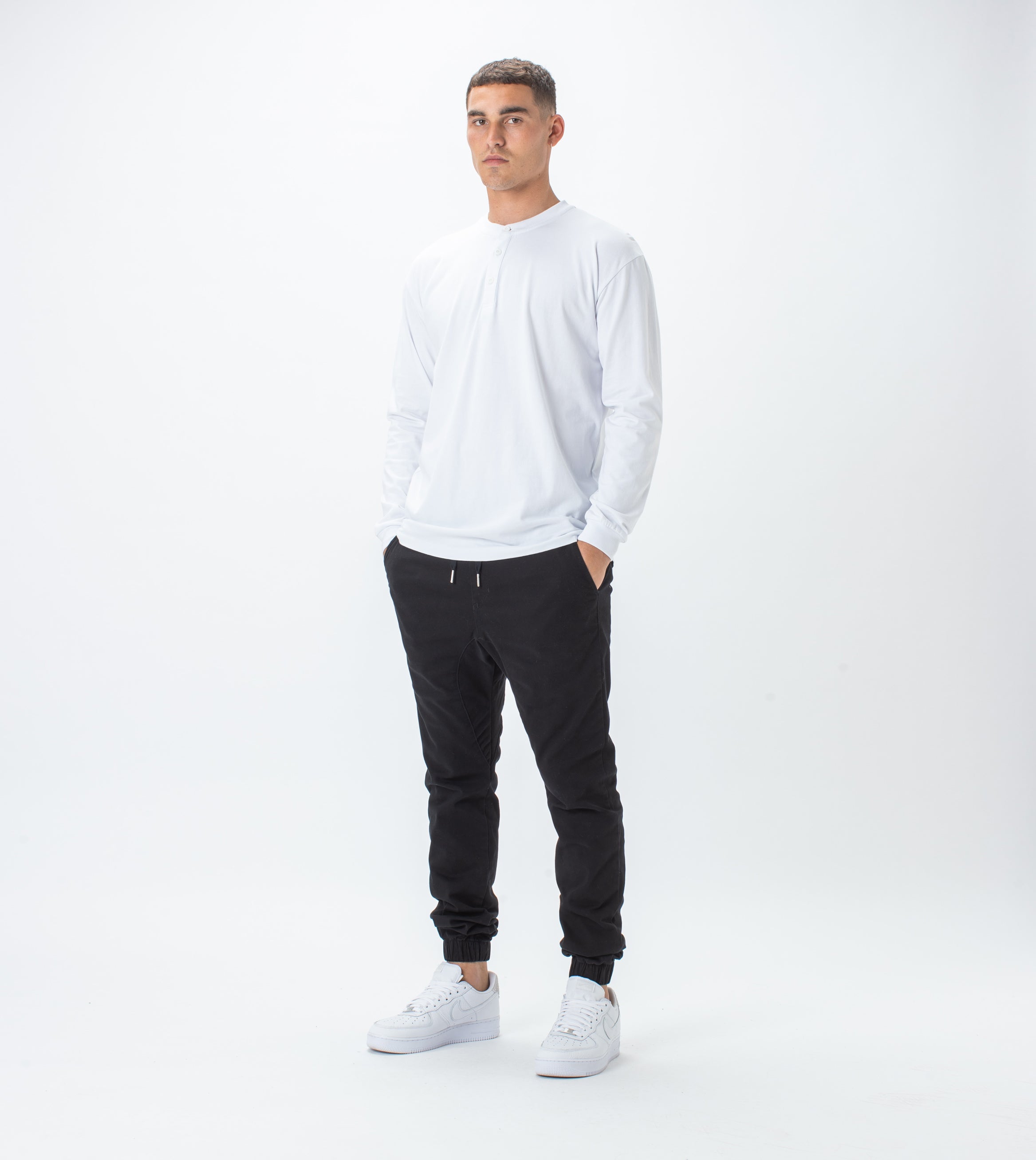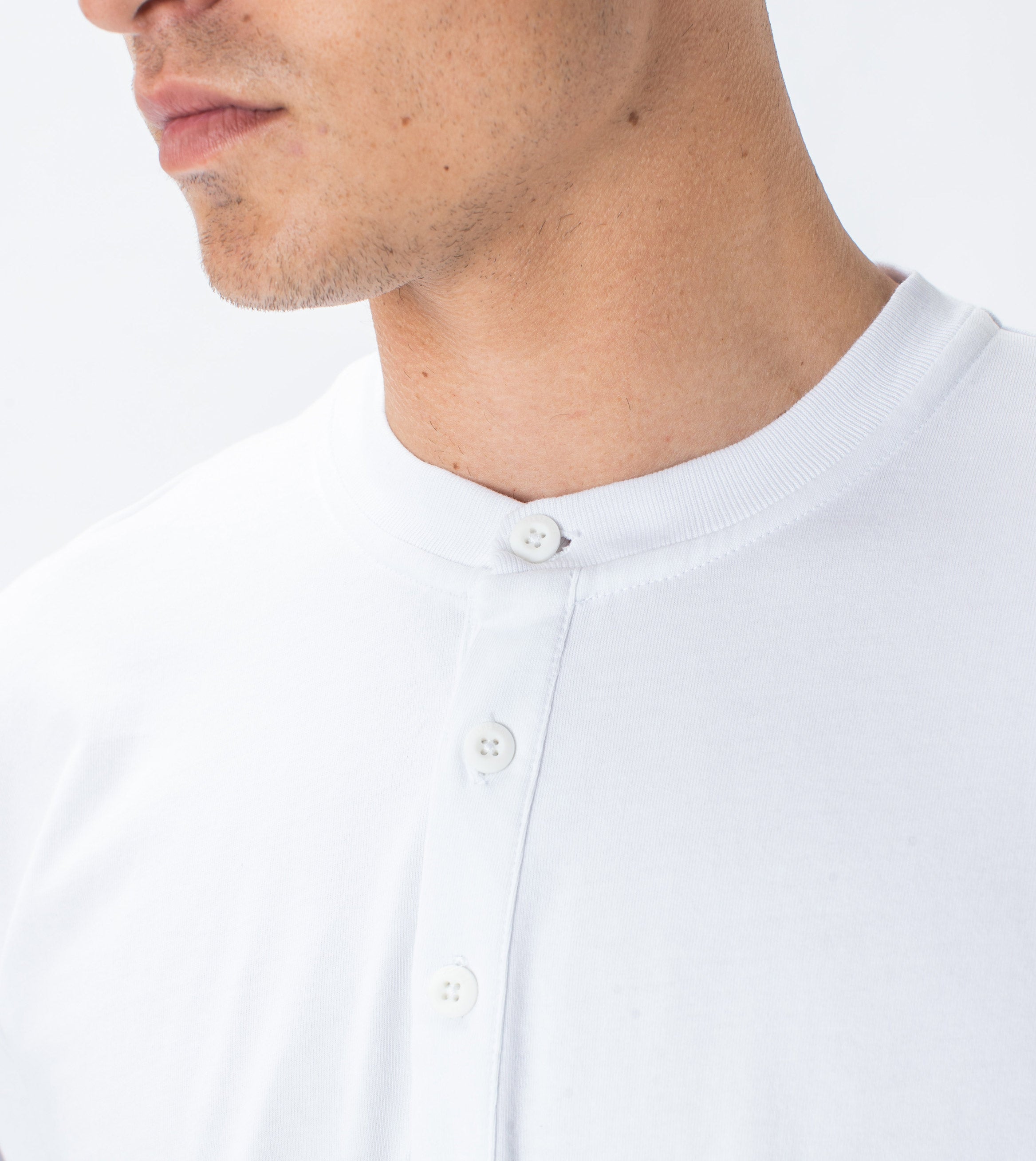 The ZANEROBE Henley LS Tee in White - Relaxed LS Tee, we wear with our classic Sureshot Jogger or some skinny ZANEROBE jeans.