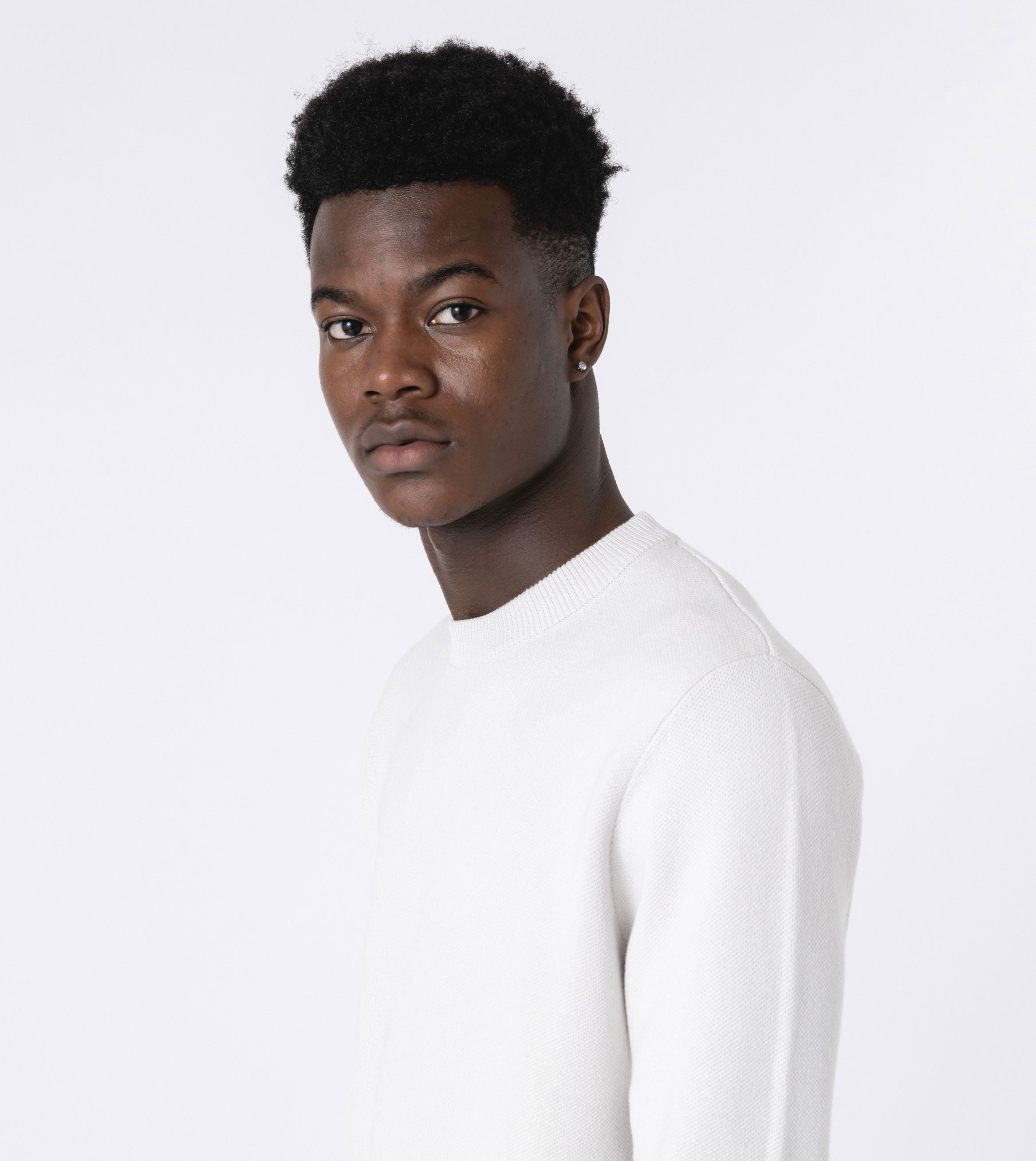 The ZANEROBE Intarsia Crew Knit in Frost - Latest style in our 7 Gauge knit, we wear with our classic Denim.