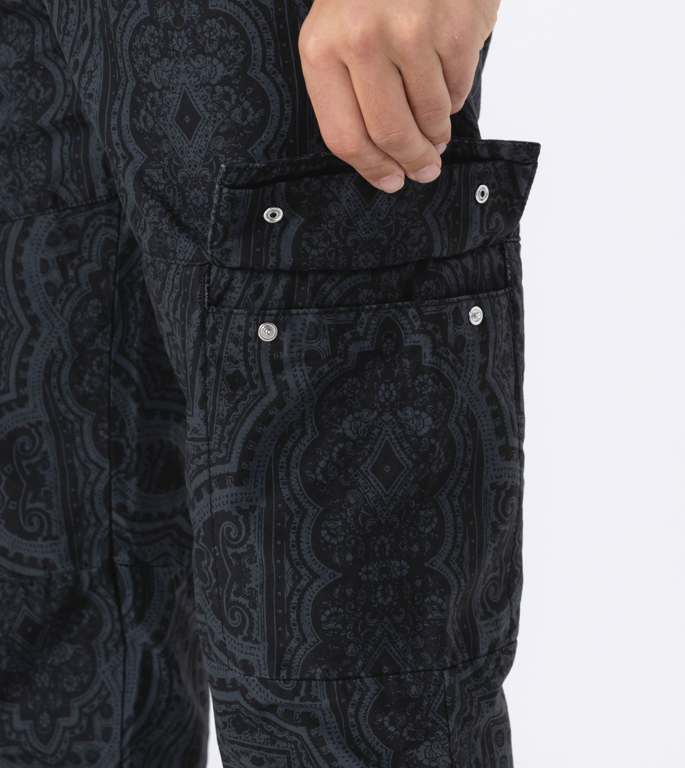 • Mid thigh external snap button pockets with Cargo flap pocket.