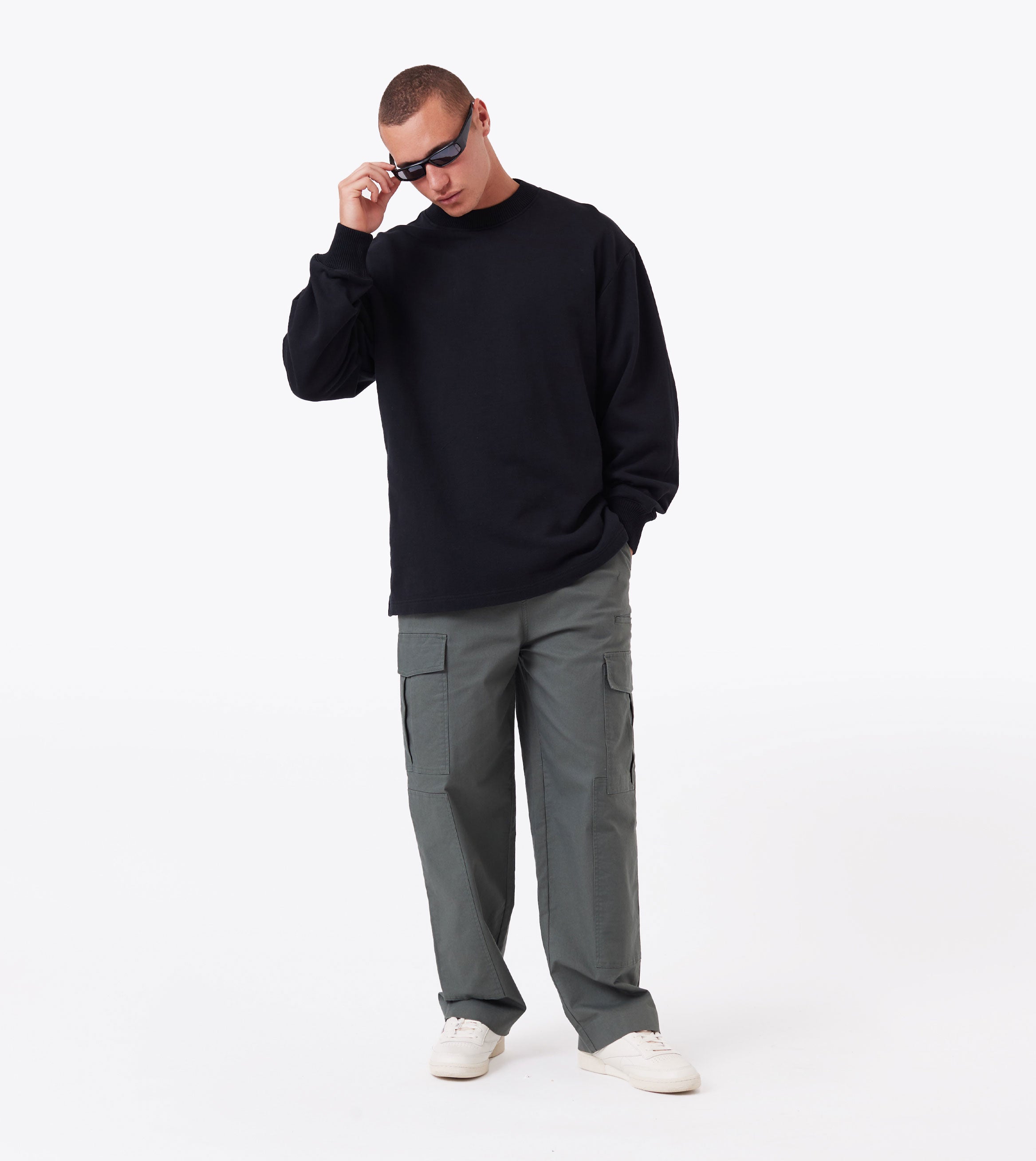 Introducing the ZANEROBE Lounge Crewneck in Black. Crafted with care from 100% organic cotton, this crewneck offers an oversized fit for a relaxed look. Pair it effortlessly with some classic cargo pants to complete your look.
