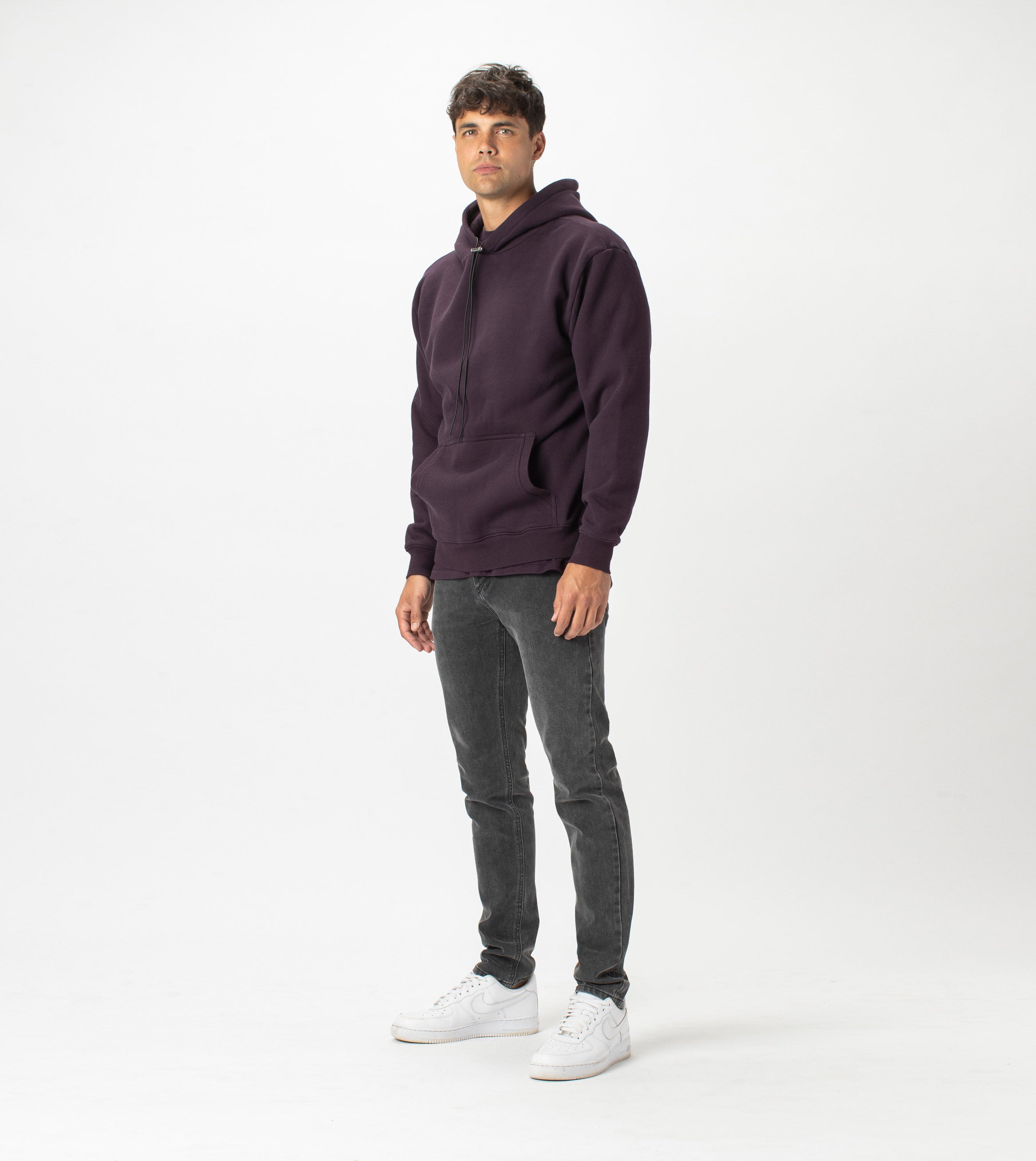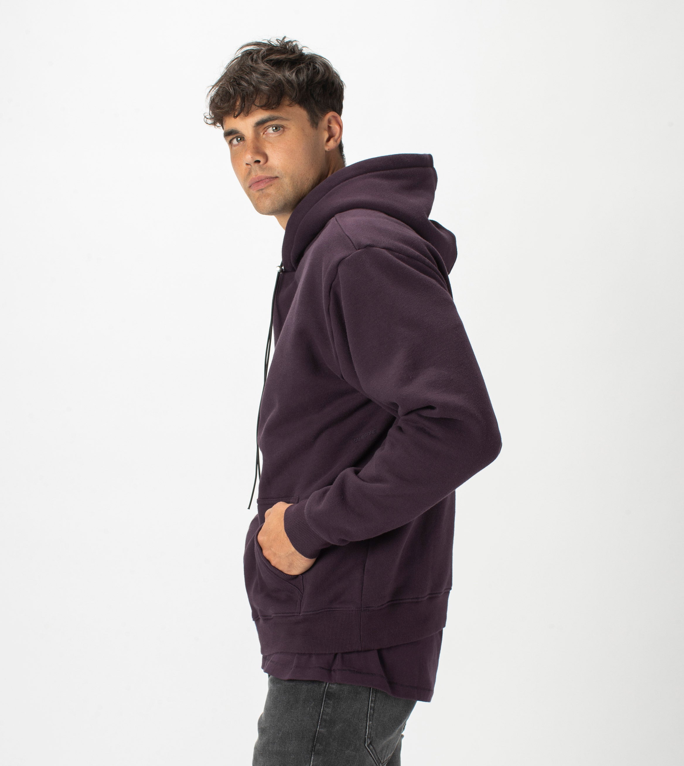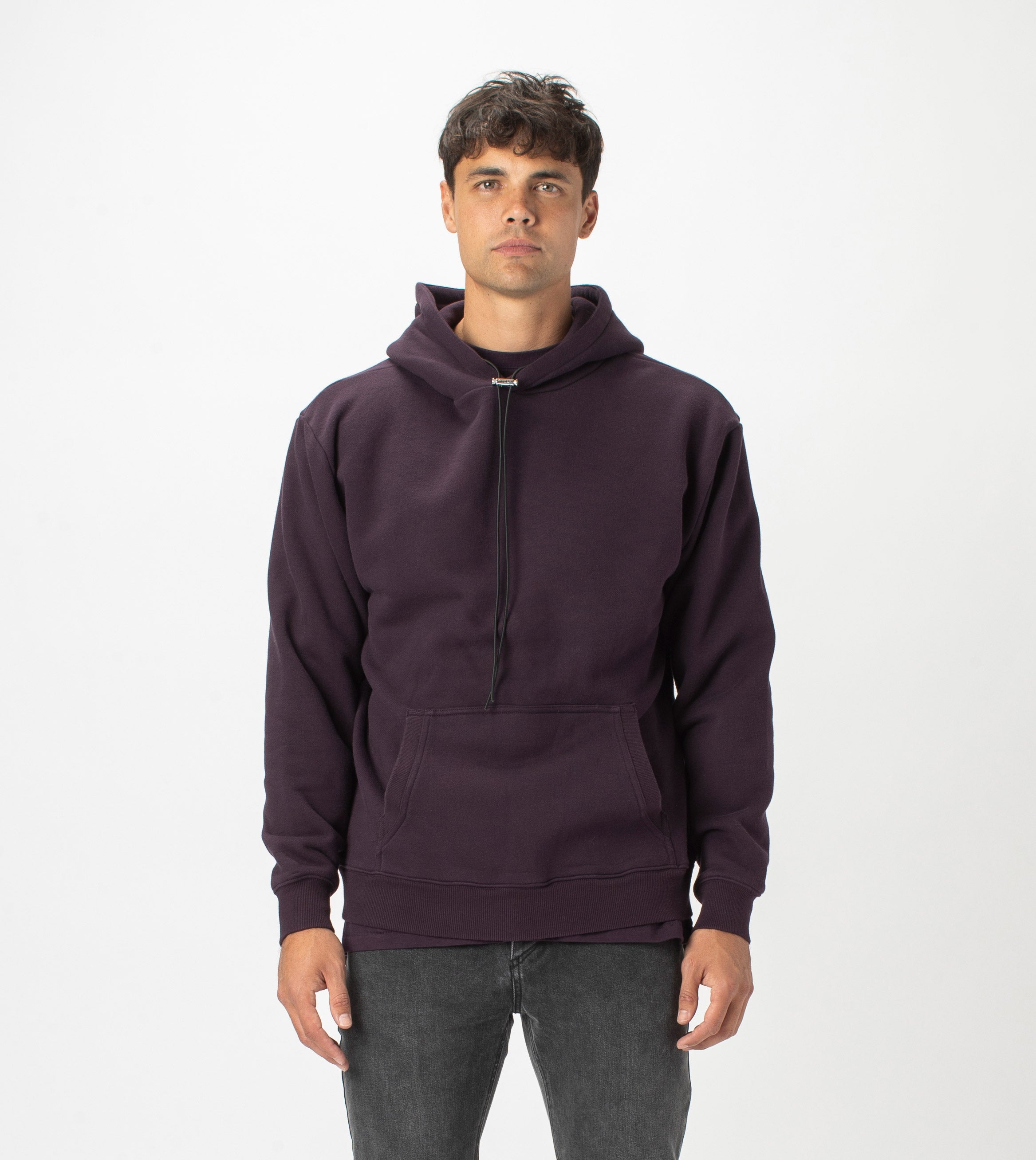 The ZANEROBE Lowgo Hood Sweat in Dk Grape - Signature style with fleece fabrication. We wear with our Classic Sureshot Joggers.