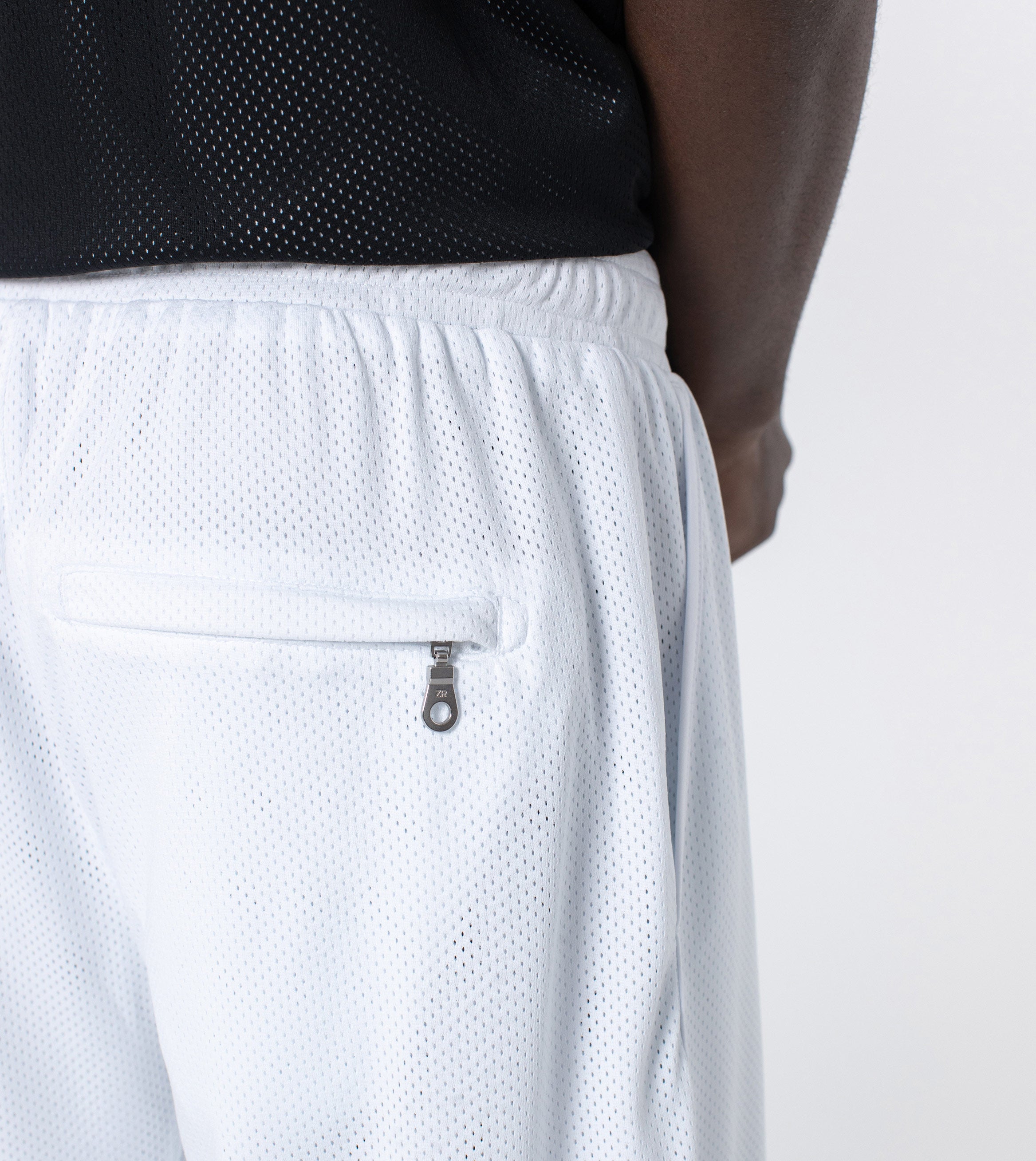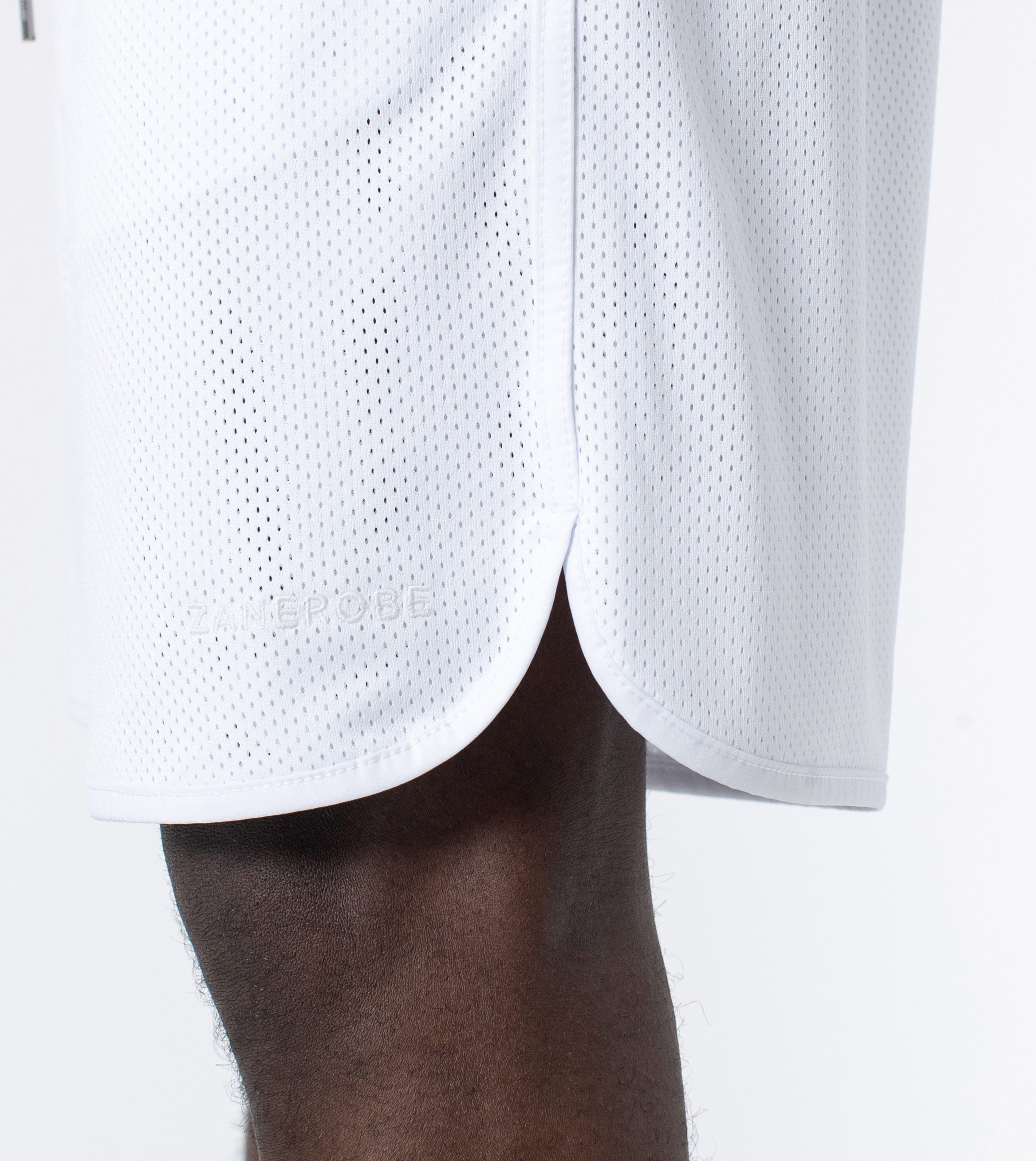 The ZANEROBE Mesh Basketball Short in White - Our updated short for everyday hooping, layer on our Box Tee and a Lowgo Hood.
