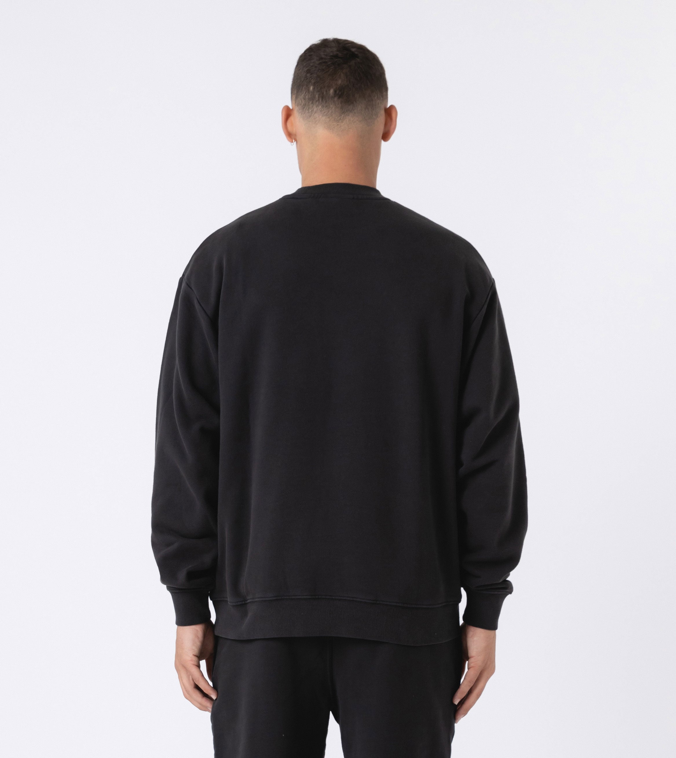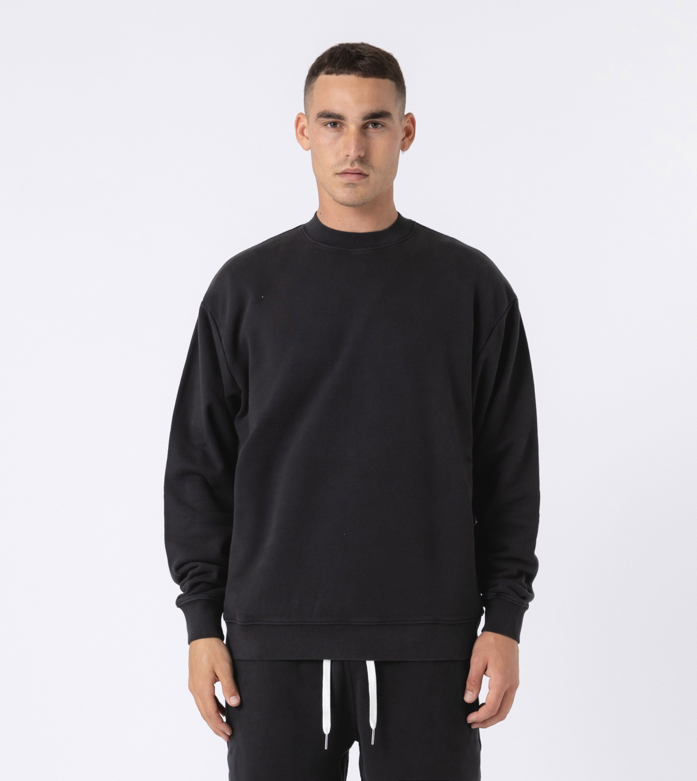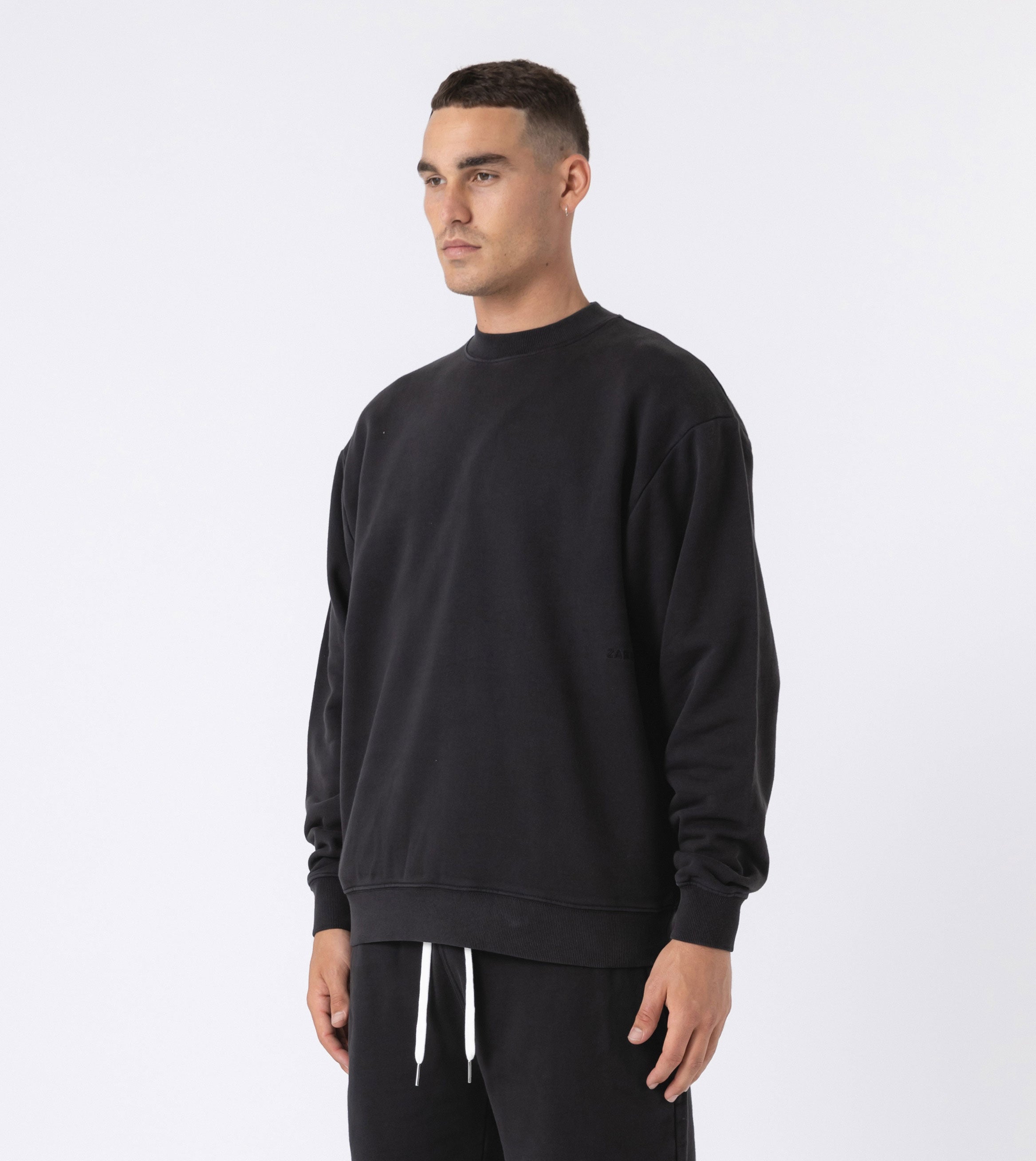 The ZANEROBE Vintage Orgo Crew Sweat in GD Black - Our latest fleece style with signature fleece fabrication. We wear with our classic Sureshot Jogger.