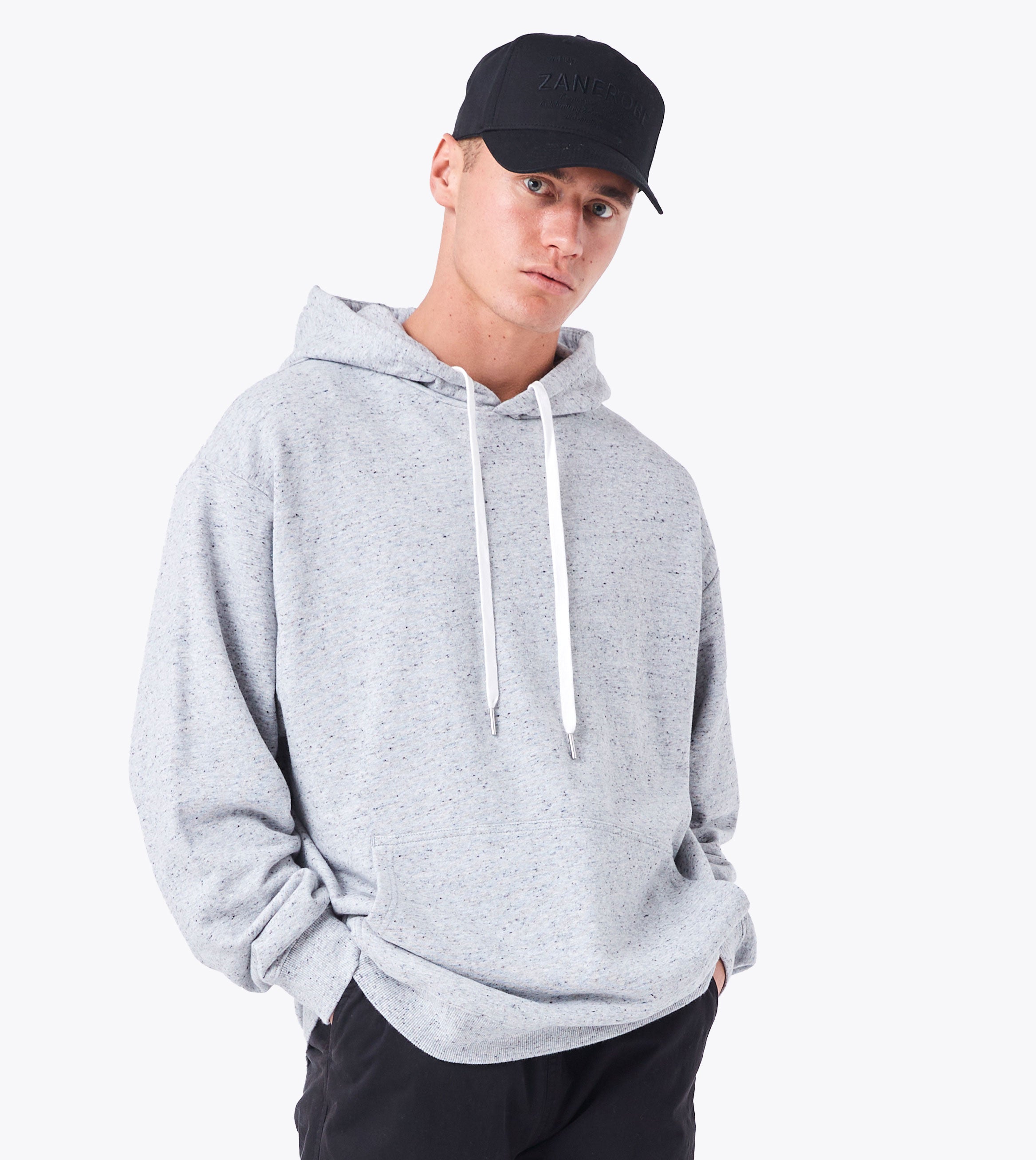 The ZANEROBE Orgo Hood Sweat in Space Grey Nep is made from 100% Cotton French Terry and features a drop shoulder and oversized fit. With its concealed cotton drawcords, branded metal toggle, and thick rib neckline, this hood is a must-have for any wardrobe. To complete your look, pair it with our Su Blow Tech Chinos.