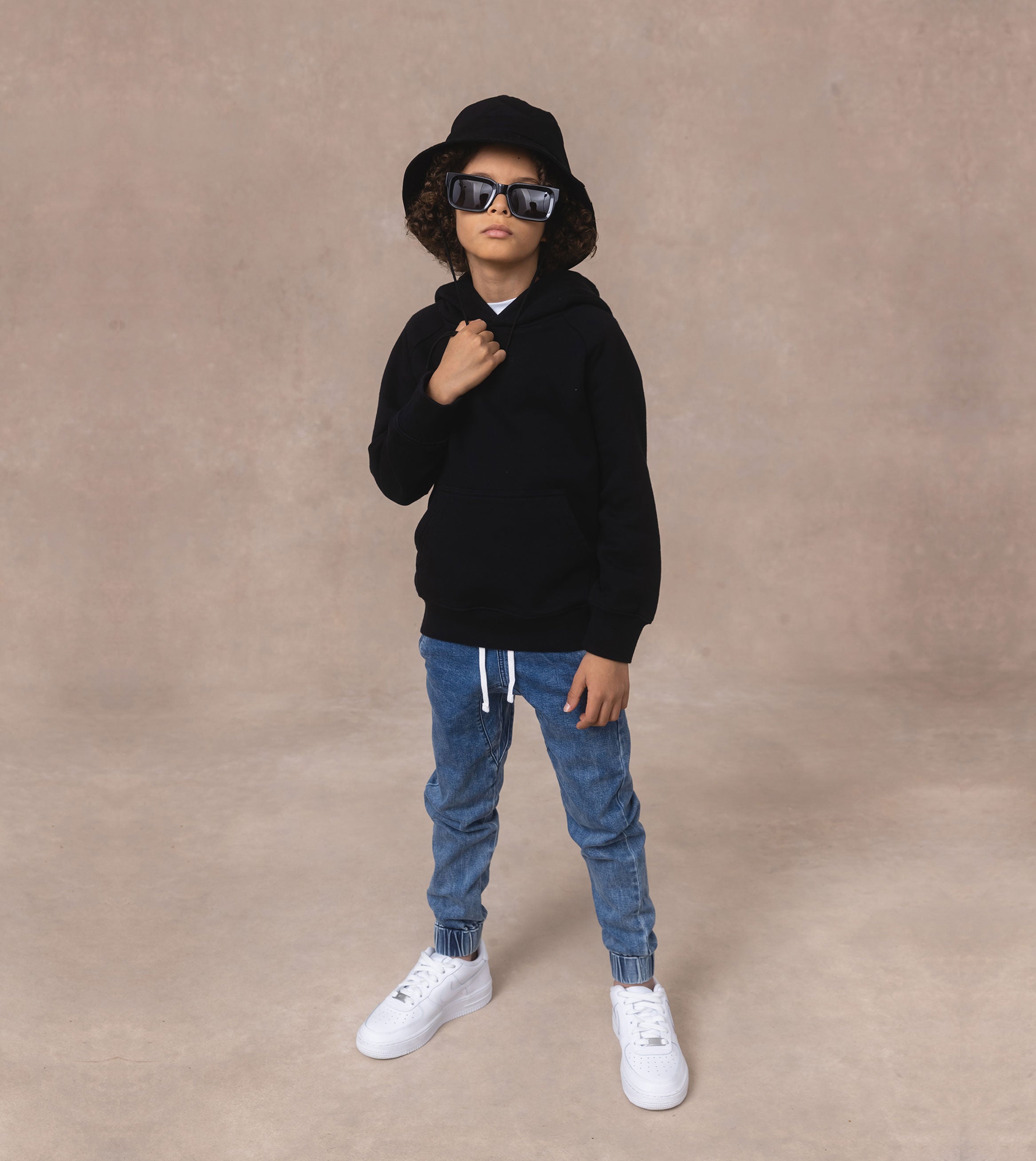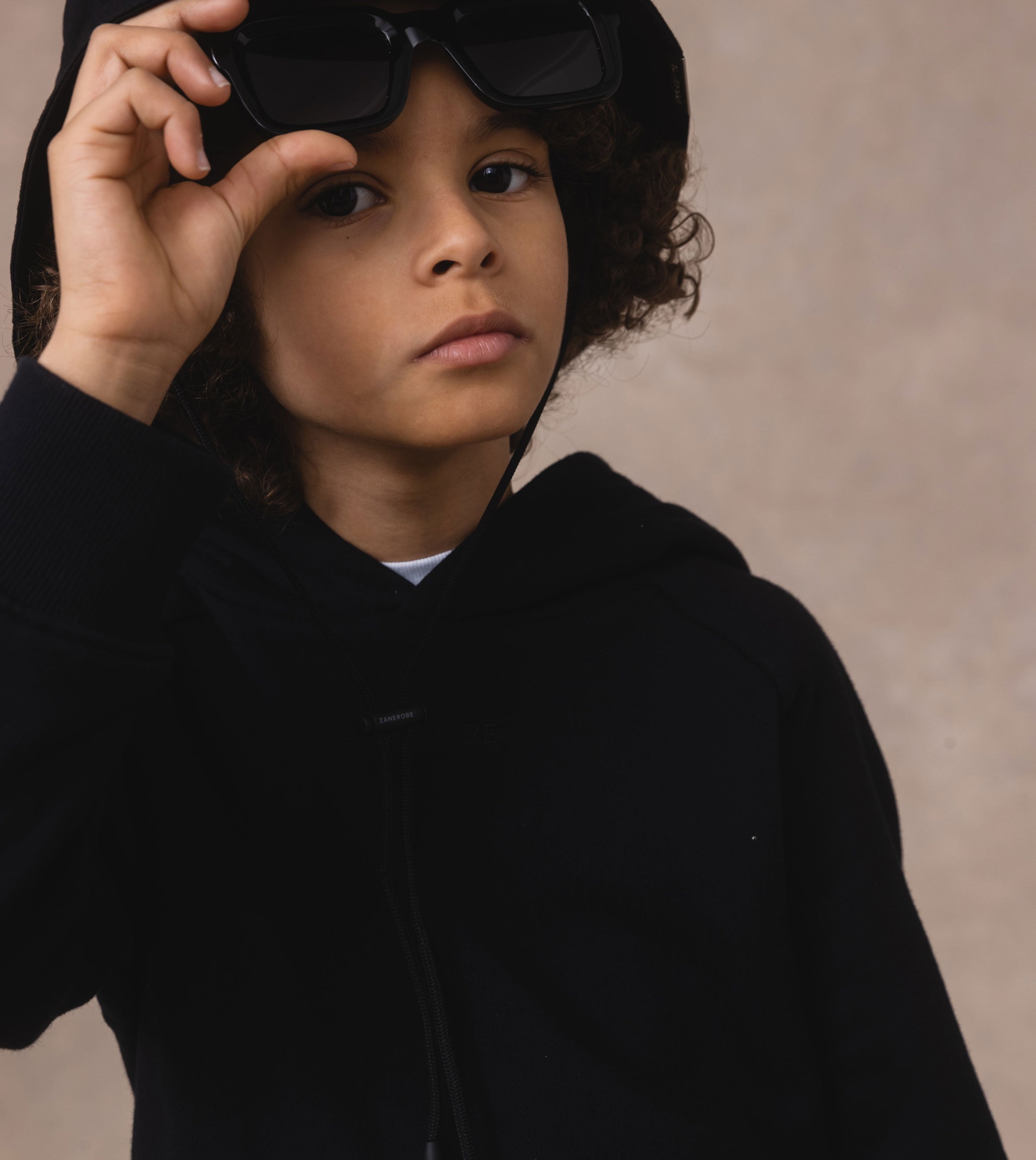 'LIL ZANE premium quality, organic french terry hoody. Sustainable, super-comfortable, ultra-durable construction - wear, play, wash, repeat with absolute confidence. Looks great paired with our Smallshot Denim Jogger Essential Blue and DS Box Tee White, both featured.