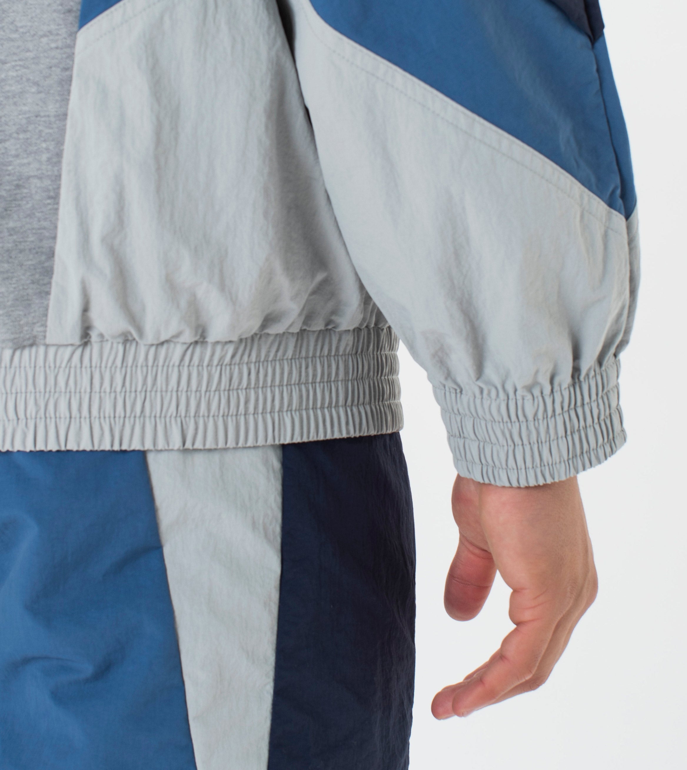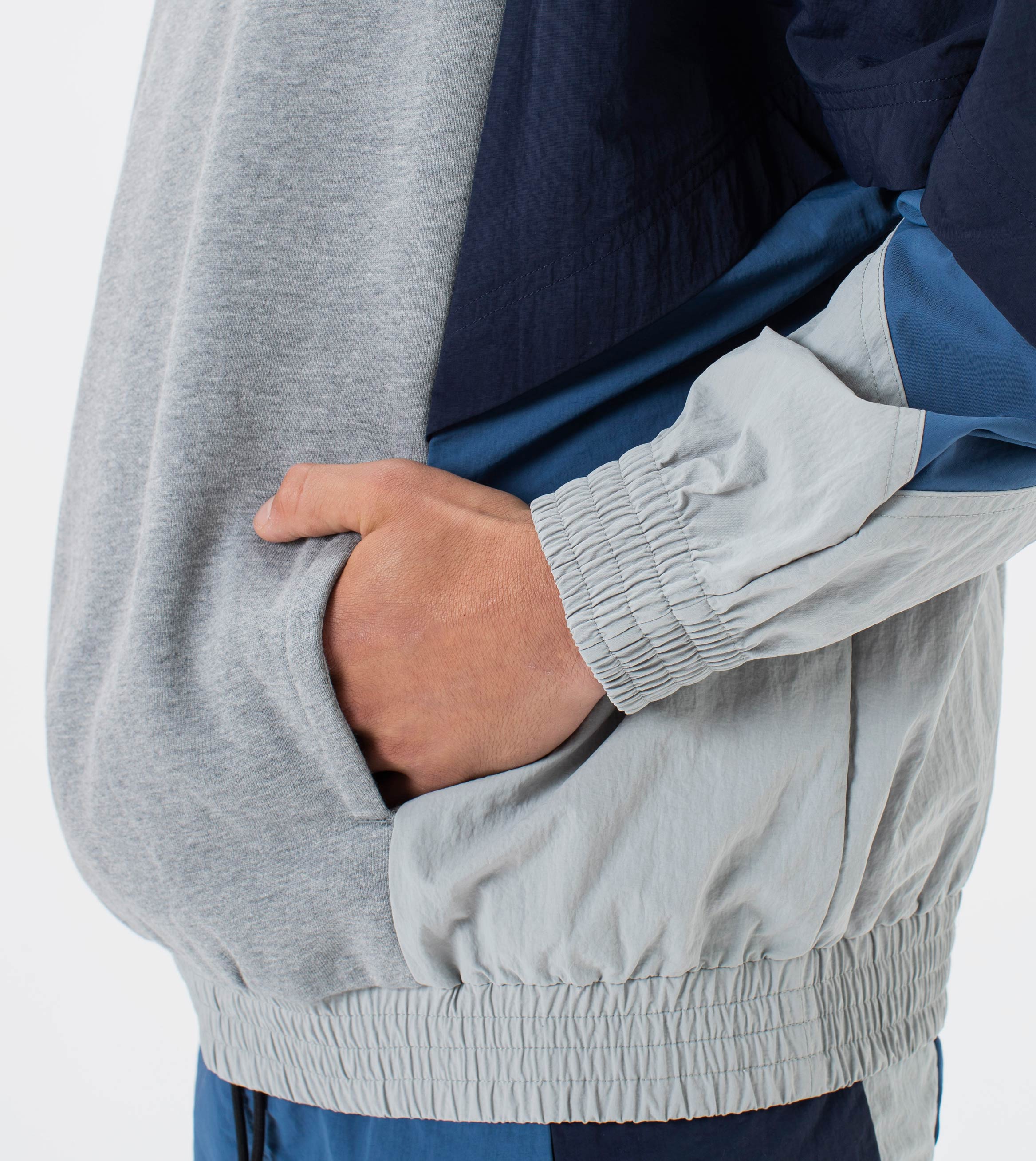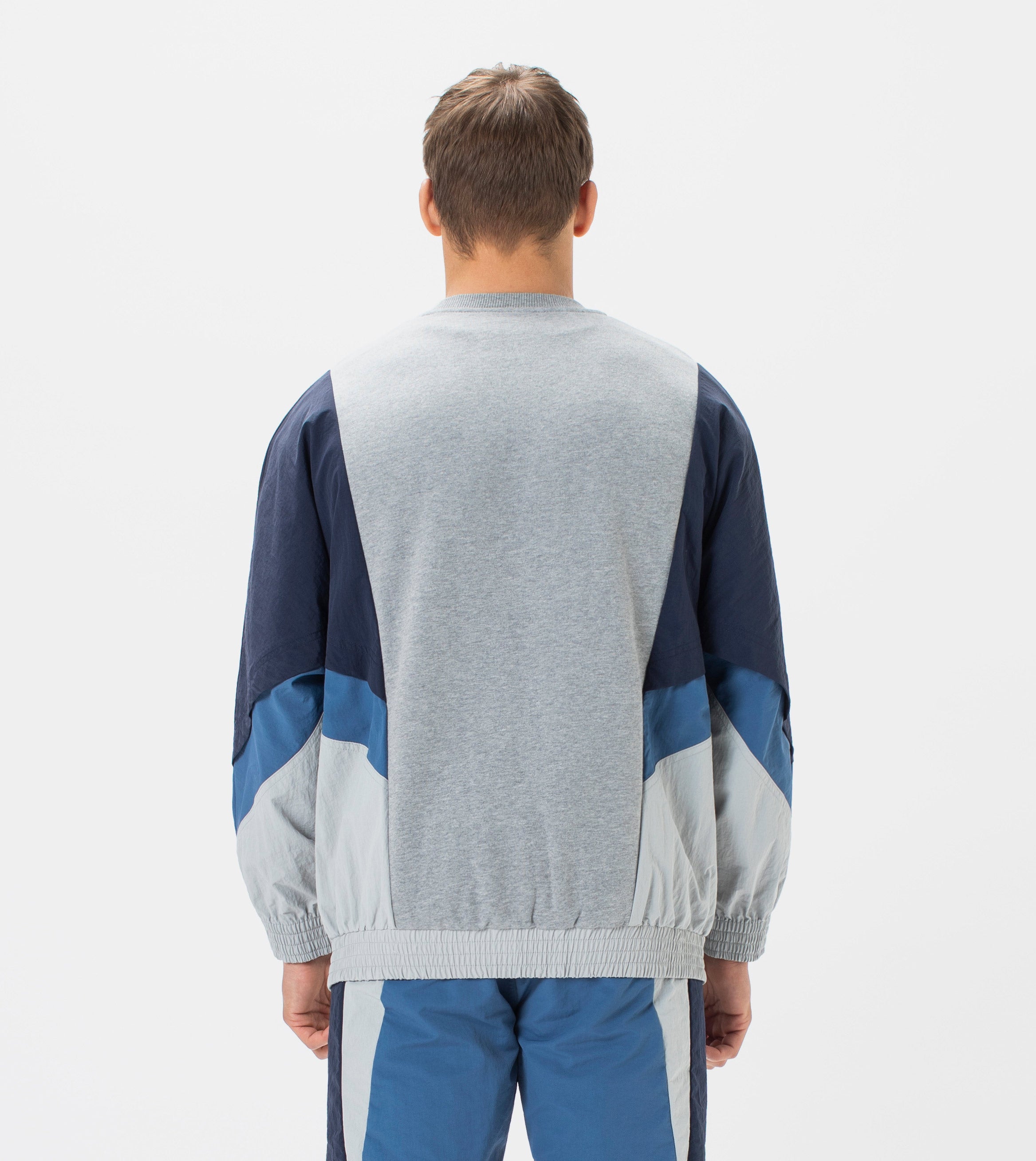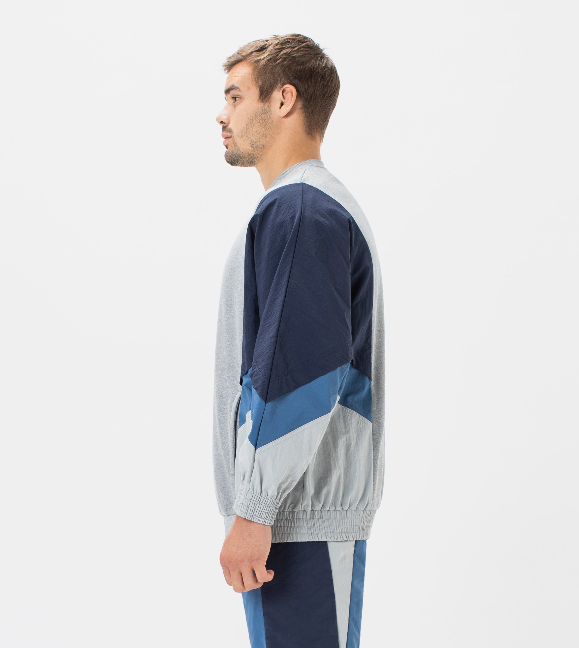 The ZANEROBE Panel Track Crew Sweat Royal/Indigo - Historical tribute with contemporary relevance, featuring a fleece body panelled with nylon. We wear with the matching Panel Jumpa Jogger.