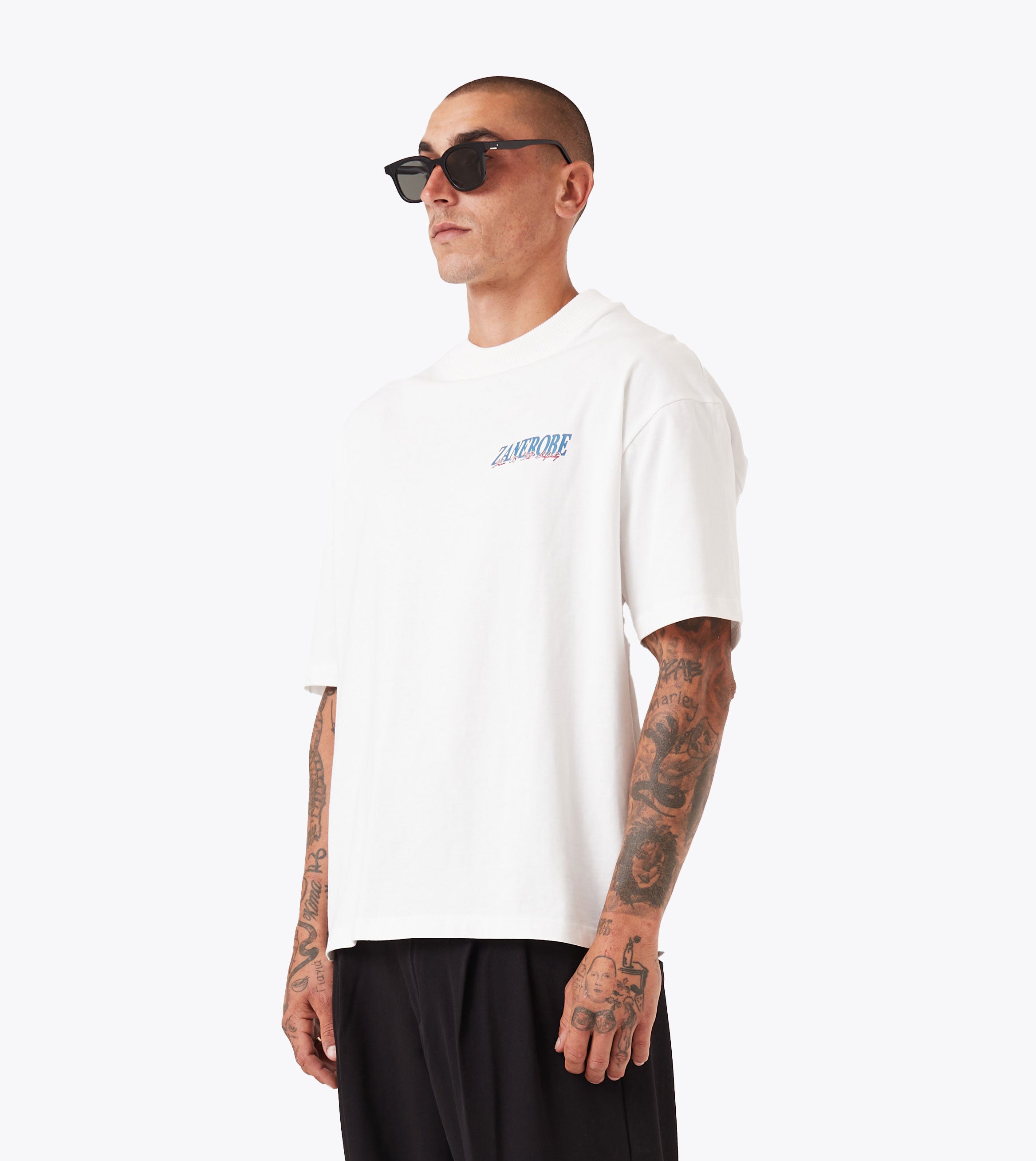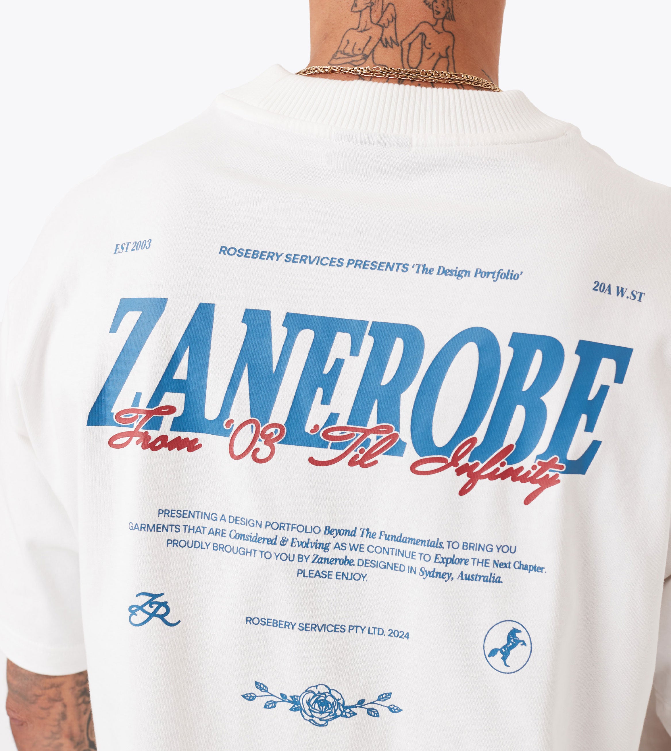 Made from heavyweight 100% cotton jersey, the Portfolio Lounge Tee in Vintage White features an oversized fit with a durable 2x2 flat-knit rib neckband for lasting comfort. Bold ‘Portfolio’ plastisol prints on the front and back complete the look, making this tee a true statement piece.