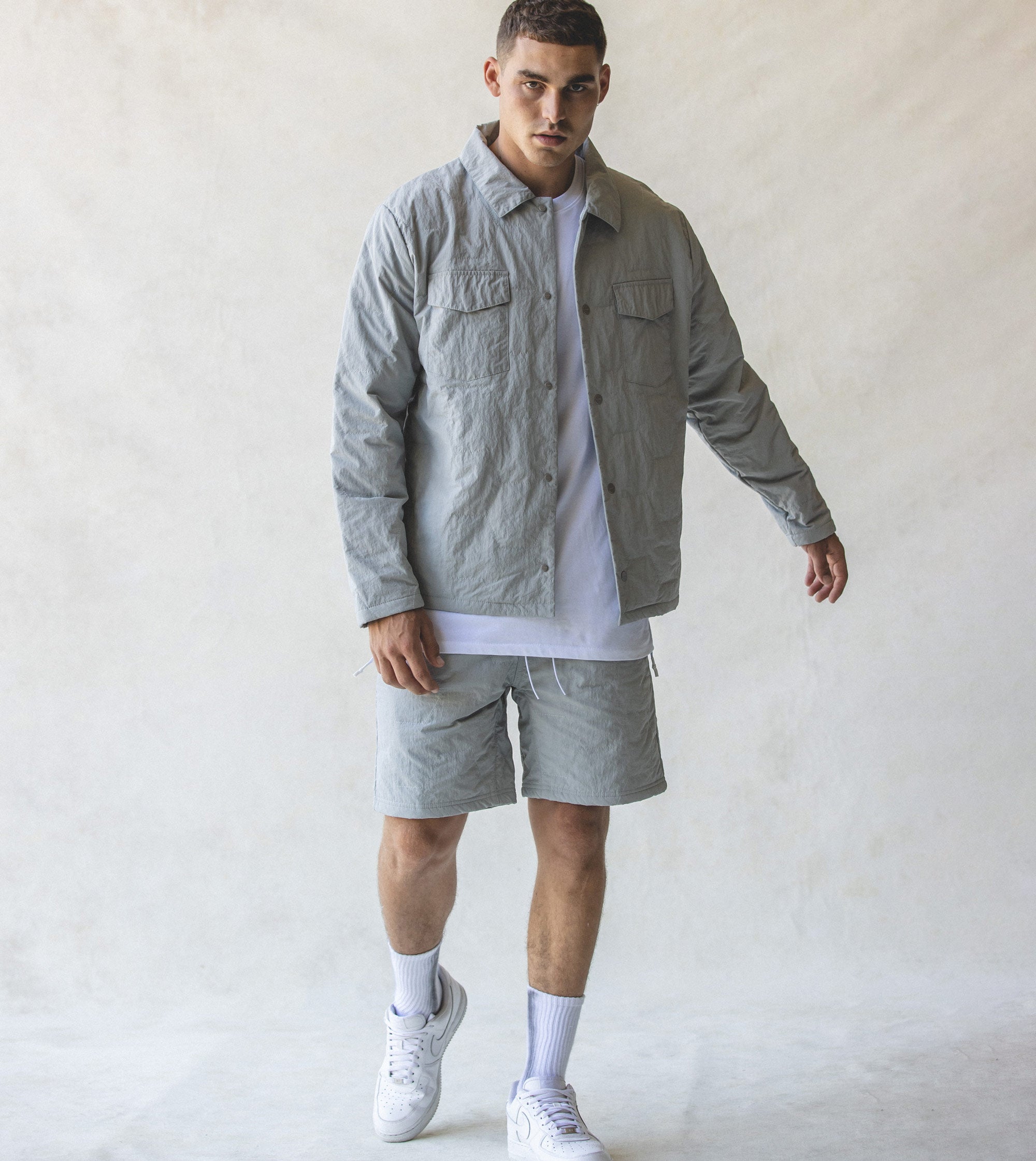 The ZANEROBE Quilt Shell Jacket in Ice Grey - A relaxed medium weight coach jacket. We wear with our classic skinny fit Joe Blow Denim.