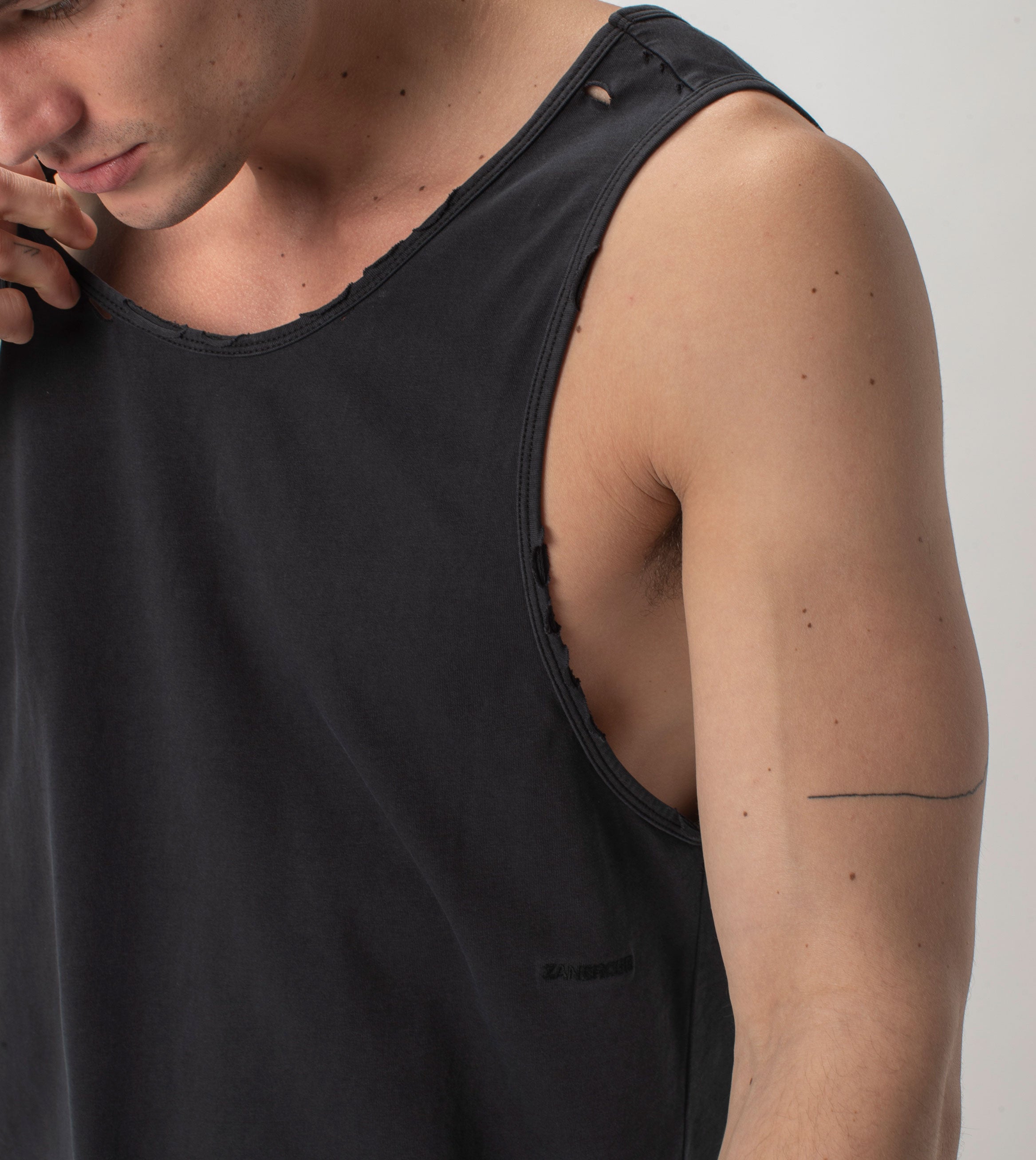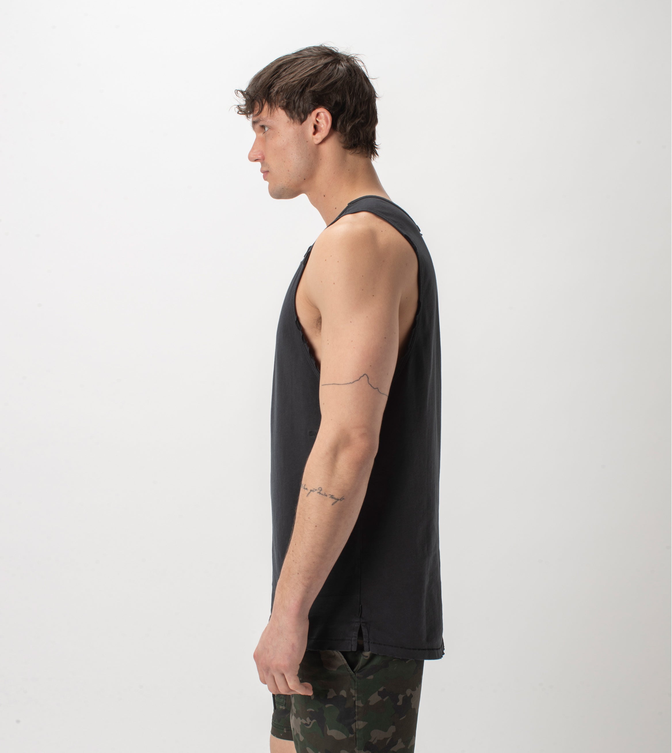 The ZANEROBE Ripped Rugger Tank in GD Black - Signature relaxed Tee, we wear with our classic Sureshot Fleece Joggers.