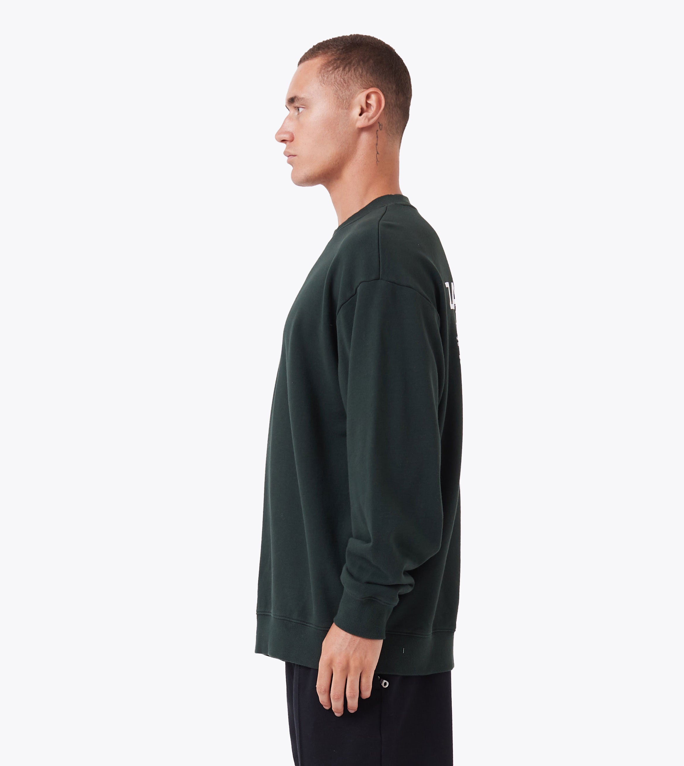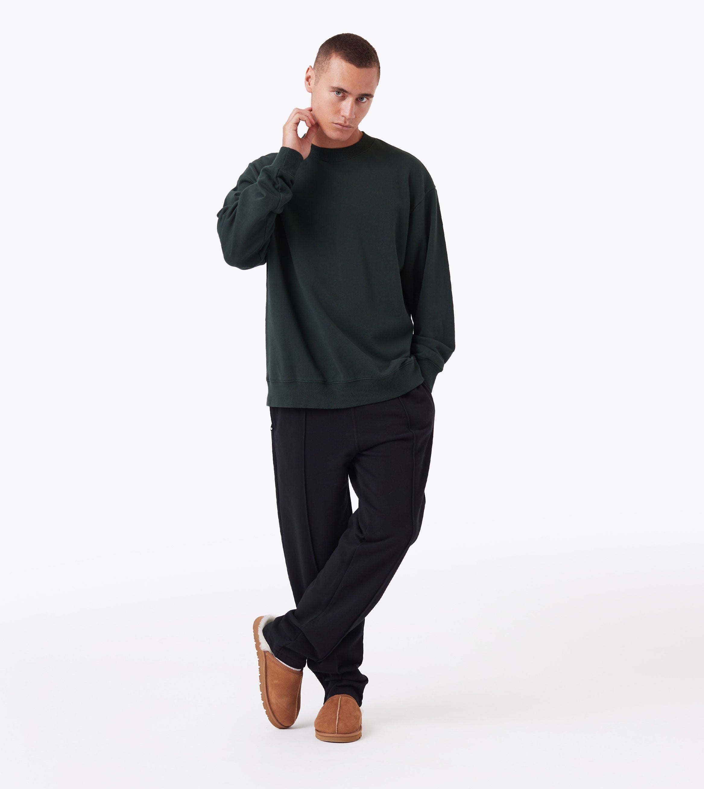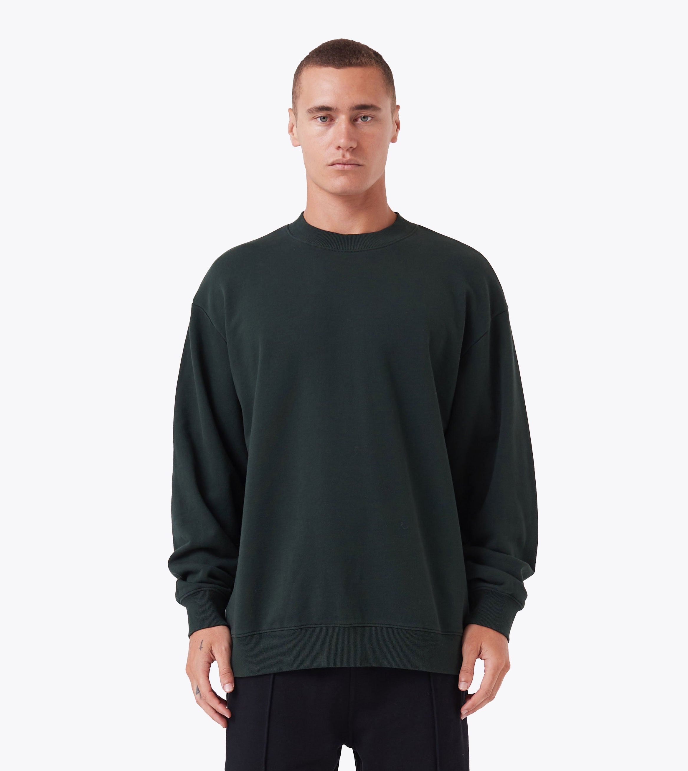 Crafted from 100% Organic Cotton French Terry, the ZANEROBE Script Orgo Crewsweat in Forest guarantees a modern and relaxed look with its drop shoulder, oversized fit, and relaxed hem. The sustainable fabric choice not only ensures a feeling of luxury but also promotes environmental consciousness. For an effortlessly look, simply pair it with the relaxed fit Box pants.