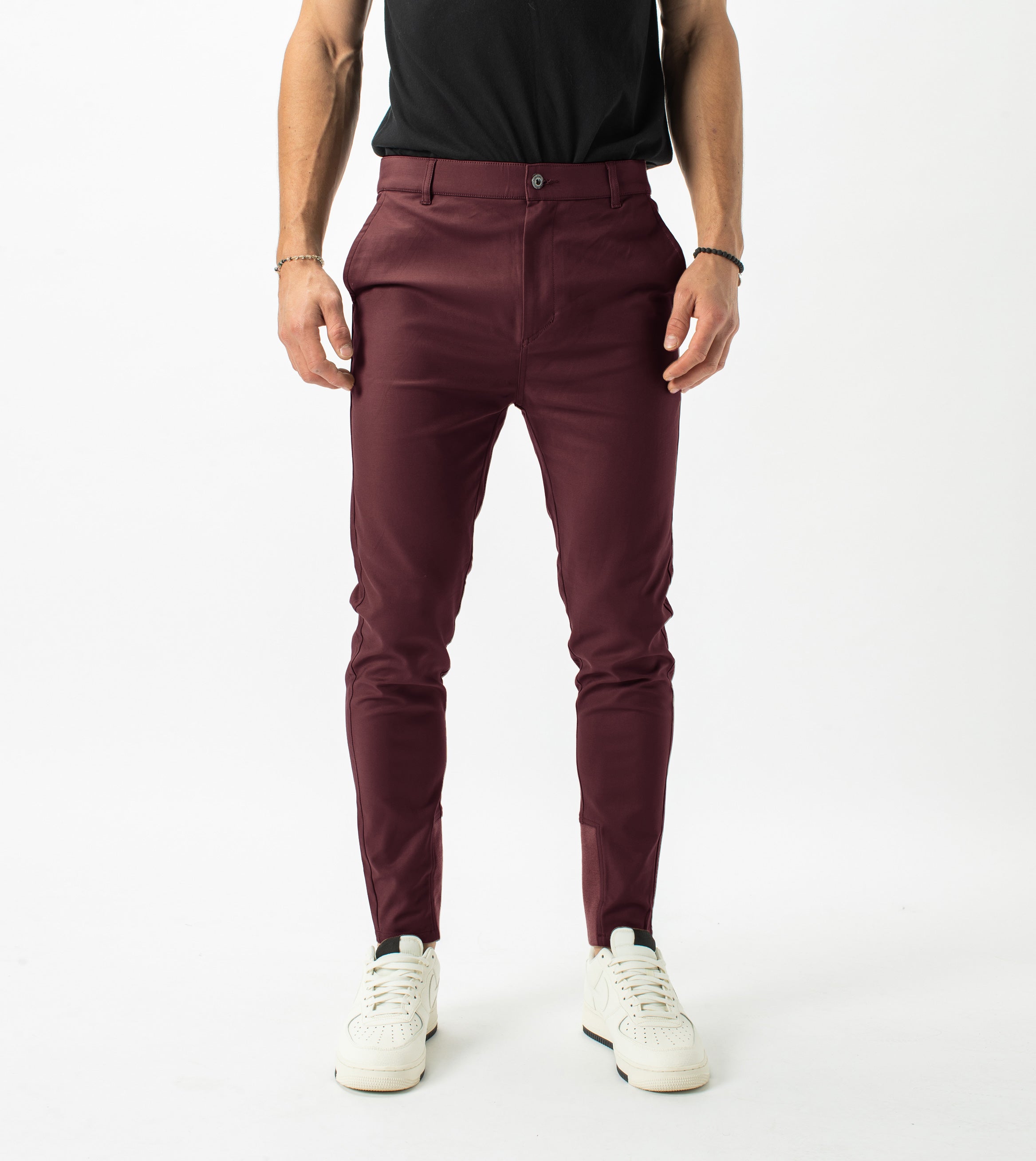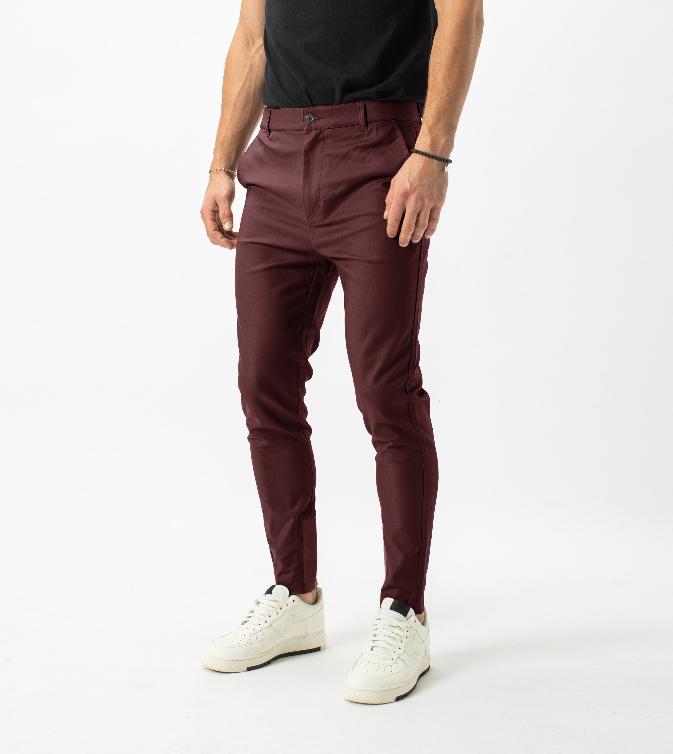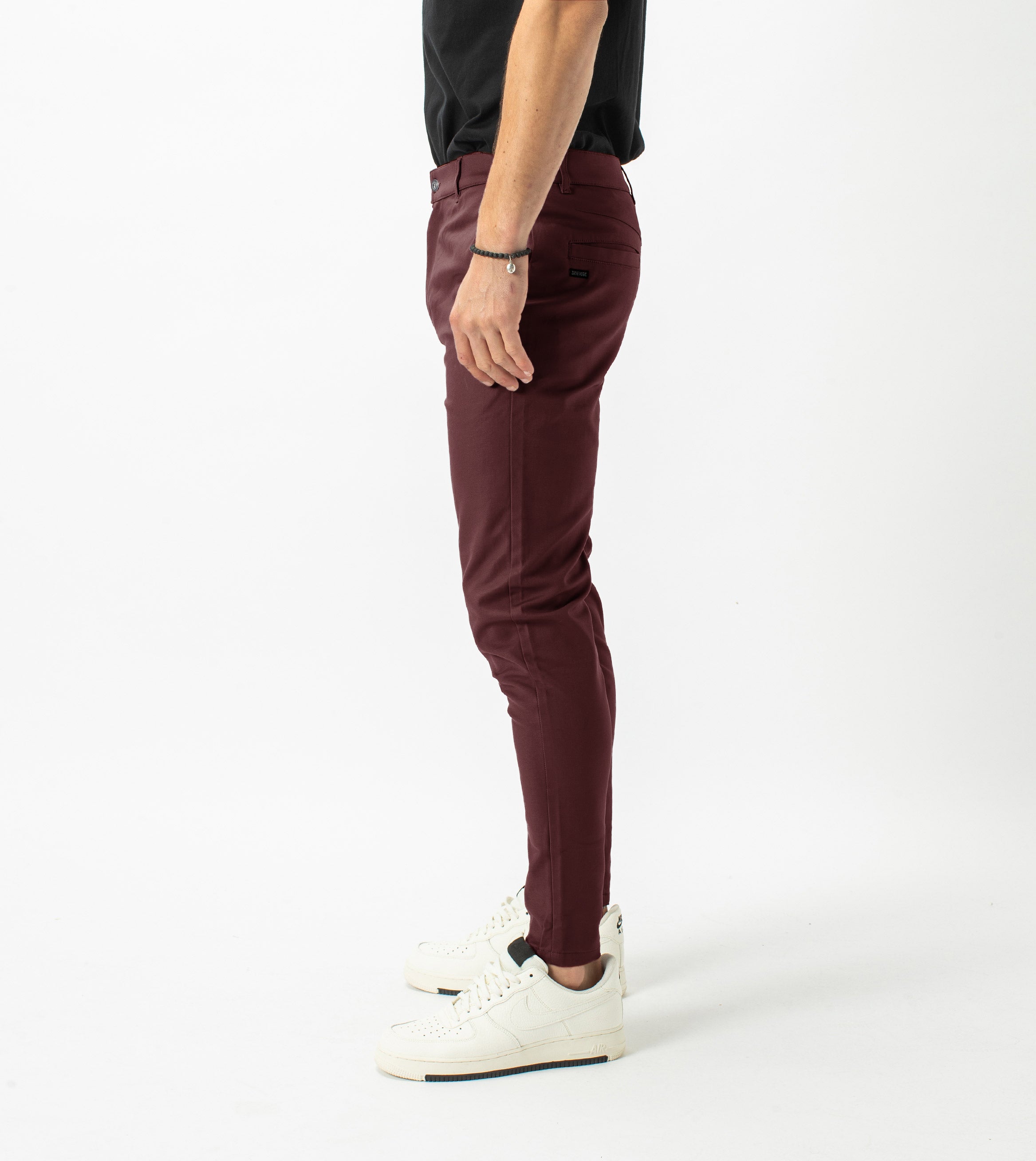 The ZANEROBE Sharpshot Chino in Port - Natural successor to our classic Sureshot Jogger, we wear with a tucked basic Tee.