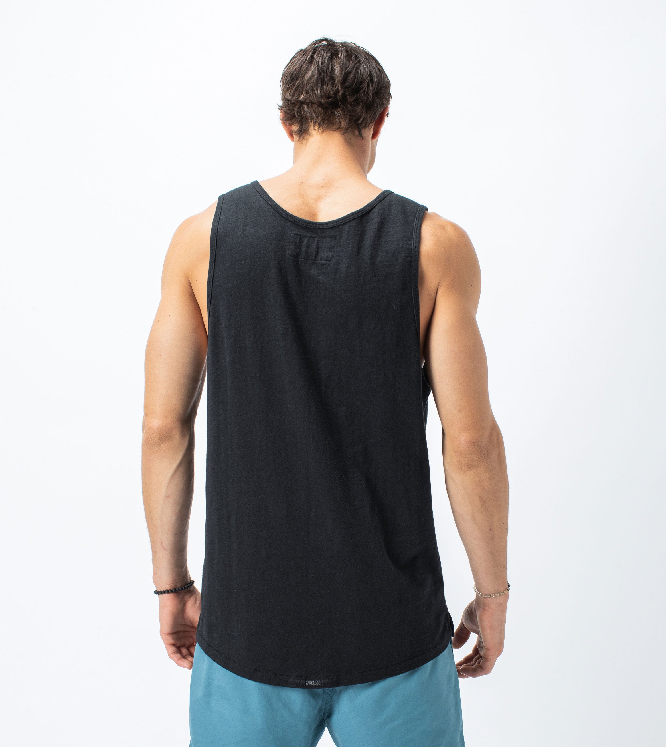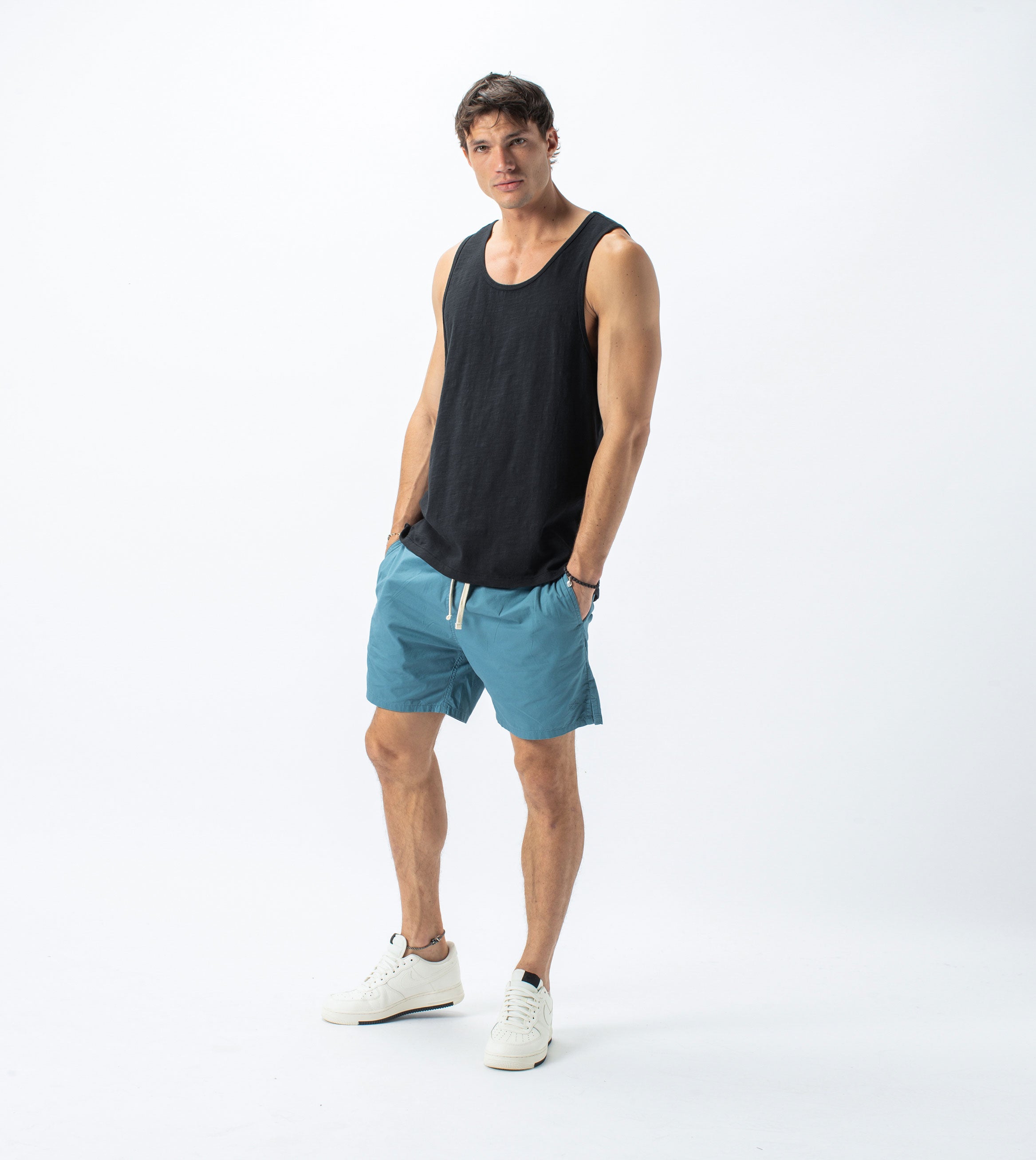 The ZANEROBE Slub Rugger Tank in Black - Signature relaxed Tee, we wear with our classic Zephyr Shorts.