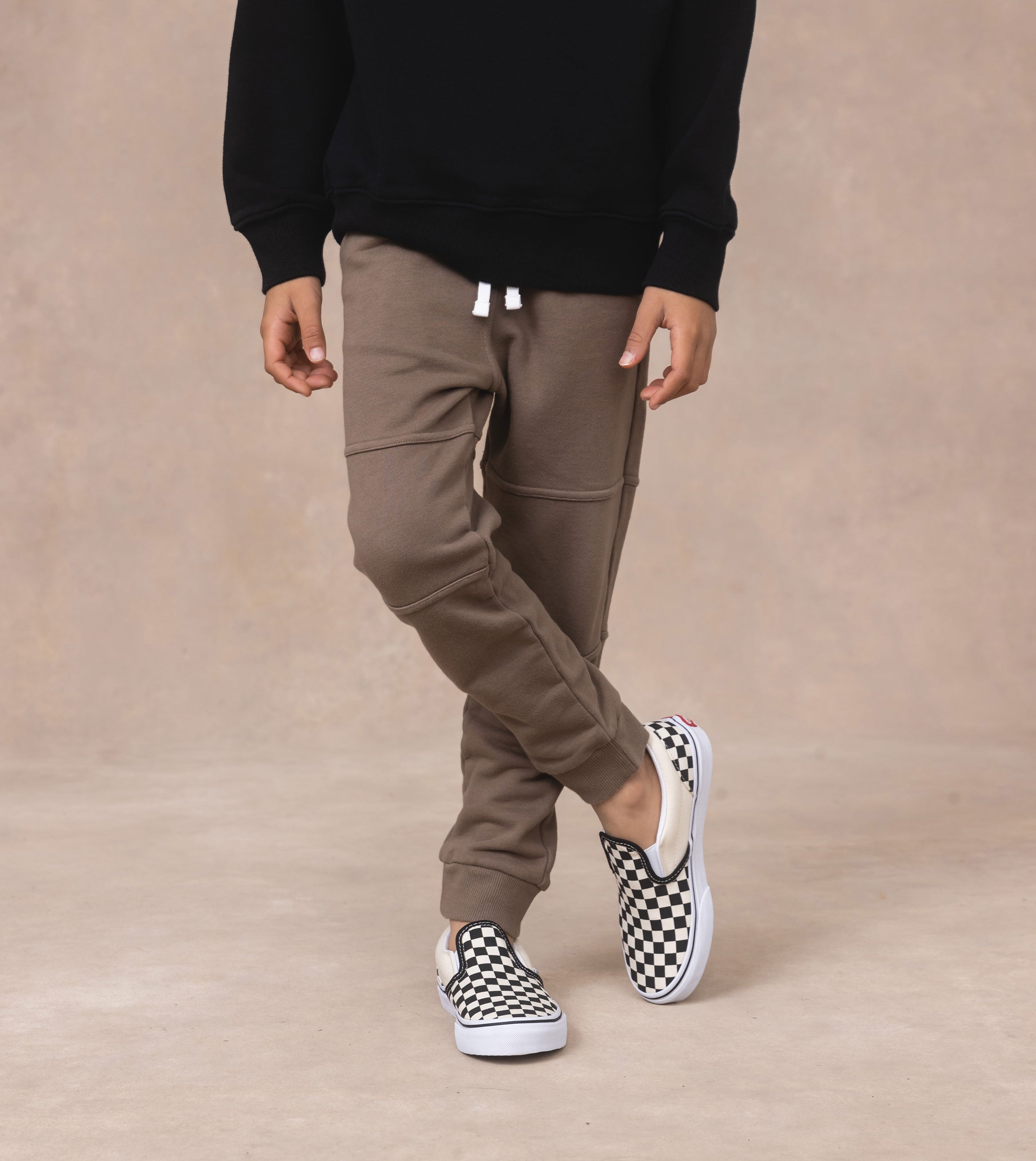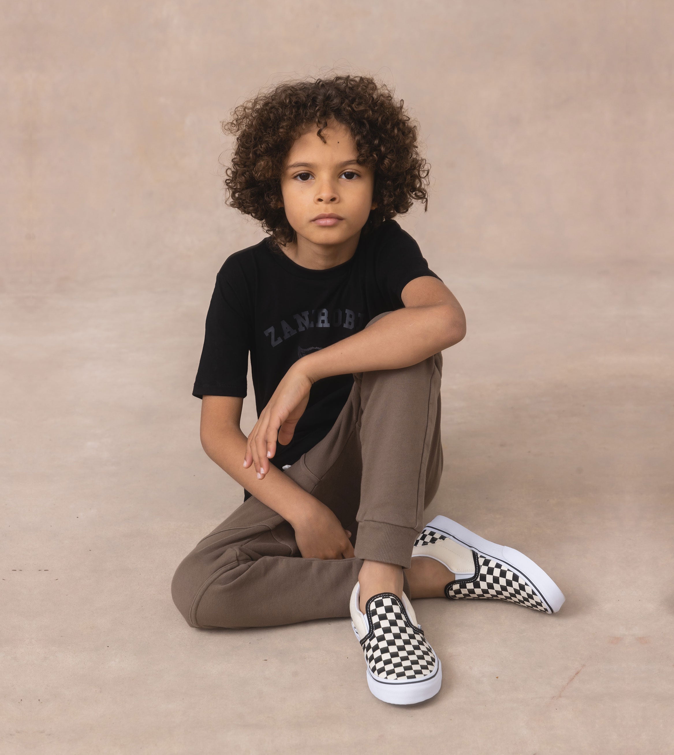 'LIL ZANE premium quality, organic french terry jogger pant. Sustainable, super-comfortable, ultra-durable construction - wear, play, wash, repeat with absolute confidence. Looks great paired with our Wolf Box Tee Dk Black and Orgo Wolf Crew Sweat Black, both featured.
