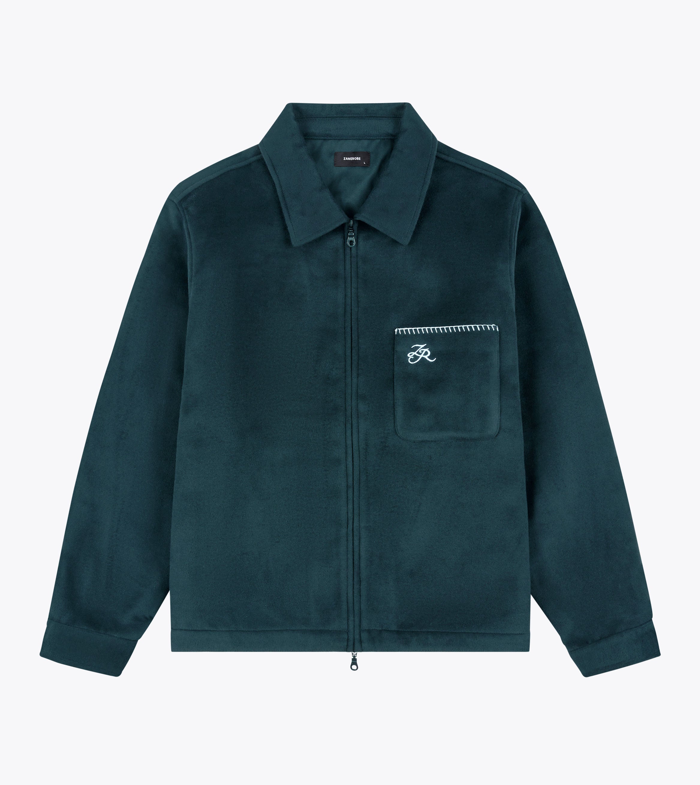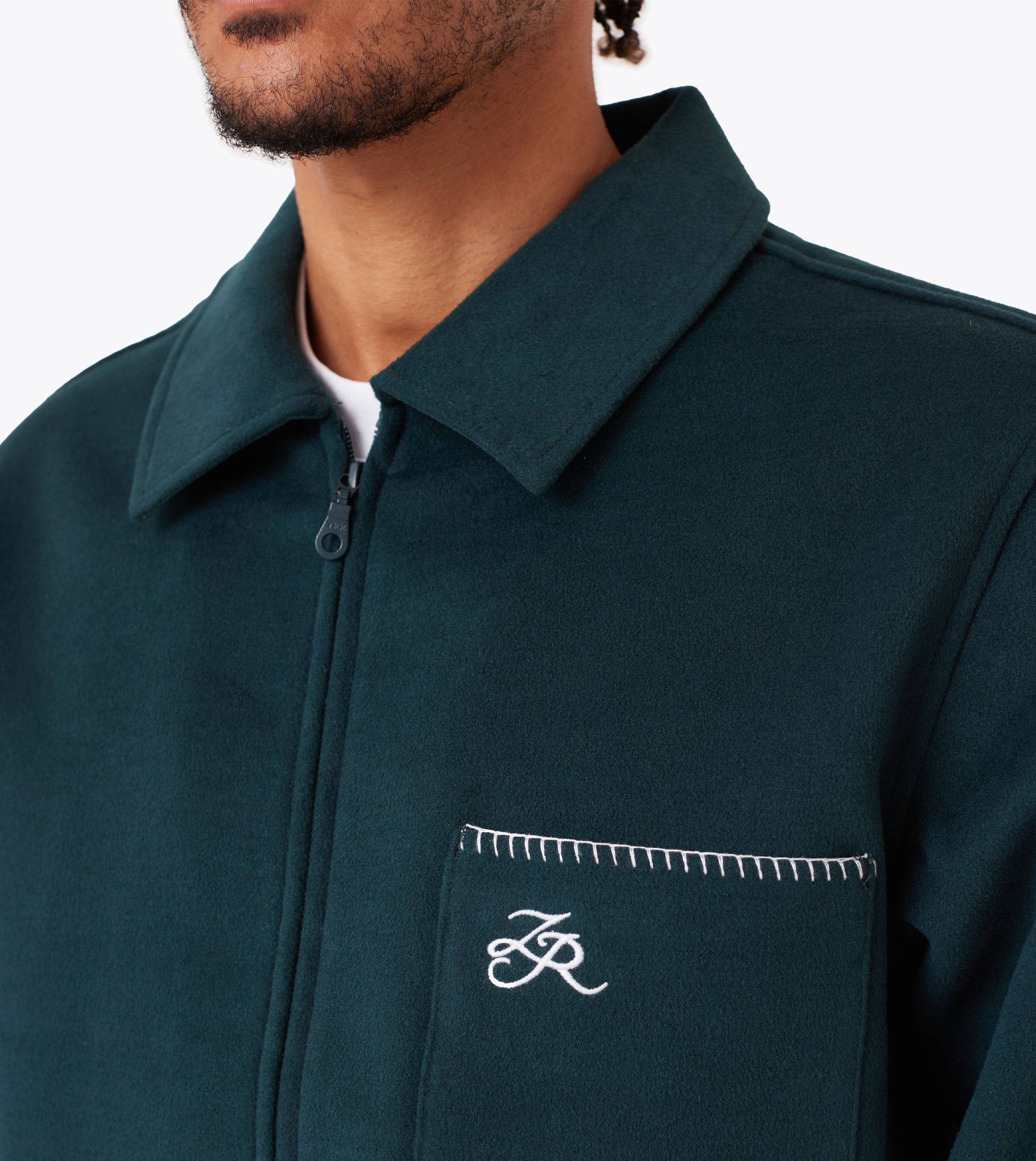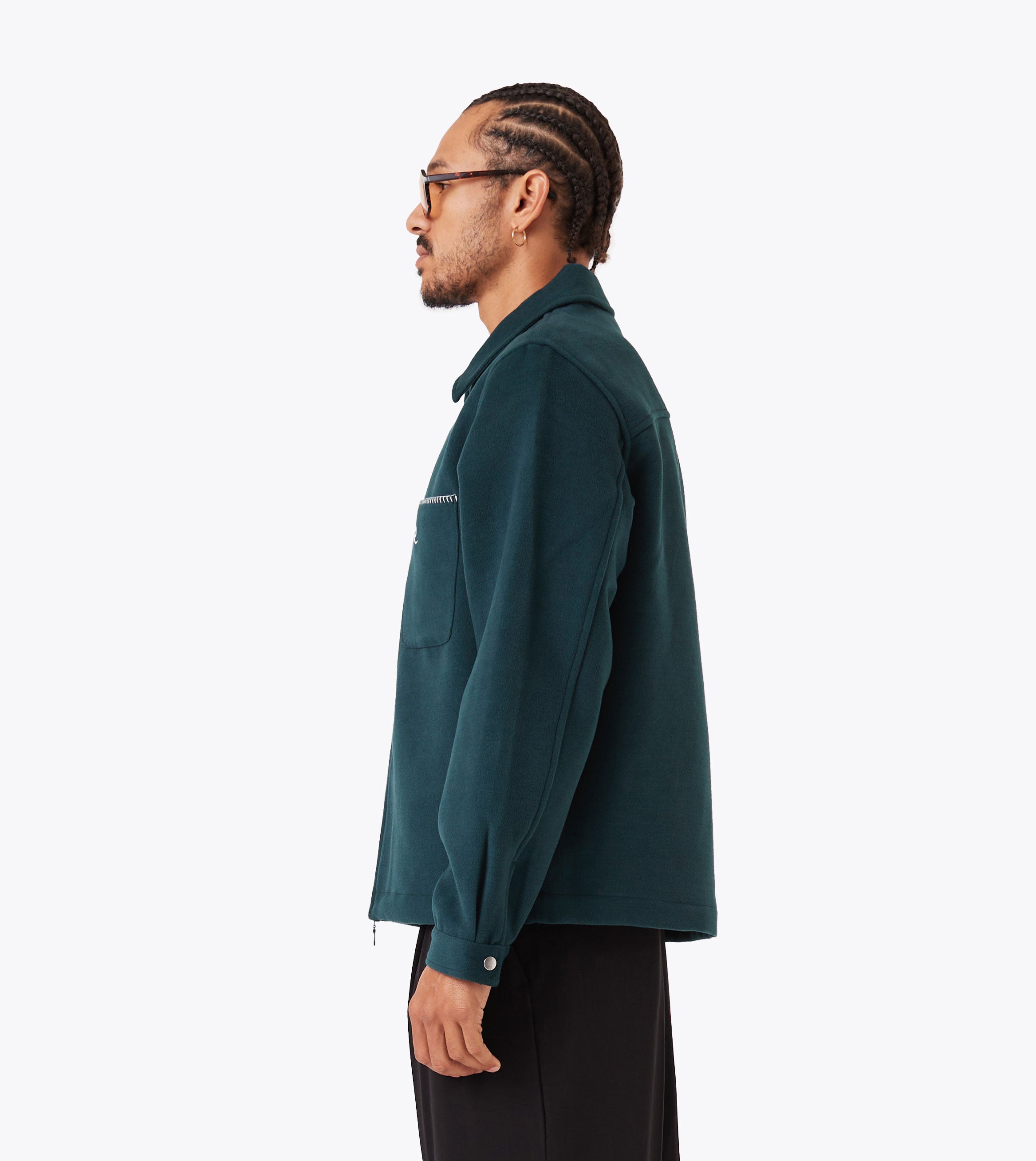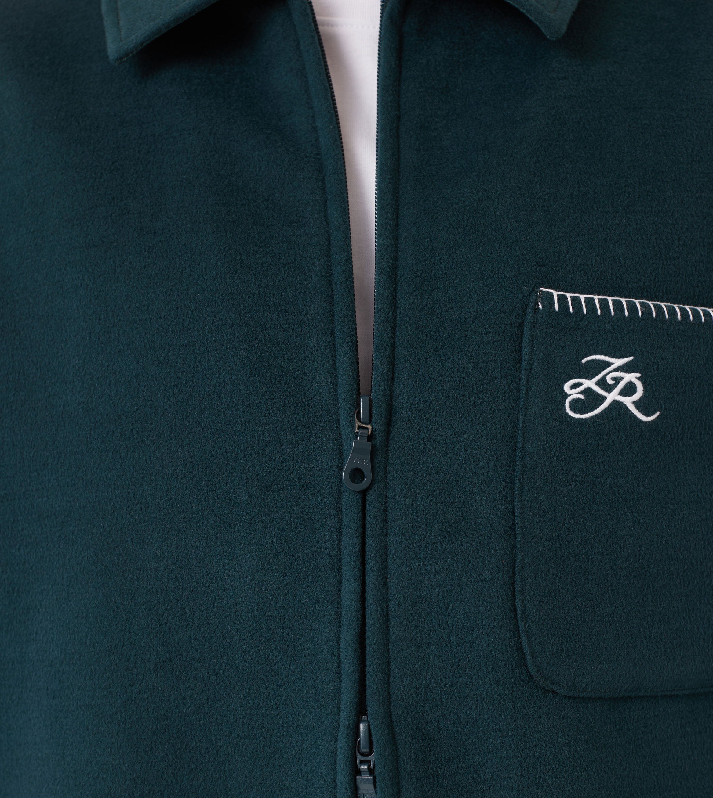 The ZANEROBE Stitched Overshirt in Forest is a sleek and modern take on classic layering. Crafted from a durable 80% polyester and 20% rayon melton fabric, it features a concealed double-ended zipper at the front for a clean look. The patch pocket with blanket stitch and ZR emblem embroidery adds a touch of detail, while the signature curved back yoke and cropped length enhance its contemporary edge. Finished with a standard collar, this over shirt offers both style and function.