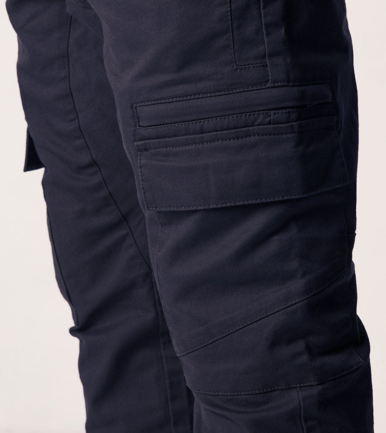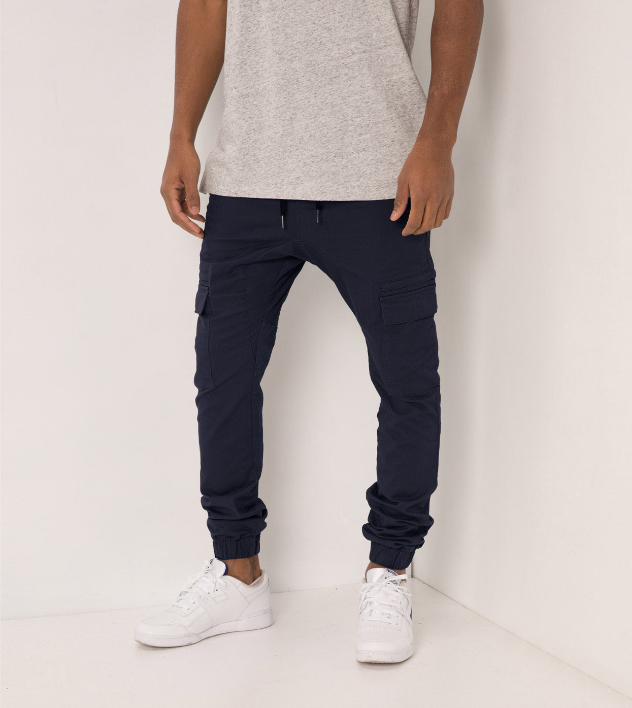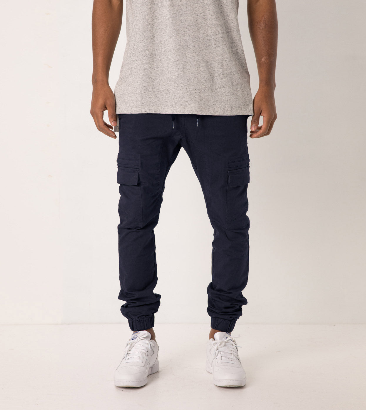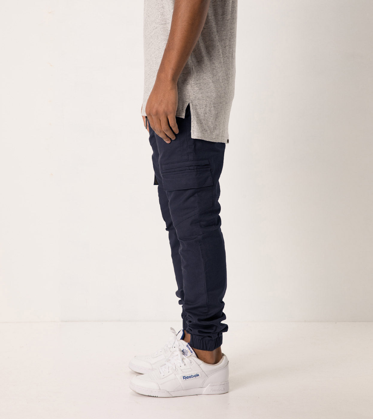 The ZANEROBE Sureshot Cargo in Navy - Signature Jogger pants that started a menswear revolution with new cargo features. Relaxed rise, elasticised cuff and waistband, drawstring closure, ZANEROBE signature reinforced crotch panel detail for extra mobility, branded trims and back epaulet tag. Wear with a classic ZANEROBE Flintlock Tee.