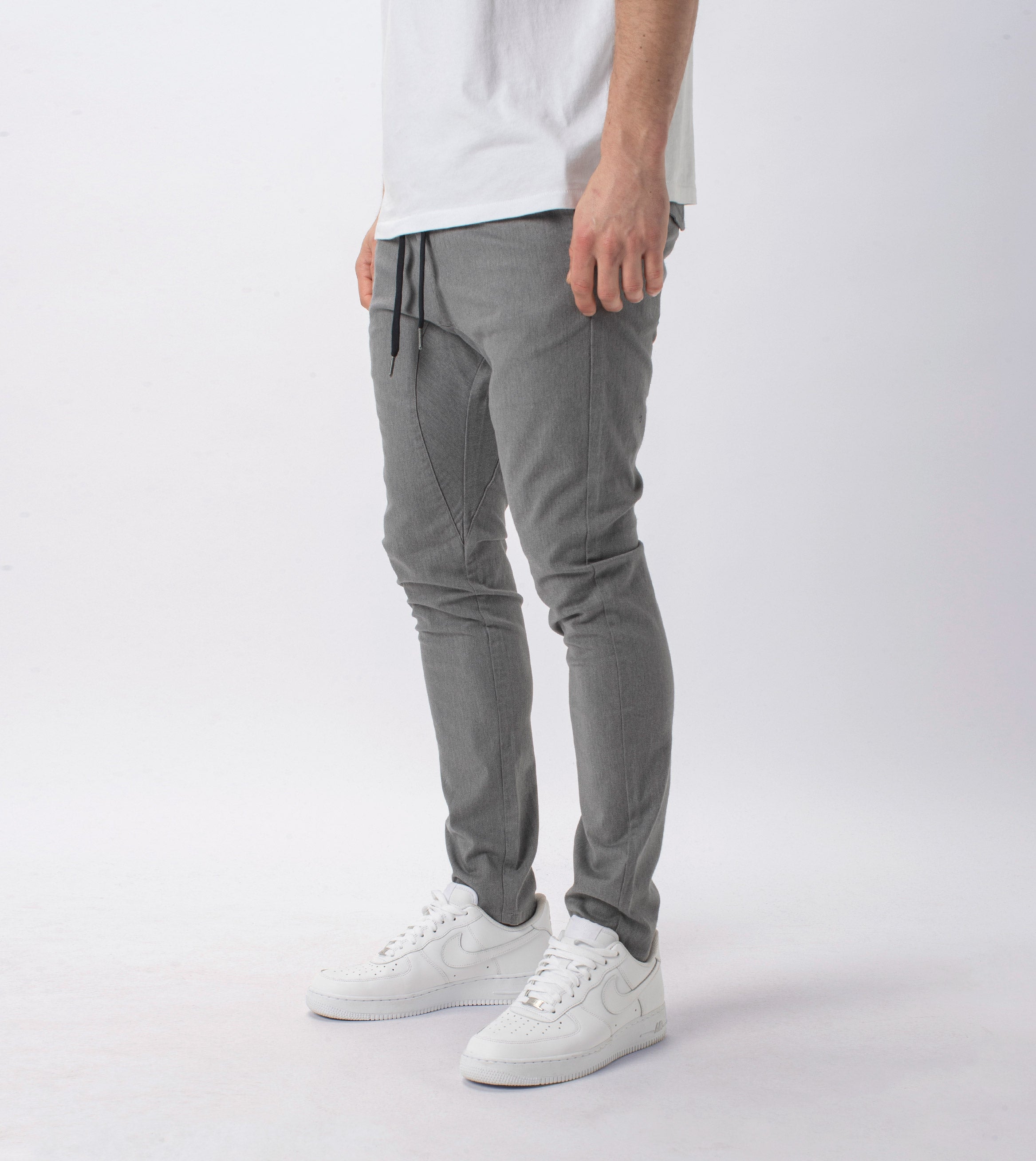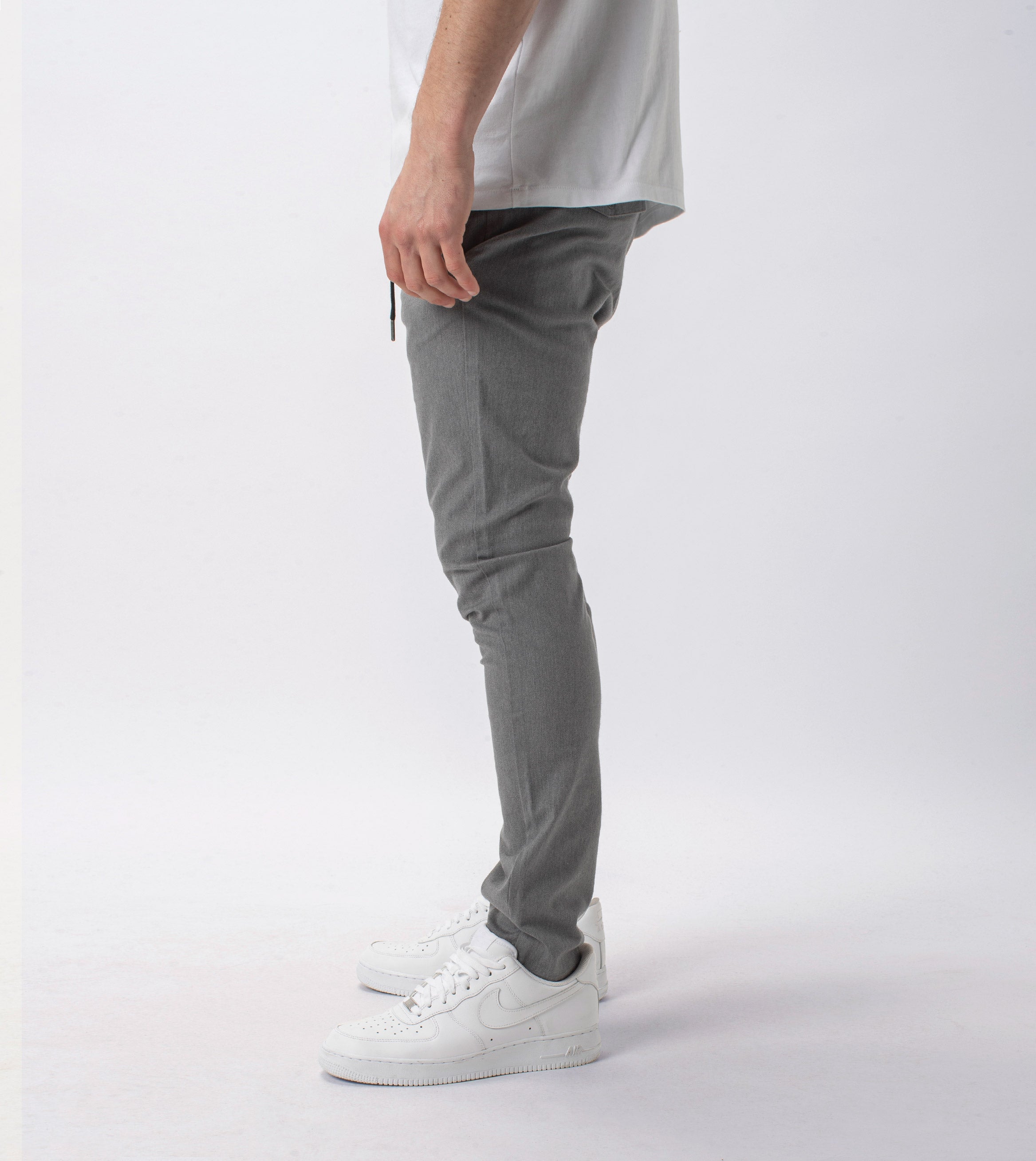 The ZANEROBE Salerno Chino in Grey Marle - Limited edition 10th anniversary Chino reengineered in premium charcoal marle fabrication. For fans of the Sureshot Jogger without the elastic cuffs. We wear ours with our classic Flintlock Tee.