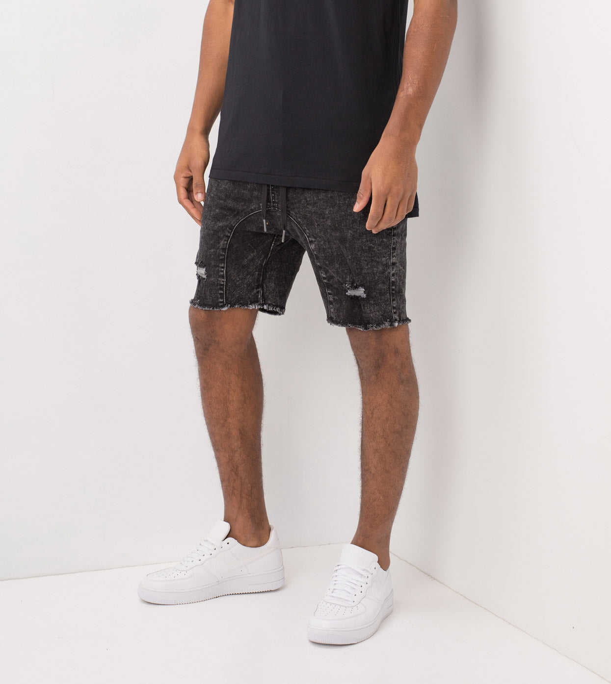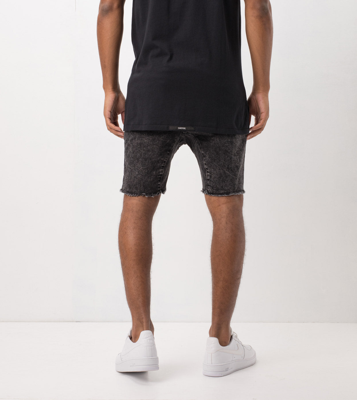 The ZANEROBE Sureshot Short Black Acid Rip - relaxed fit, stretch cotton twill, inner leg panels, elastic waistband, raw cut offs and distressed detailing. Super comfortable, versatile and easy to wear. Wear with our signature Flintlock Tee.