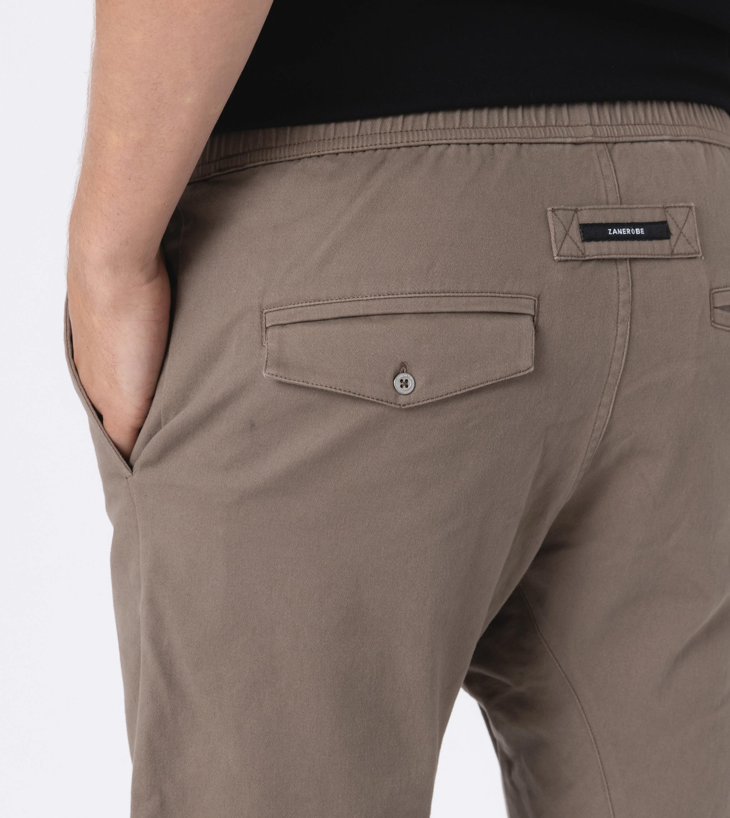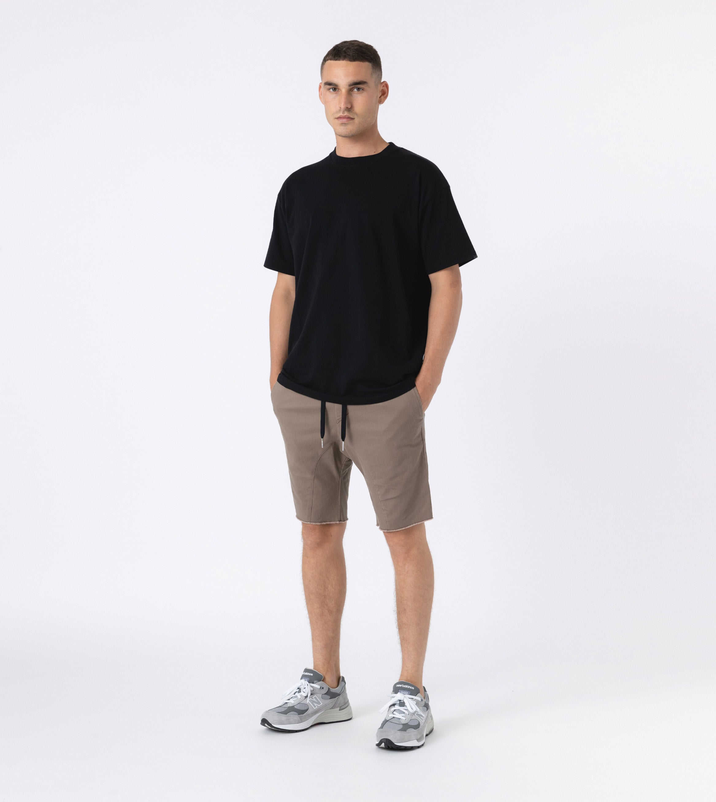 The ZANEROBE Sureshot Short in Timber - a relaxed stretch cotton twill chino short, comfortable and super easy to wear. We wear with our classic Box Tee.
