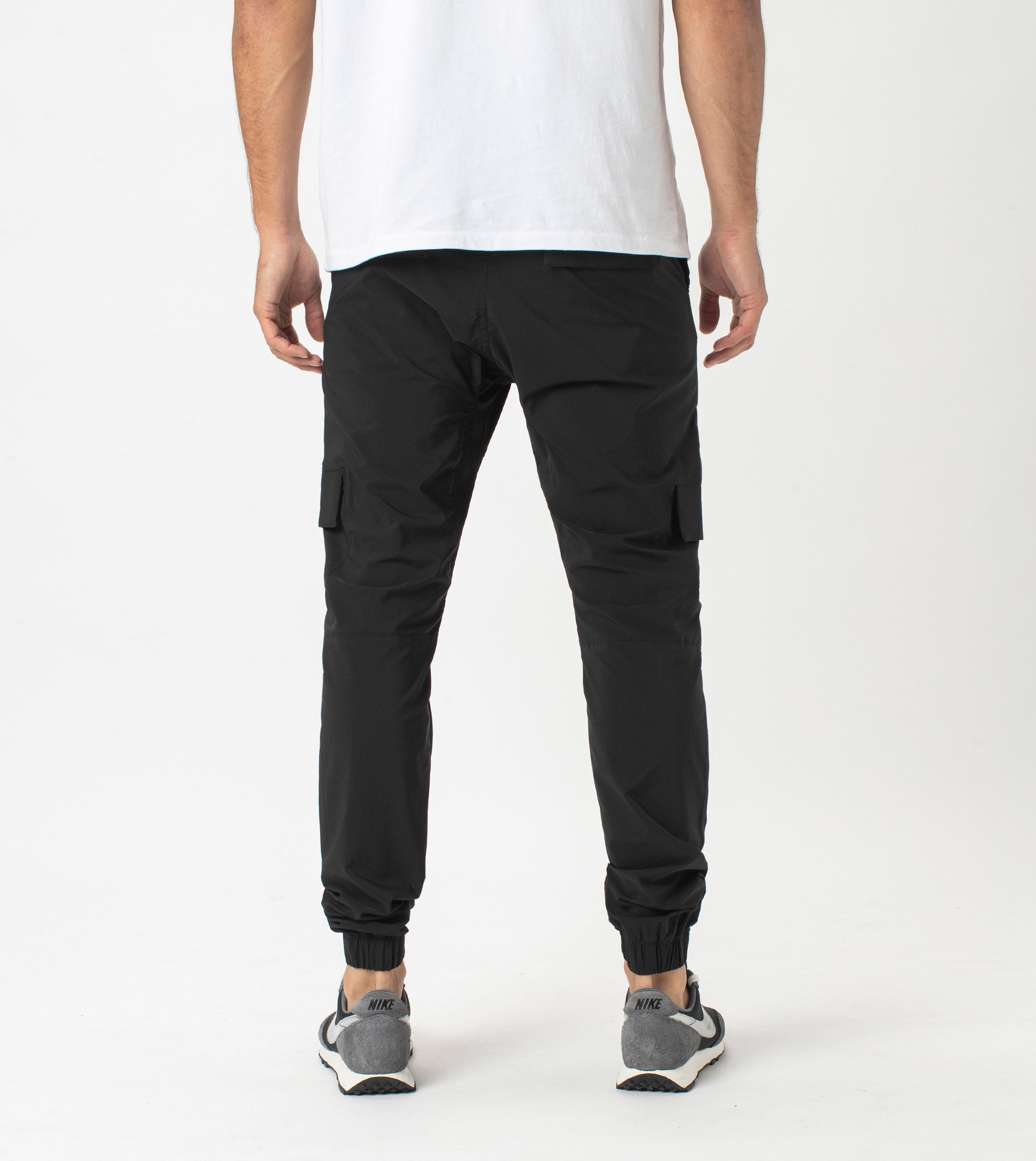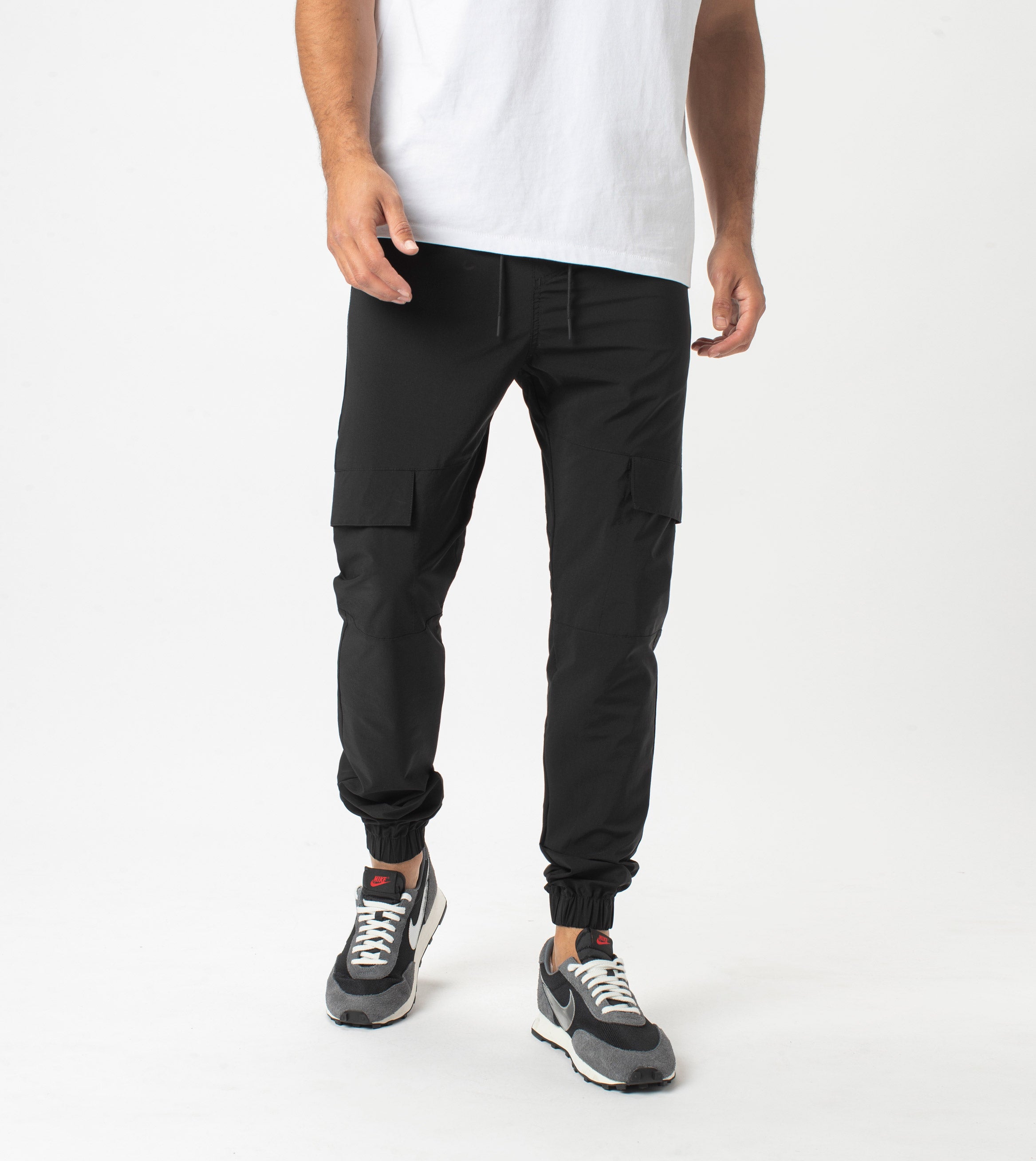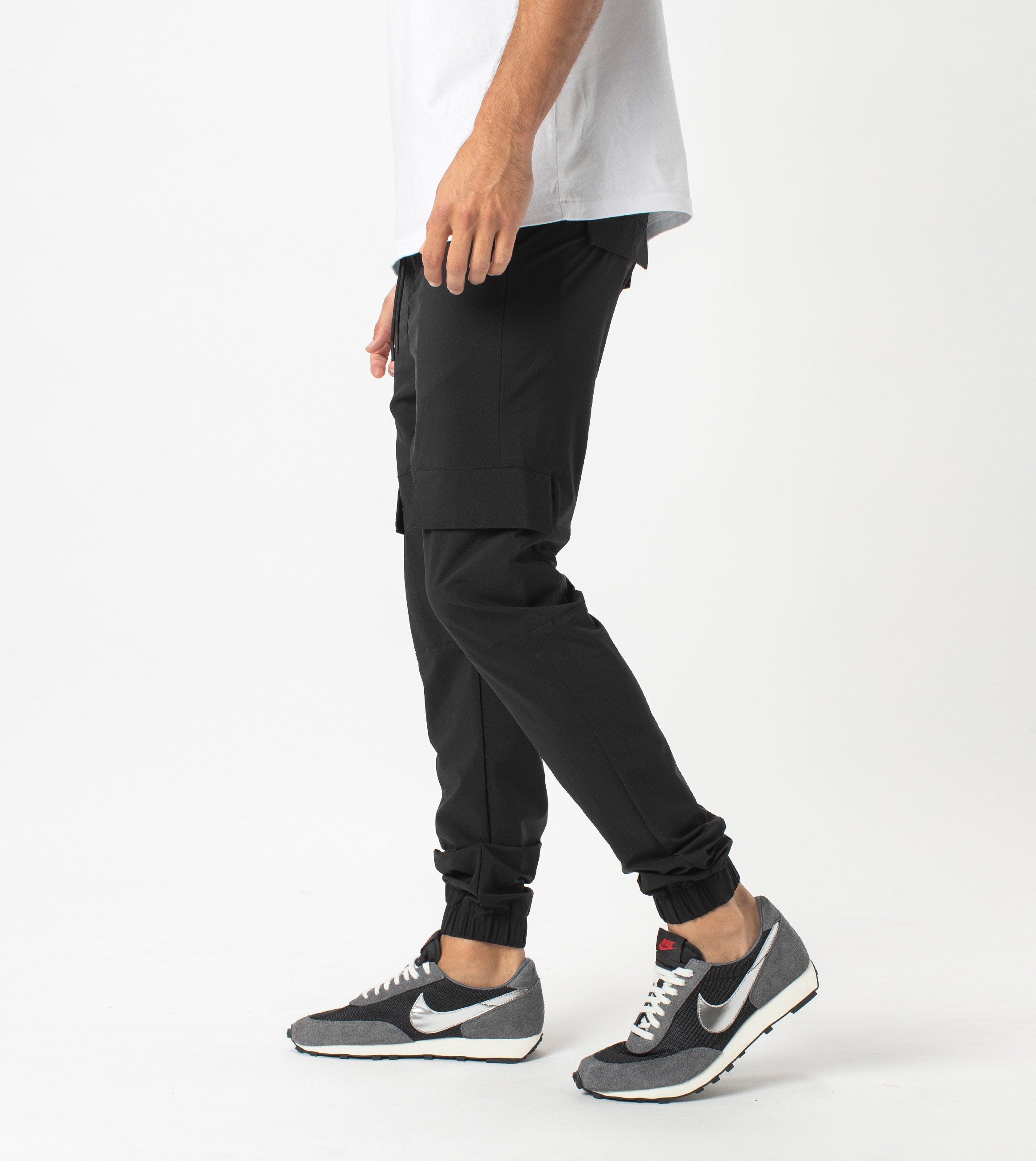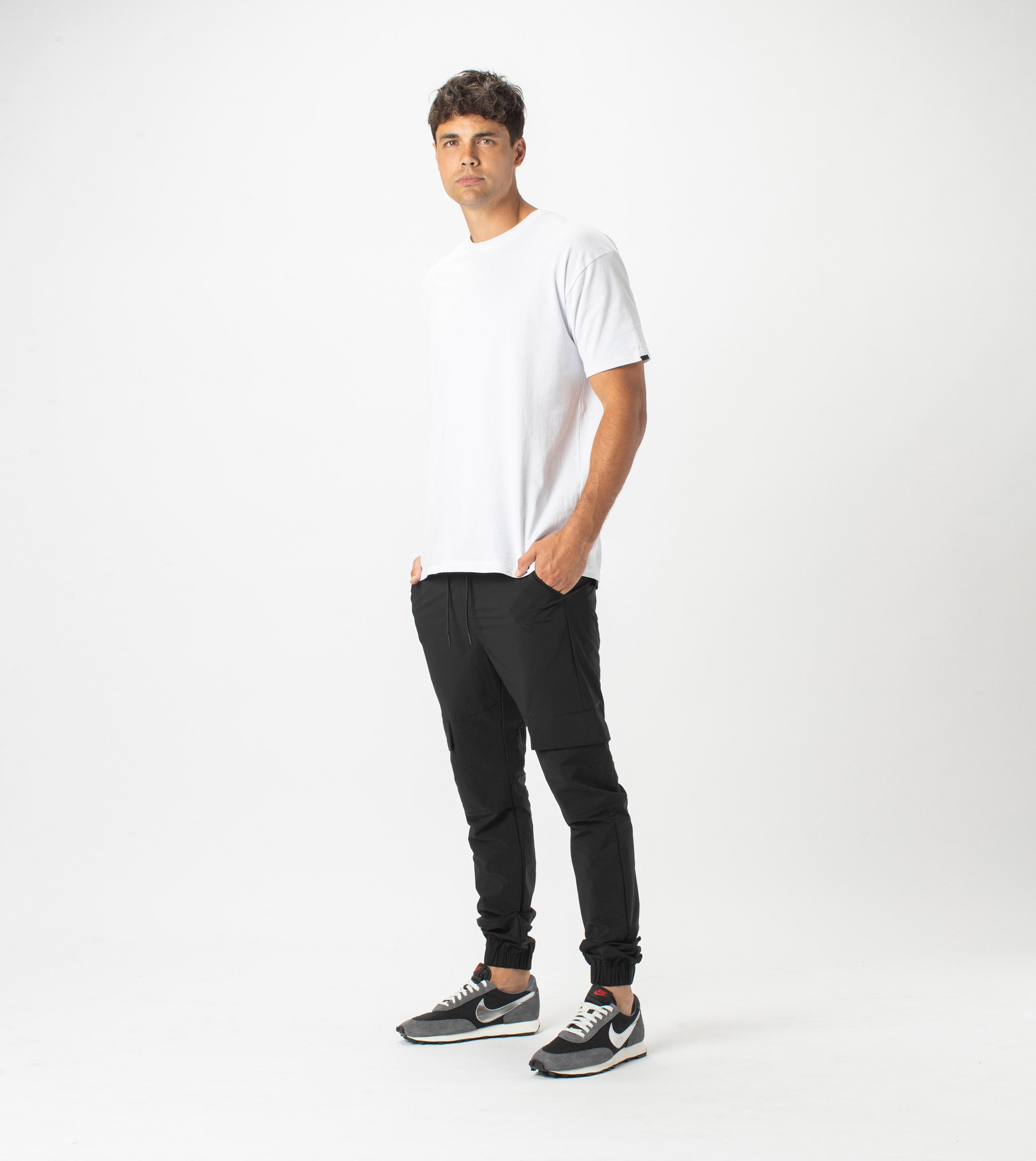 The ZANEROBE Sureshot Cargo Tech Jogger in Black - Reengineered in tech fabrication. Wear with our classic Box Tee.