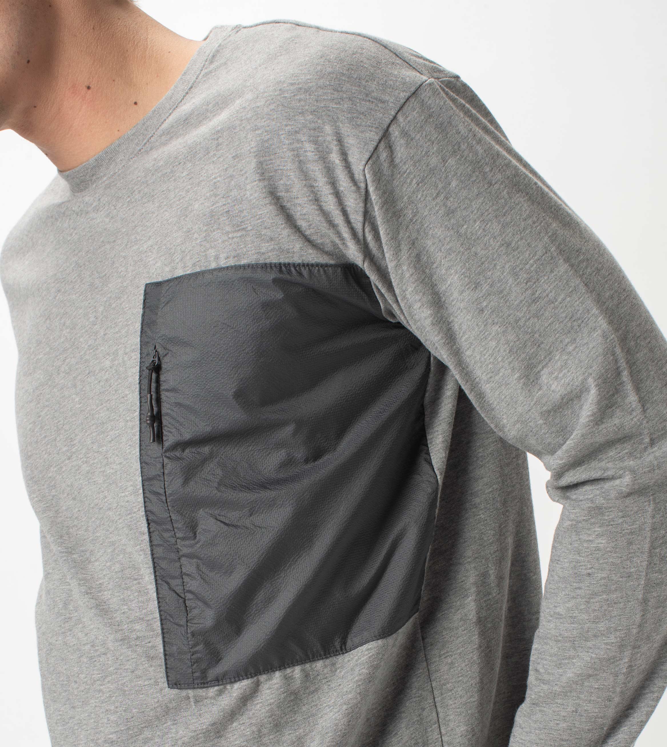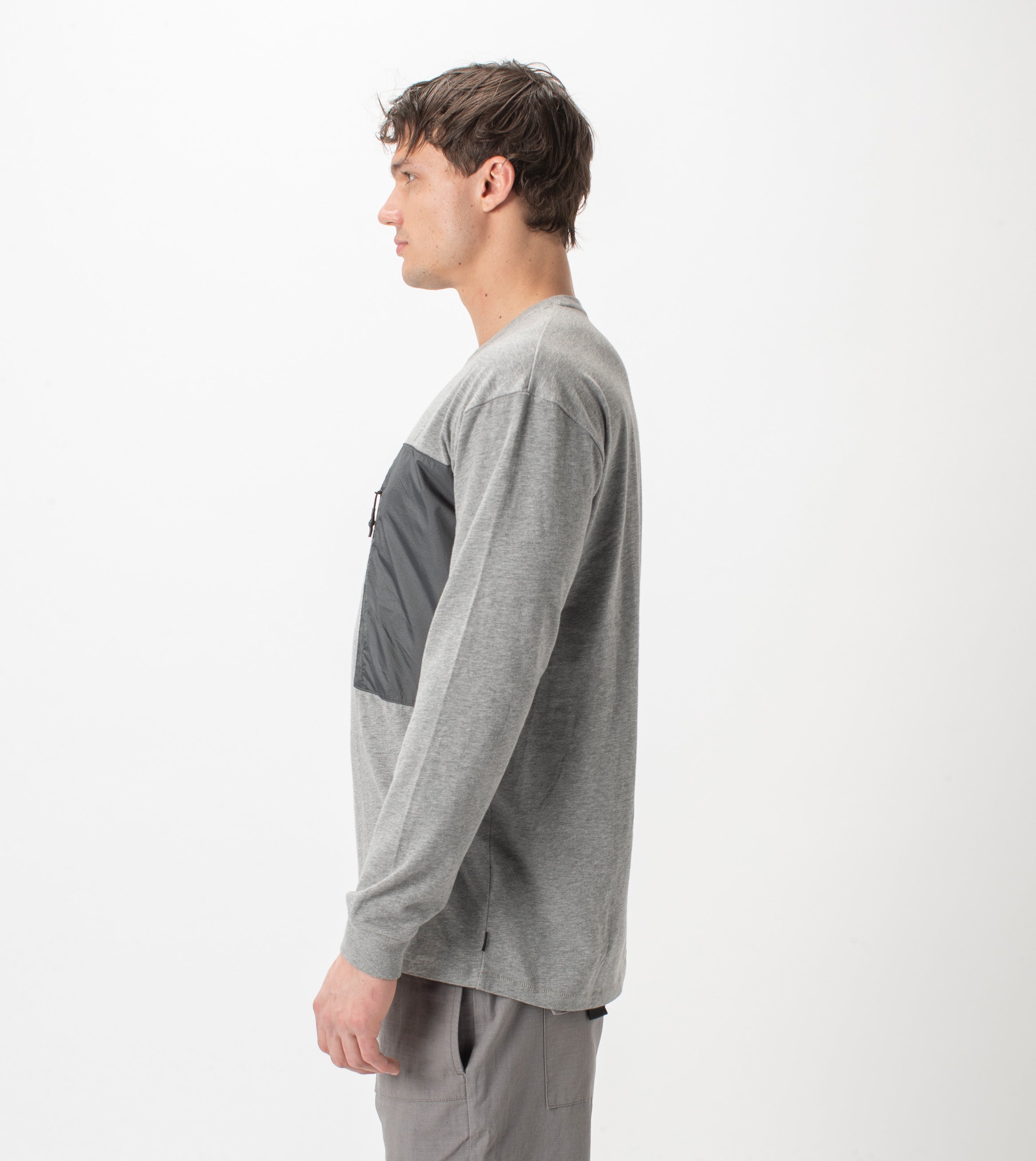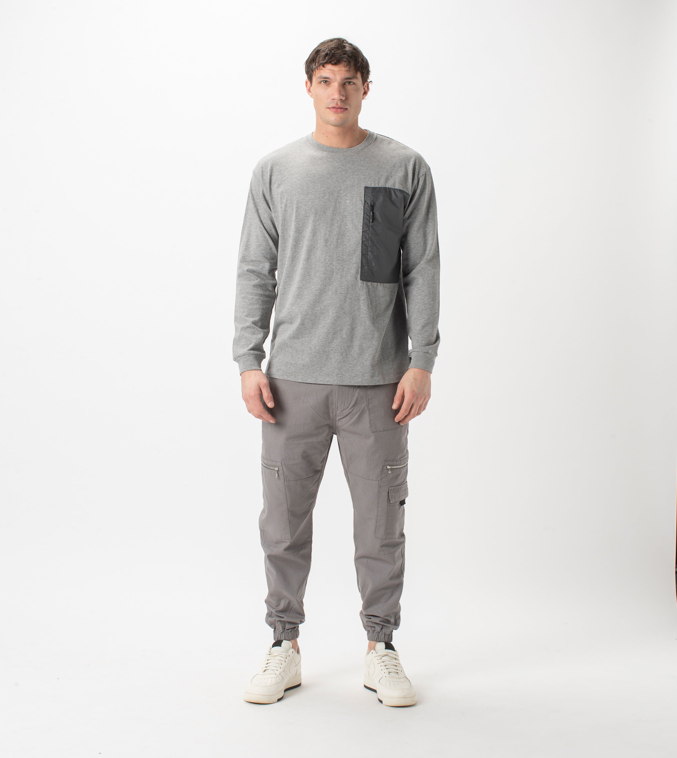 The ZANEROBE Tech Box LS Tee in Dk Grey Marle - Signature relaxed Tee, we wear with the Jumpa Combat Jogger.