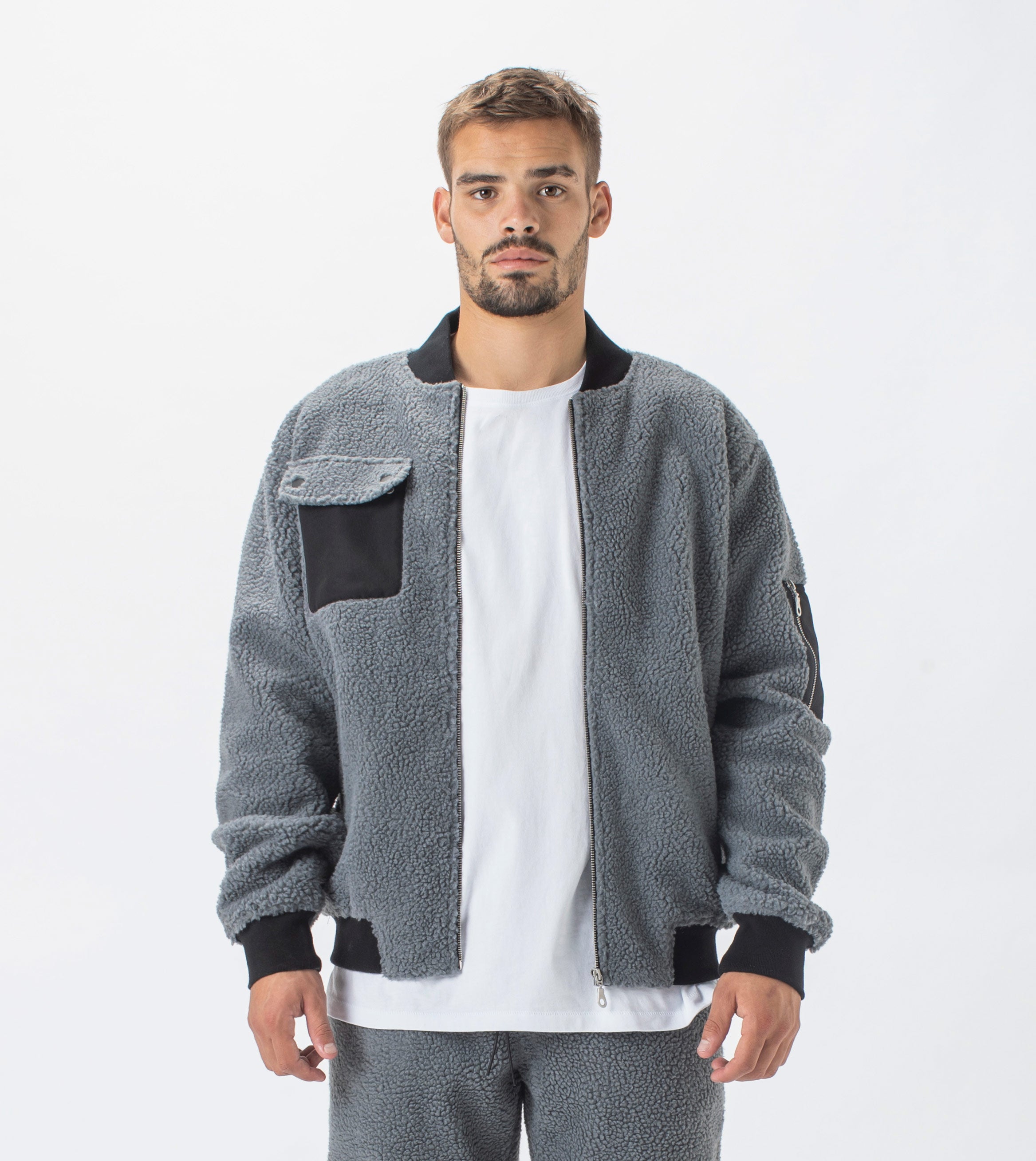 The ZANEROBE Teddy Bomber Jacket in Soot - The latest offering to our jacket range. Complete the fit with the matching Teddy Jumpa Cargo Jogger and a Box Tee.