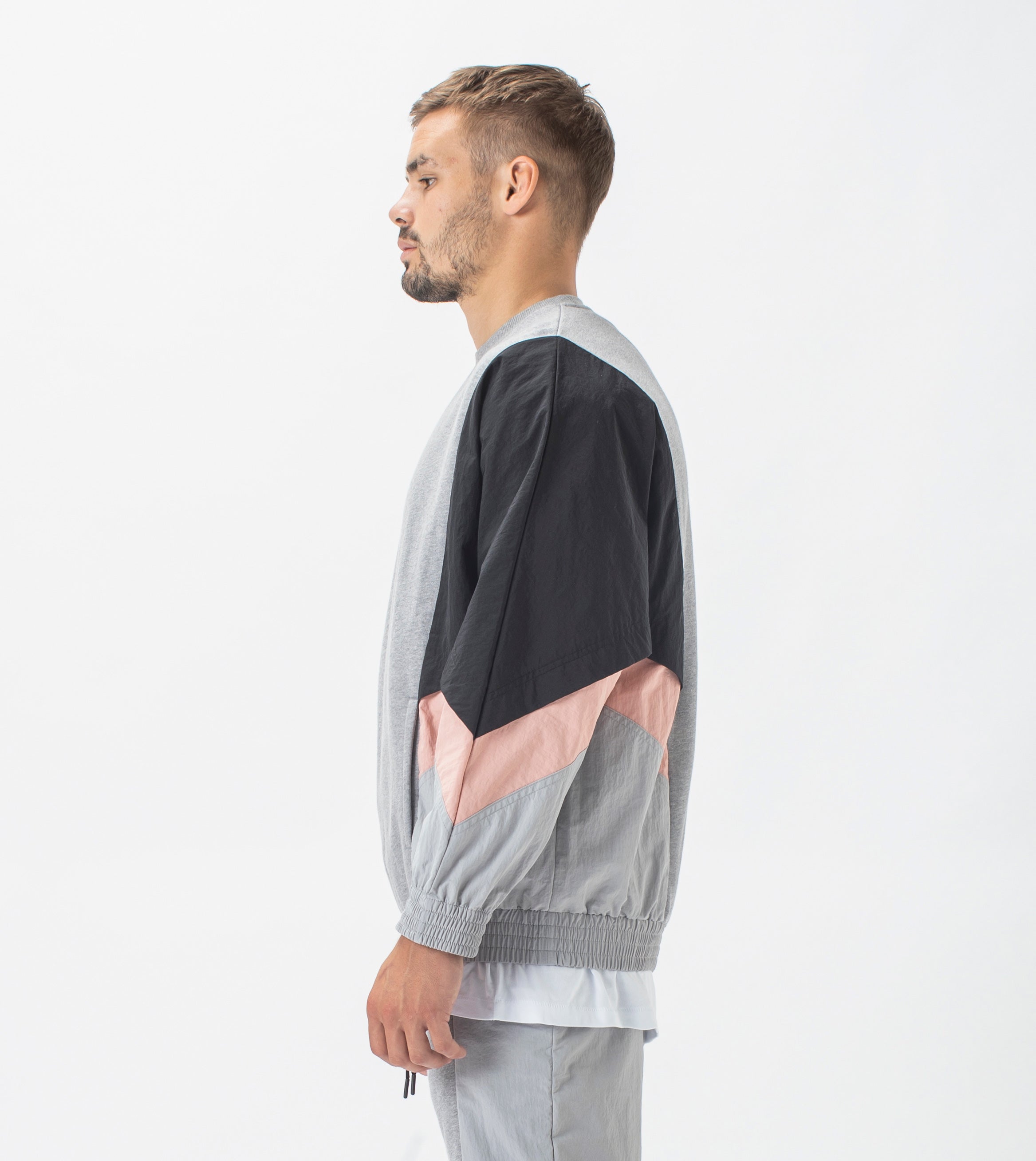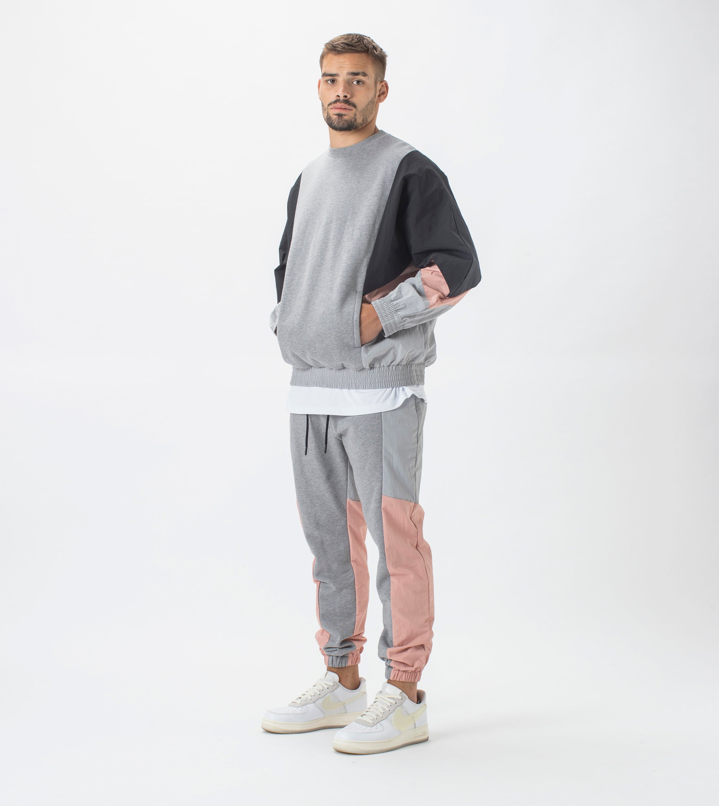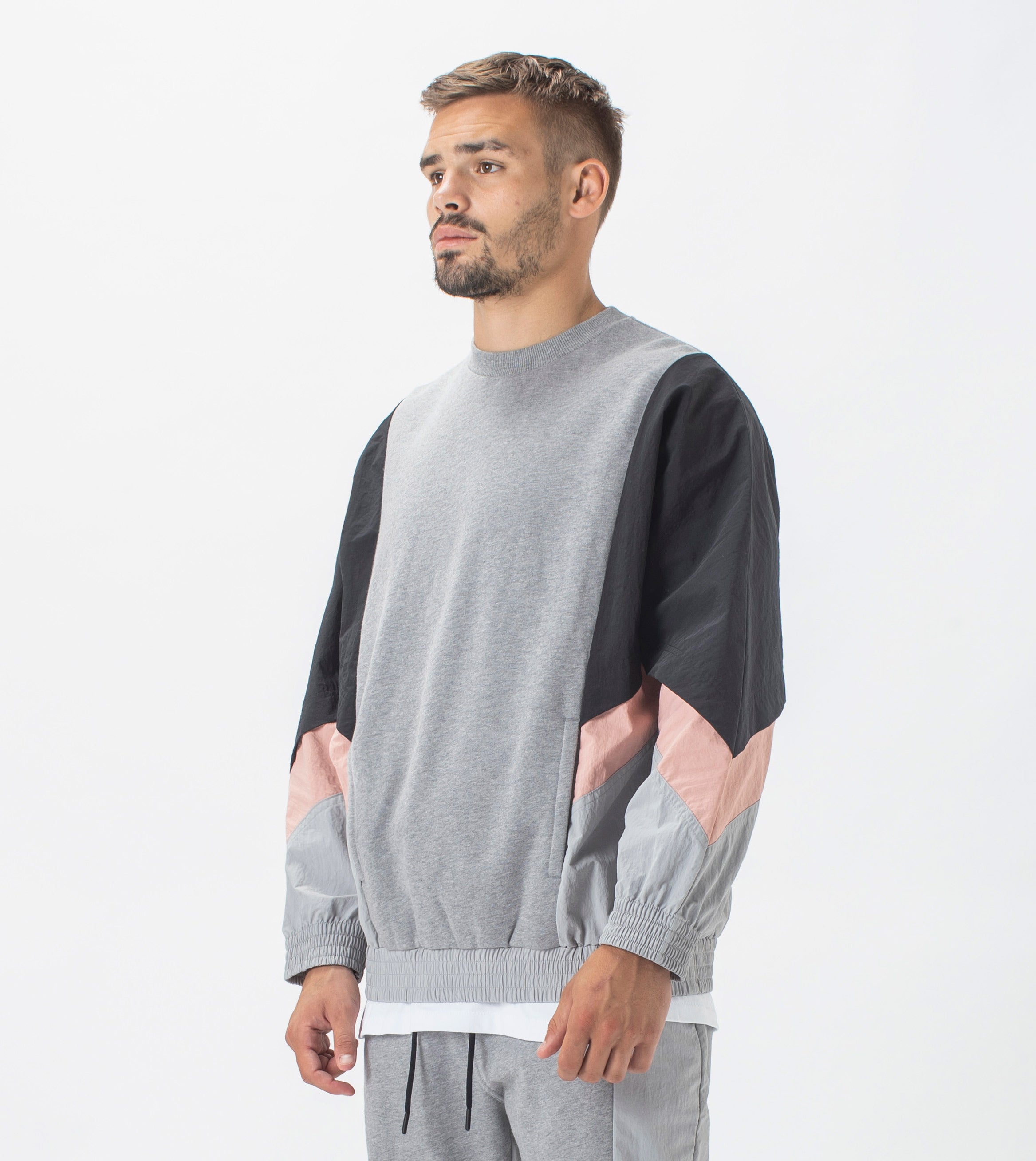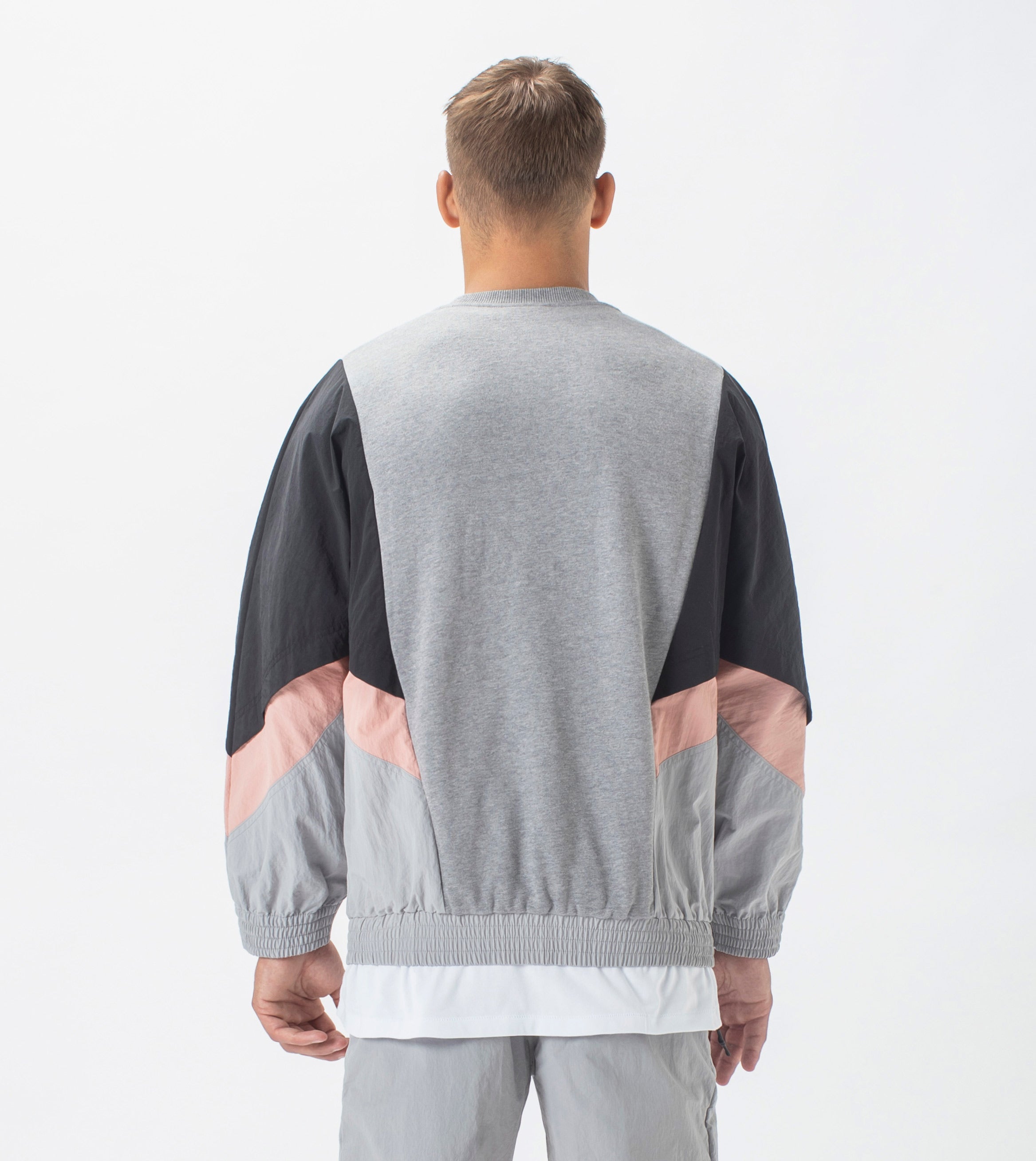 The ZANEROBE Track Lowgo Crew Sweat Dk Grey Marle - Historical tribute with contemporary relevance, featuring a fleece body panelled with nylon. We wear with the matching Panel Jumpa Jogger.