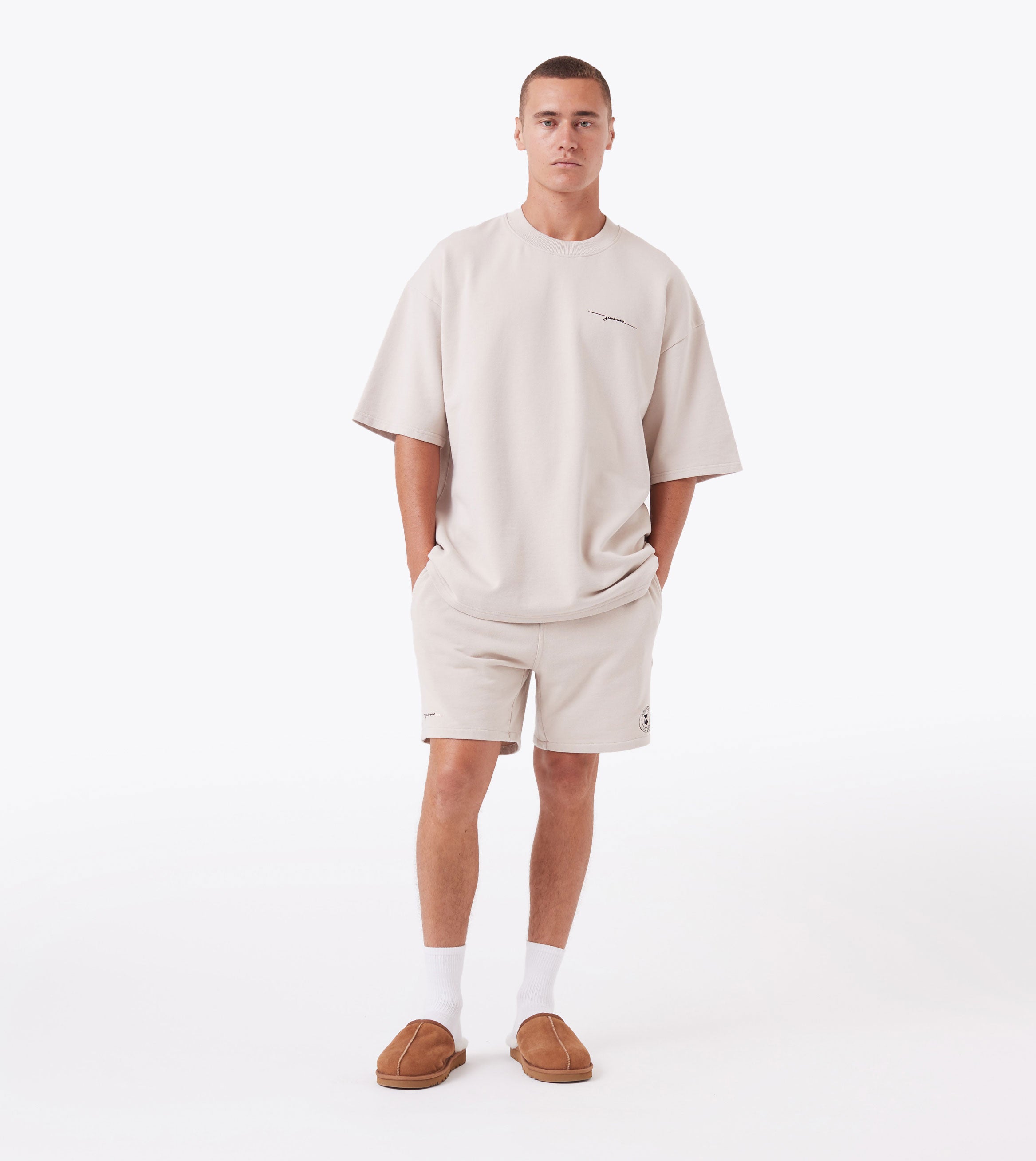 The ZANEROBE Training Sweat Short in Oat are cut for a comfortable, relaxed look. We recommend wearing them with the matching oversized Rugger Fleece Tee and your favourite sneakers for an effortlessly clean look.
