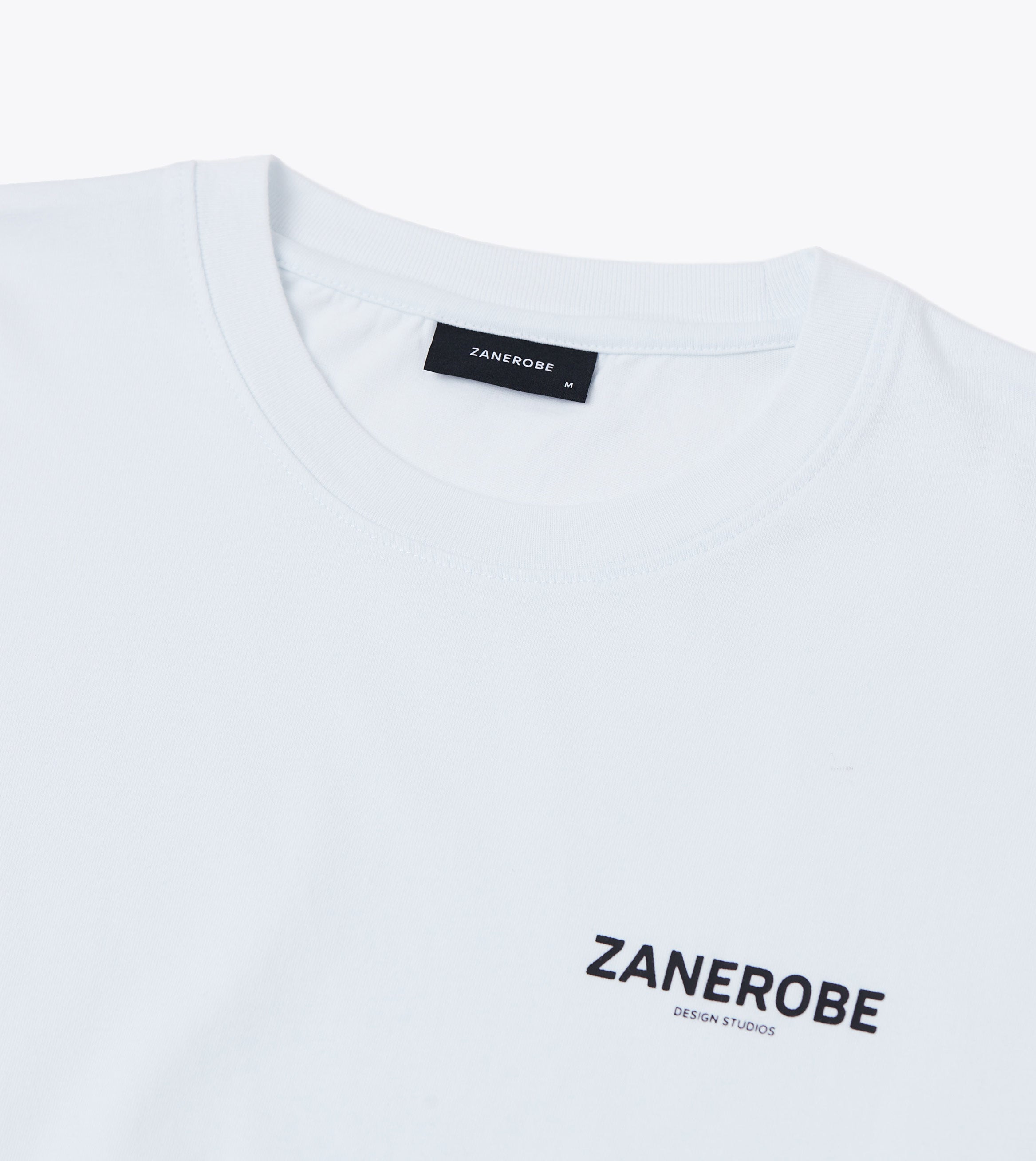 The ZANEROBE ZDS Box Tee in White is our signature relaxed fitting tee silhouette. We wear ours with a pair of boxy fitting chinos or a pair of mesh basketball shorts.
